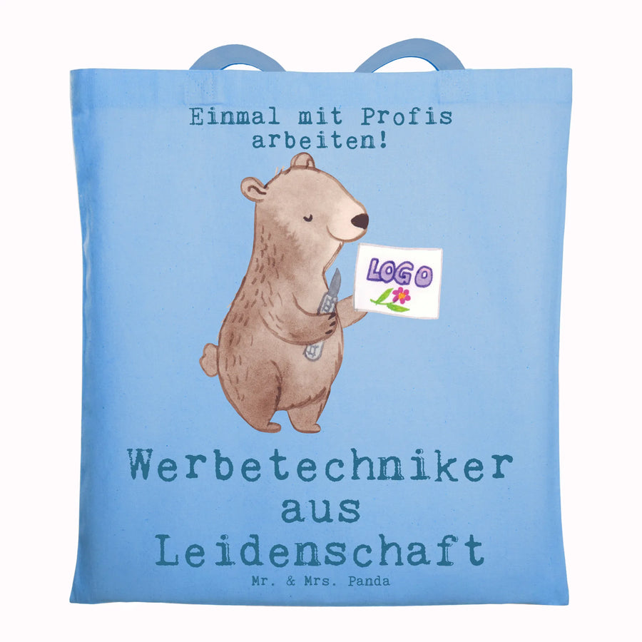 Ein liebevolles Geschenk für kreative Köpfe: Die Tragetasche „Werbetechniker aus Leidenschaft" von Mr. & Mrs. Panda ist das perfekte Präsent für alle, die mit Herz und Hand gestalten. Das handgezeichnete Aquarell-Motiv eines süßen Bären mit Schere und kreativen Ideen wird ergänzt durch den klaren Slogan „Werbetechniker aus Leidenschaft".