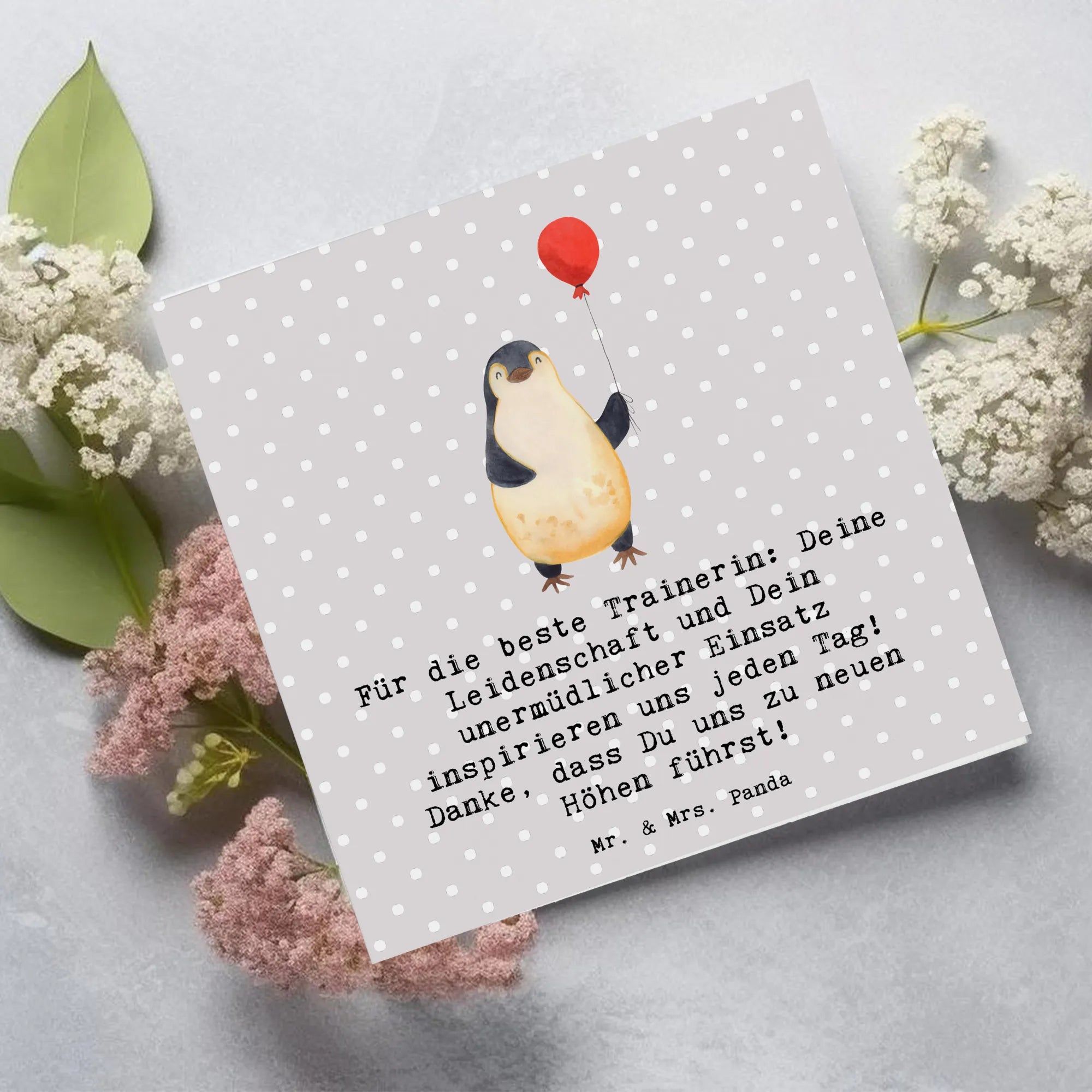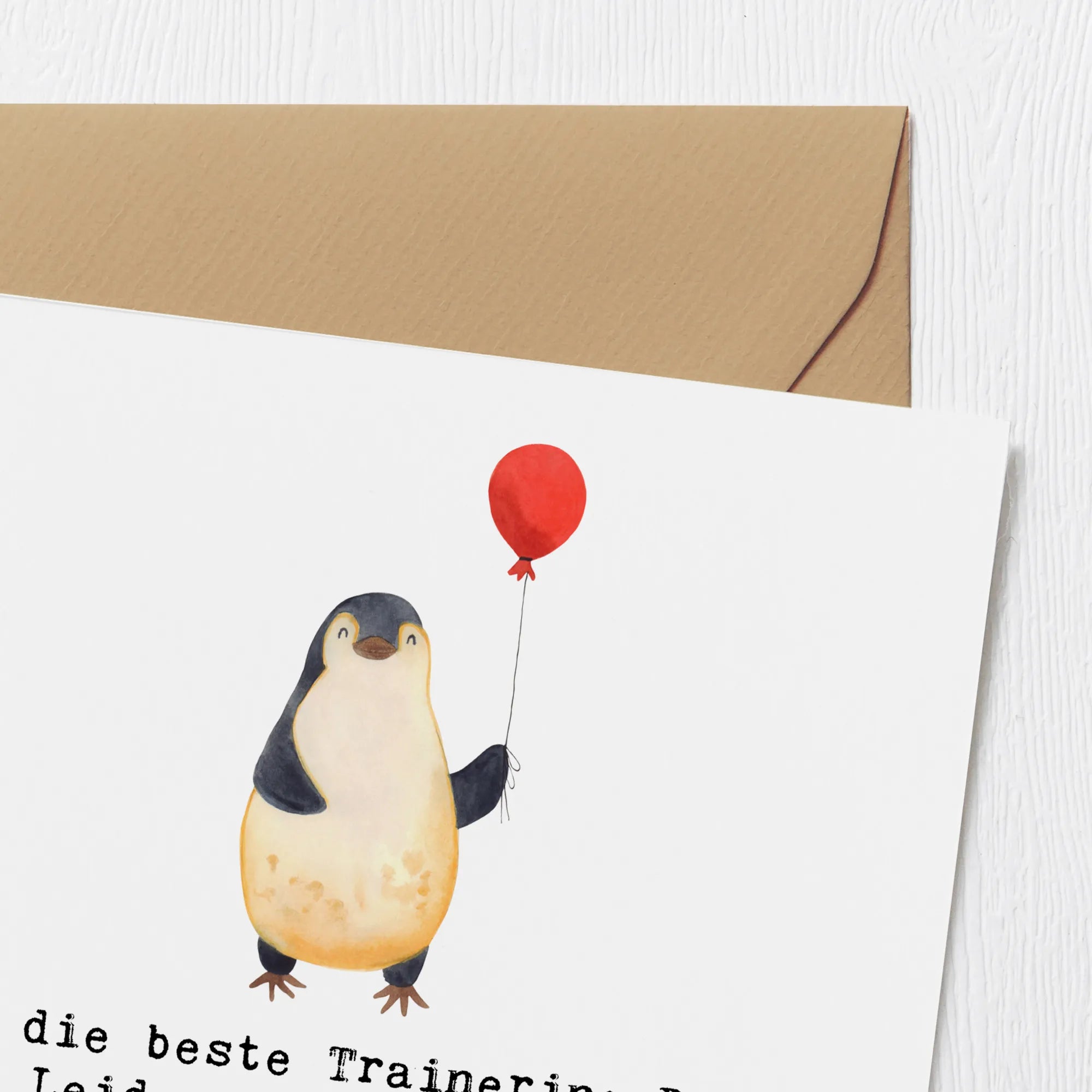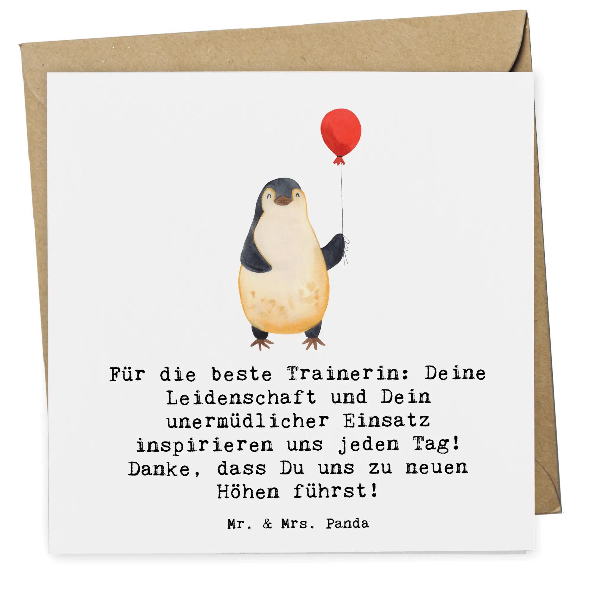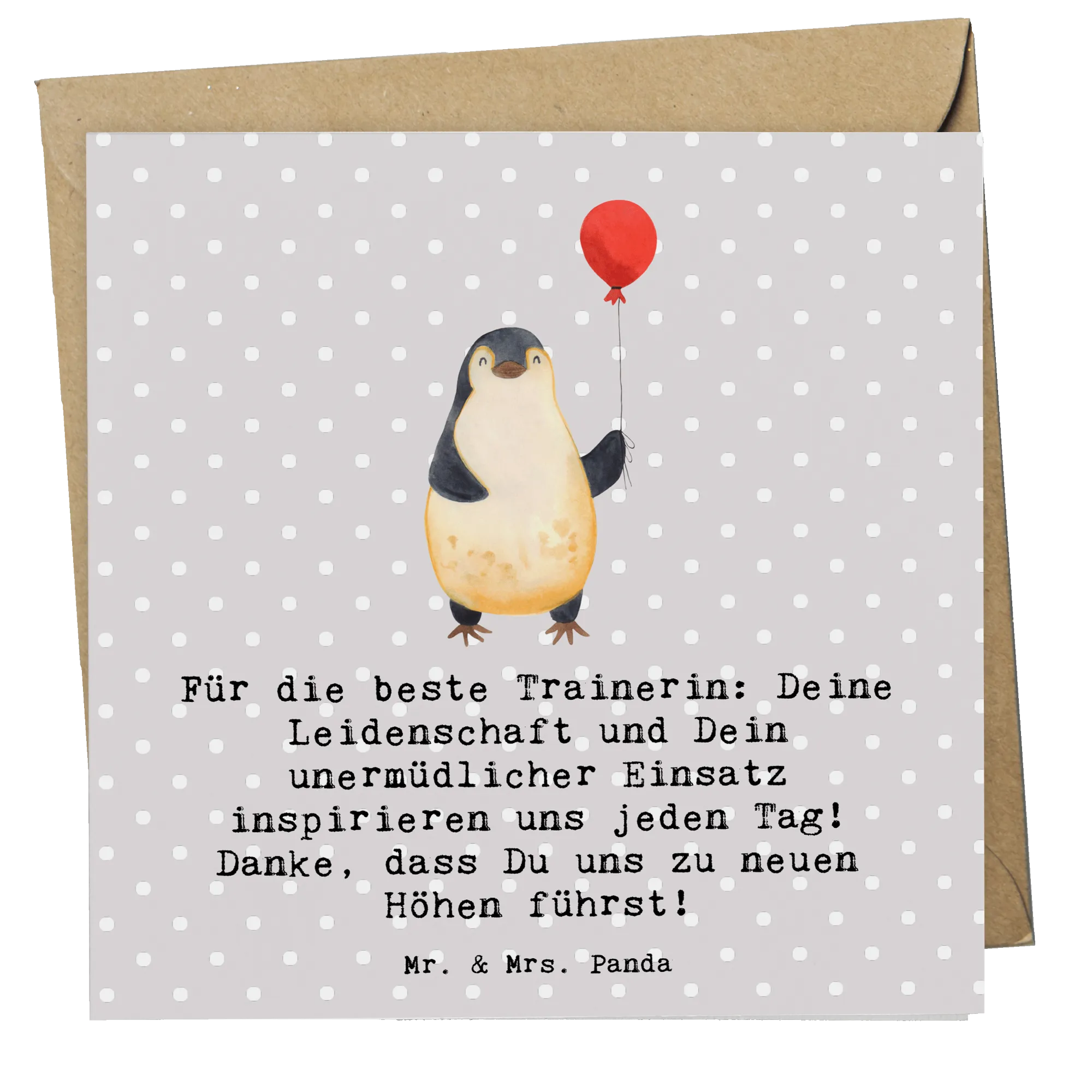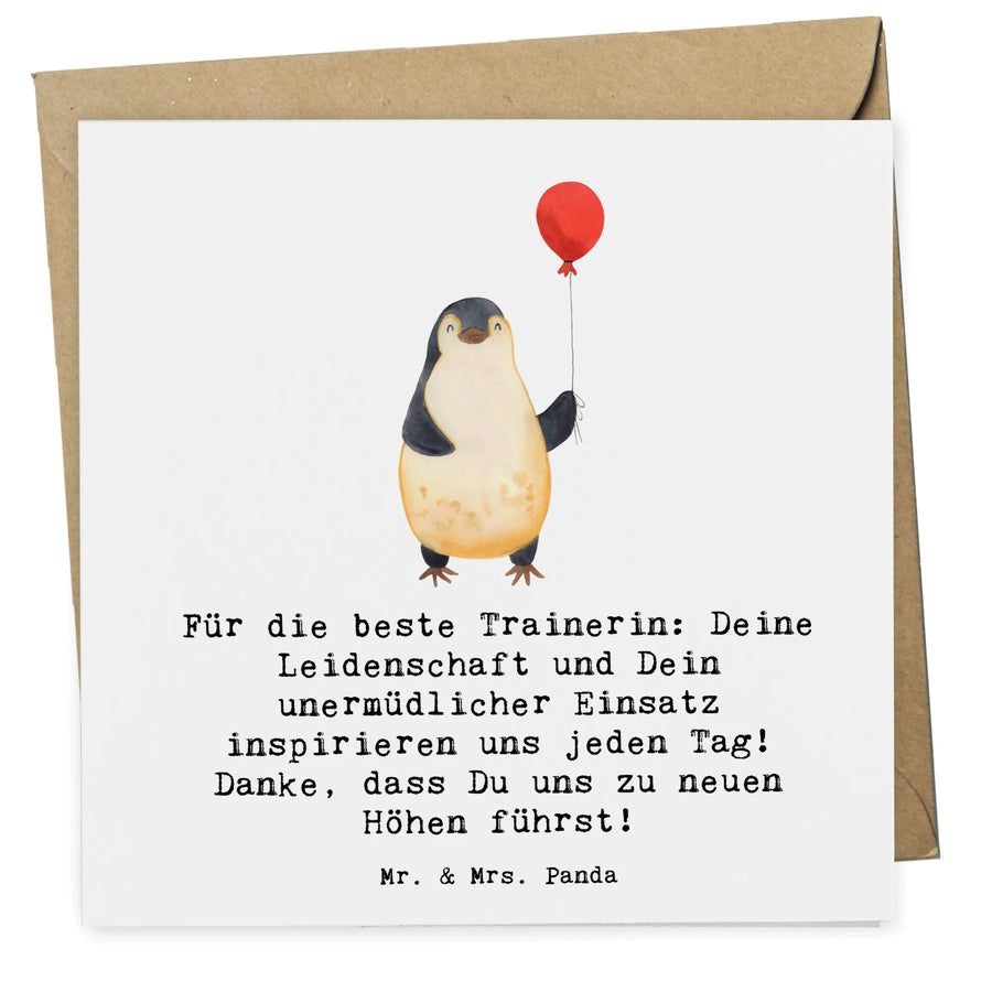 Mit einer aufregenden Botschaft auf der Vorderseite, die lautet: 'Für die beste Trainerin: Deine Leidenschaft und Dein unermüdlicher Einsatz inspirieren uns jeden Tag! Danke, dass Du uns zu neuen Höhen führst!', drückt diese Karte aus, was du oft fühlst, aber vielleicht nicht immer in Worte fassen kannst.