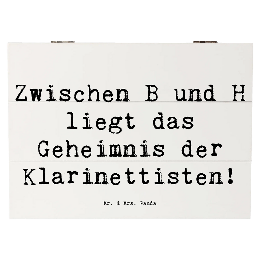 Wenn Du also auf der Suche nach dem idealen Präsent für einen Klarinettisten bist oder einen Musikliebhaber in Deinem Freundeskreis beschenkst, dann ist diese Holzkiste mit dem Motto "Zwischen B und H liegt das Geheimnis der Klarinettisten!" genau das Richtige für Dich! Mach einen Menschen glücklich und verschenke diese bezaubernde Erinnerungskiste, die sicherlich für viele schöne Momente sorgen wird!
