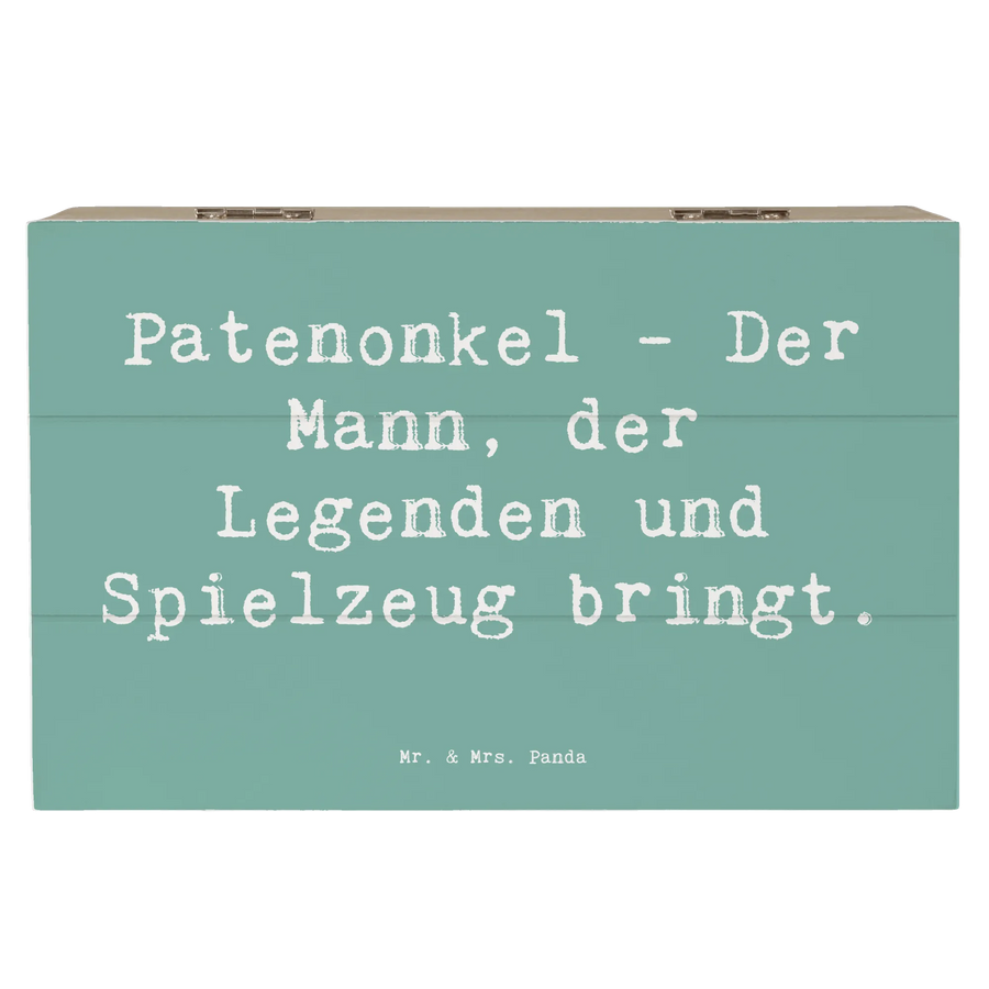 Entdecke die bezaubernde Holzkiste von Mr. & Mrs. Panda, die perfekt geeignet ist, um die wunderbare Beziehung zwischen Patenonkel und Patenkind zu würdigen. Diese wunderschöne Holzkiste hat ein fantastisches Design mit dem Spruch "Patenonkel - Der Mann, der Legenden und Spielzeug bringt." und ist in der Kollektion Familie & Verwandte ein absolutes Must-have.