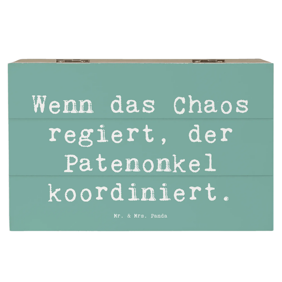 Mit dem liebevollen Spruch "Wenn das Chaos regiert, der Patenonkel koordiniert." zeigt die Kiste auf charmante Weise, wie wichtig der Patenonkel in der Rolle als geistiger Führer und Unterstützer des Patenkindes ist. Diese Kiste ist somit nicht nur eine Aufbewahrungsbox, sondern auch ein täglicher Reminder an die wunderschöne Bindung zwischen Patenonkel und Patenkind.
