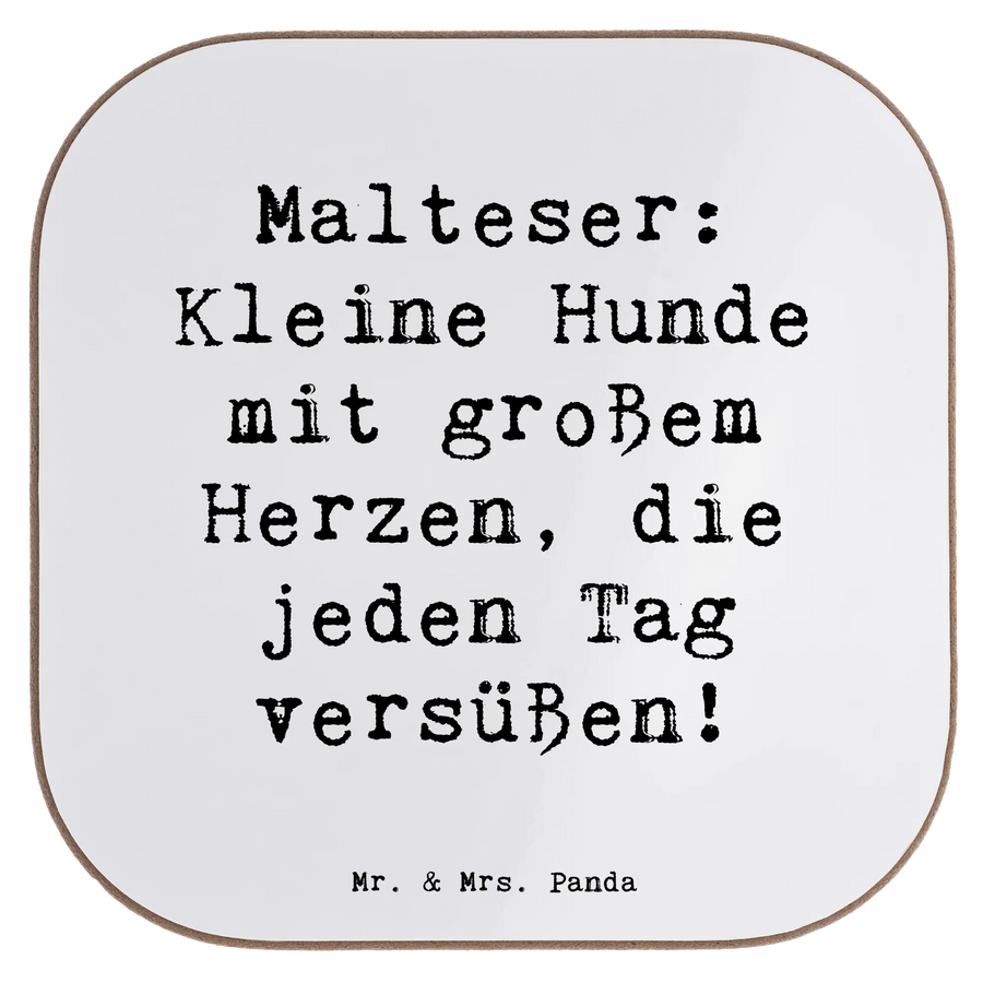 Perfekt für Malteser-Fans: Unser quadratischer Untersetzer aus der Hunderassen-Kollektion von Mr. & Mrs. Panda vereint Herz und Funktionalität. Bedruckt mit dem liebevollen Spruch „Malteser: Kleine Hunde mit großem Herzen, die jeden Tag versüßen!“, bringt er sofort Freude an Tisch und Kaffeetasse.