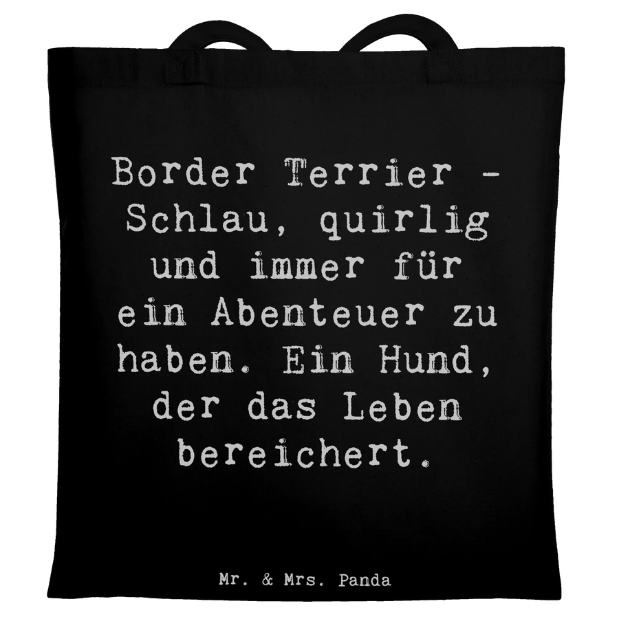 Suchst Du die perfekte Tragetasche für Border Terrier Fans? Unsere Tragetasche Border Terrier aus der Hunderassen-Kollektion von Mr. & Mrs. Panda vereint Charme, Alltagstauglichkeit und Persönlichkeit. Das liebevoll handgezeichnete Aquarellmotiv und der herzliche Spruch „Border Terrier - Schlau, quirlig und immer für ein Abenteuer zu haben. Ein Hund, der das Leben bereichert.“ machen diese Stofftasche zu einem echten Liebling – ob als Einkaufstasche, Shopper oder Strandtasche.