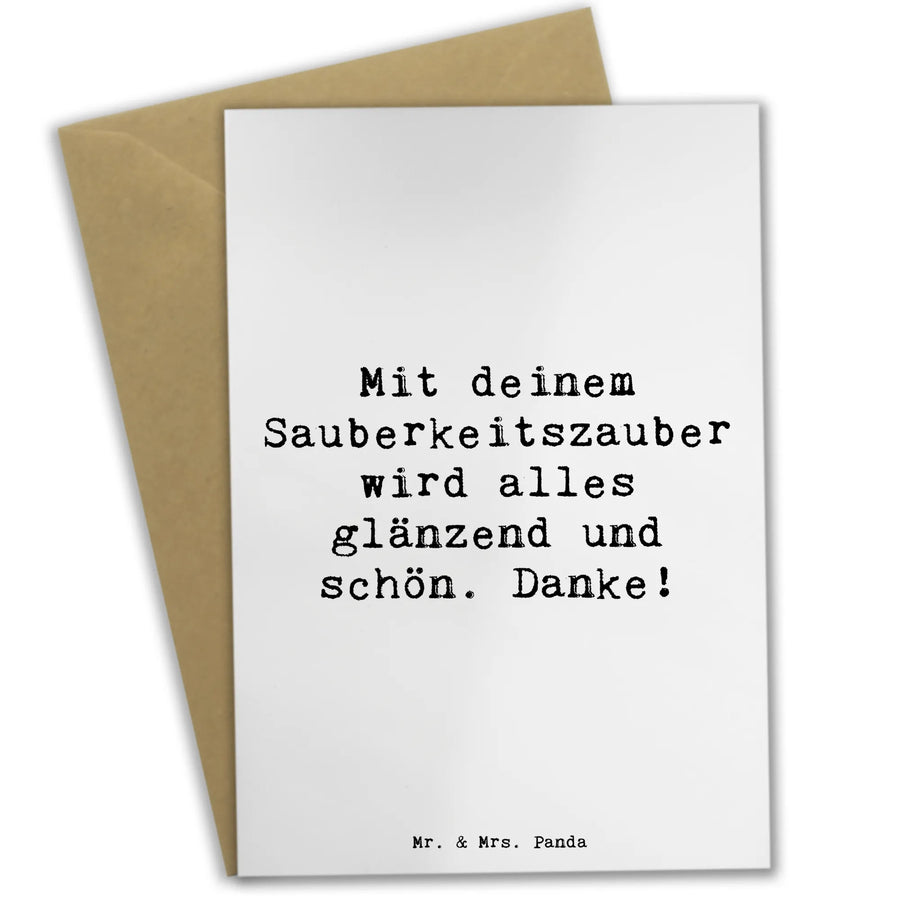 Die Grußkarte 'Reinigungskraft' aus der Dankeschön-Kollektion von Mr. & Mrs. Panda ist das perfekte Geschenk für jeden Anlass, an dem Dankbarkeit und Wertschätzung im Vordergrund stehen. Egal, ob Du Dich bei einer Reinigungskraft für ihre harte Arbeit bedanken möchtest oder einfach nur eine kleine Aufmerksamkeit für einen Freund benötigst – diese Karte ist die ideale Wahl!