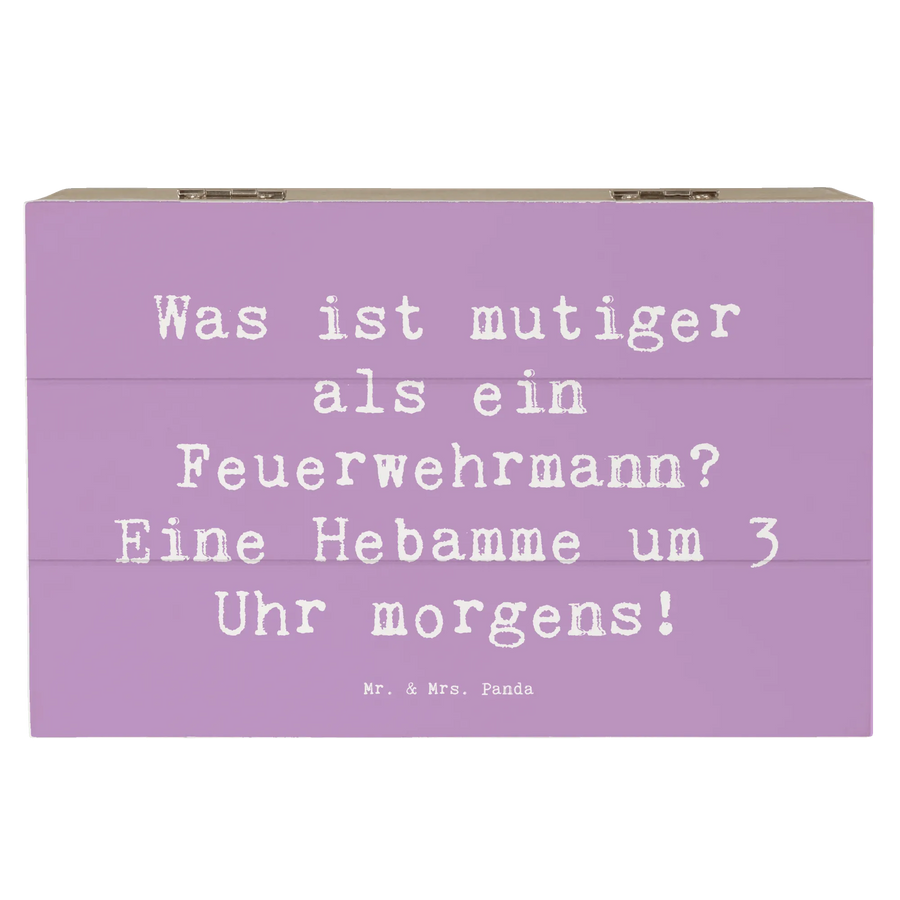 Die perfekte Holzkiste für alle Hebammen und Gesundheitshelden! Diese wunderschöne Erinnerungskiste von Mr. & Mrs. Panda wird schnell zum ganz persönlichen Aufbewahrungsort für kostbare Schätze und Erinnerungen. Ob zur Geburt eines Kindes, zur Feier einer Konfirmation oder einfach nur zur Aufbewahrung von kleinen Andenken – diese Kiste bietet den idealen Platz. Mit dem liebevoll gestalteten Motiv einer Hebamme und dem humorvollen Spruch "Was ist mutiger als ein Feuerwehrmann? Eine Hebamme um 3 Uhr morgens!" bringt sie ein Lächeln in jedes Herz.