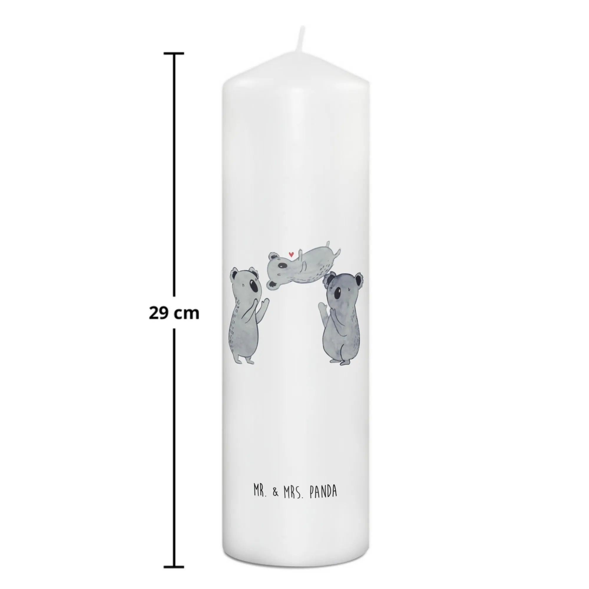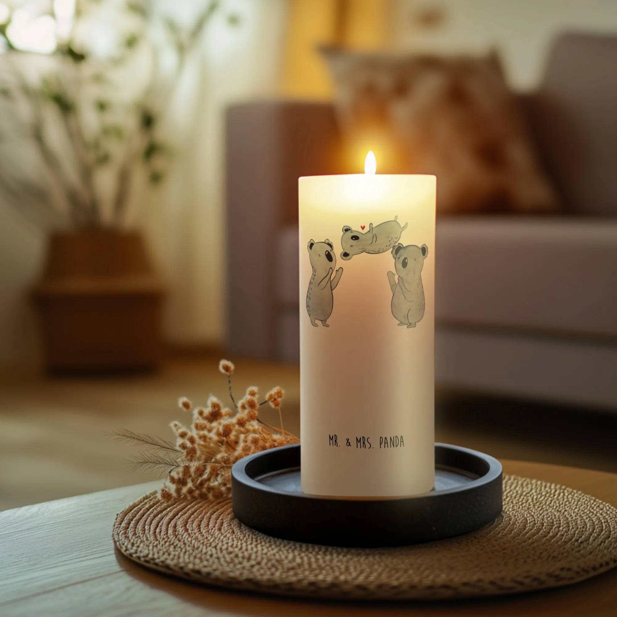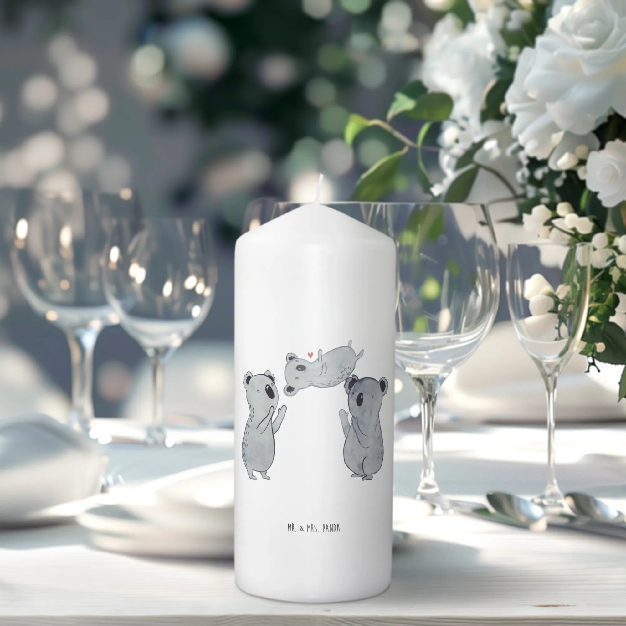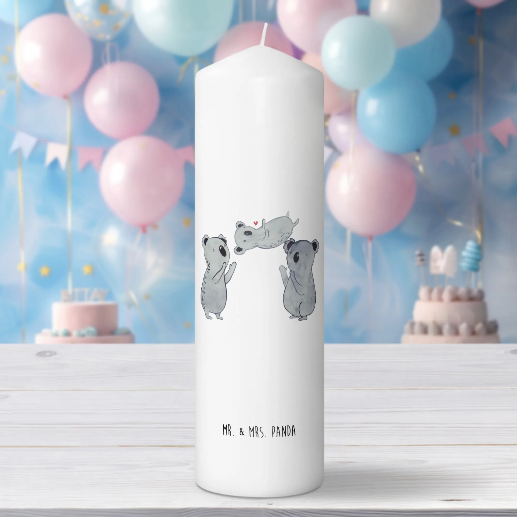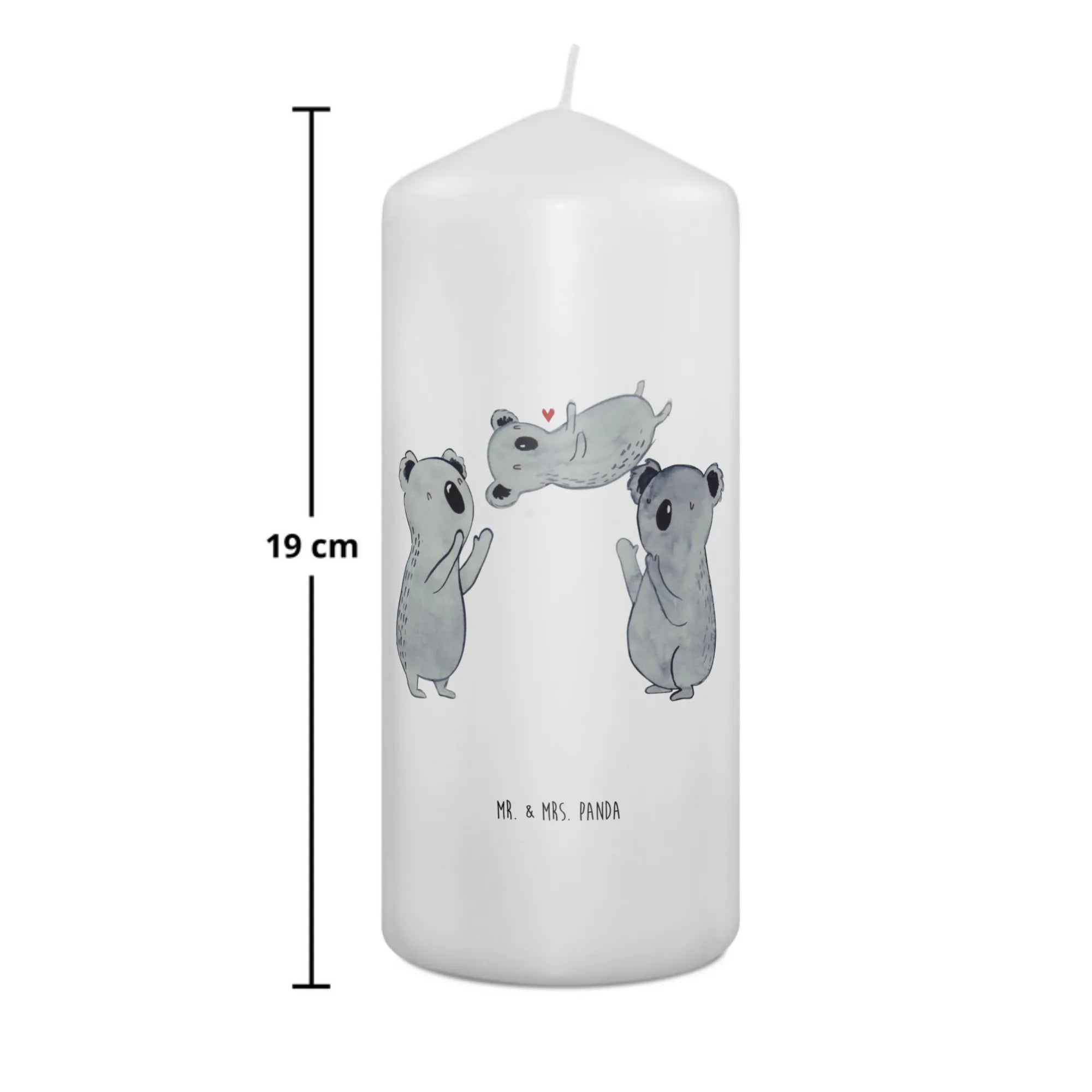 Entdecke die wunderbare Koala Feiern Sich Kerze von Mr. & Mrs. Panda! Diese besondere Kerze ist das perfekte Geschenk für jeden Geburtstag und bringt Freude in jede Feier. Mit dem bezaubernden Motiv von zwei süßen Koalas, die einen anderen Koala voller Glück in die Luft werfen, vermittelt sie eine herzliche Botschaft: 'Hoch sollst du leben!'.