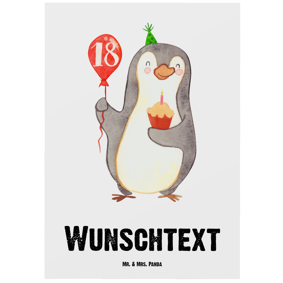Personalizowana kartka pocztowa 18. urodziny Pingwin z balonem