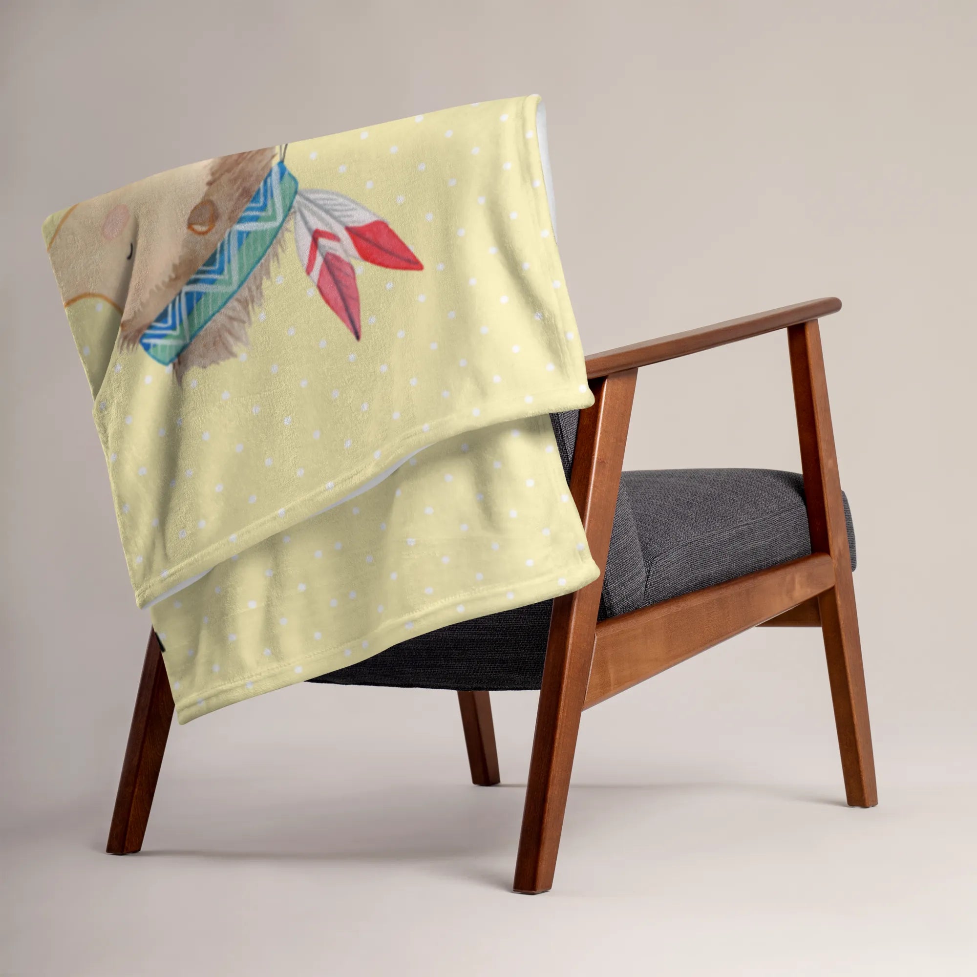 Kocyk dla niemowląt z imieniem jeż Ozdoba z piór - Pastelowy żółty