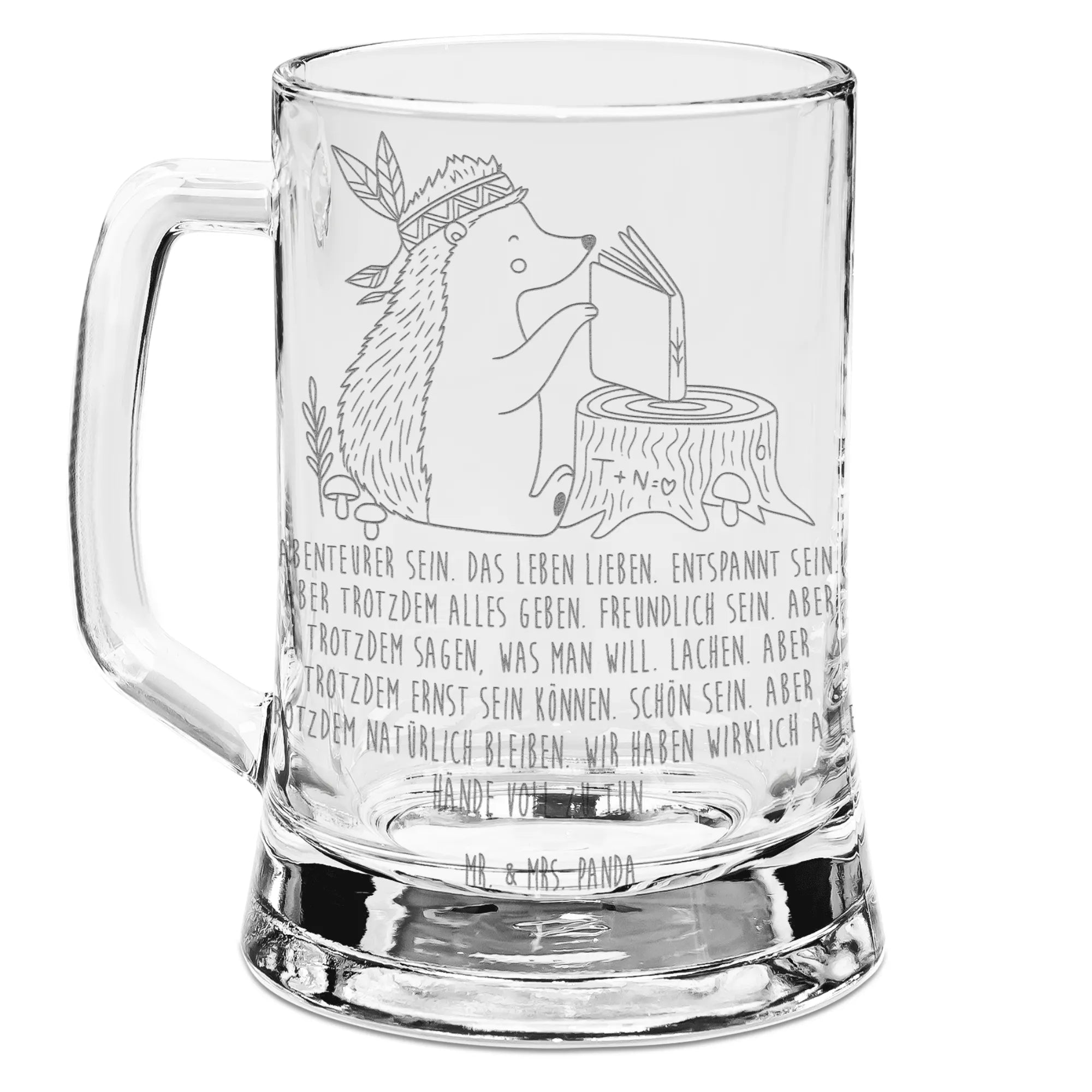Gravur Bierkrug Igel Federschmuck - mit Spruch