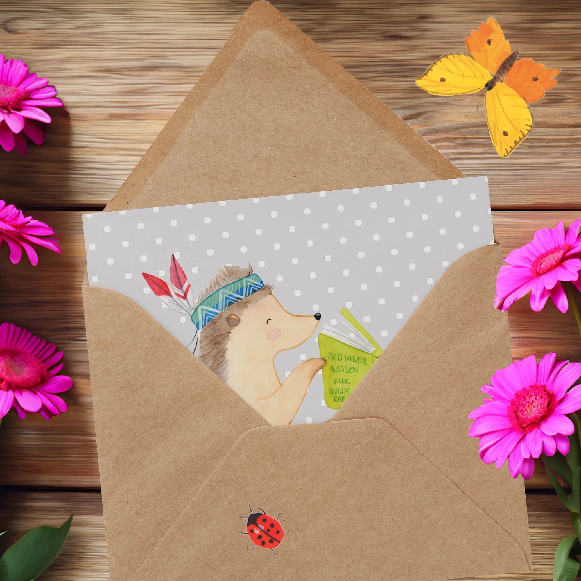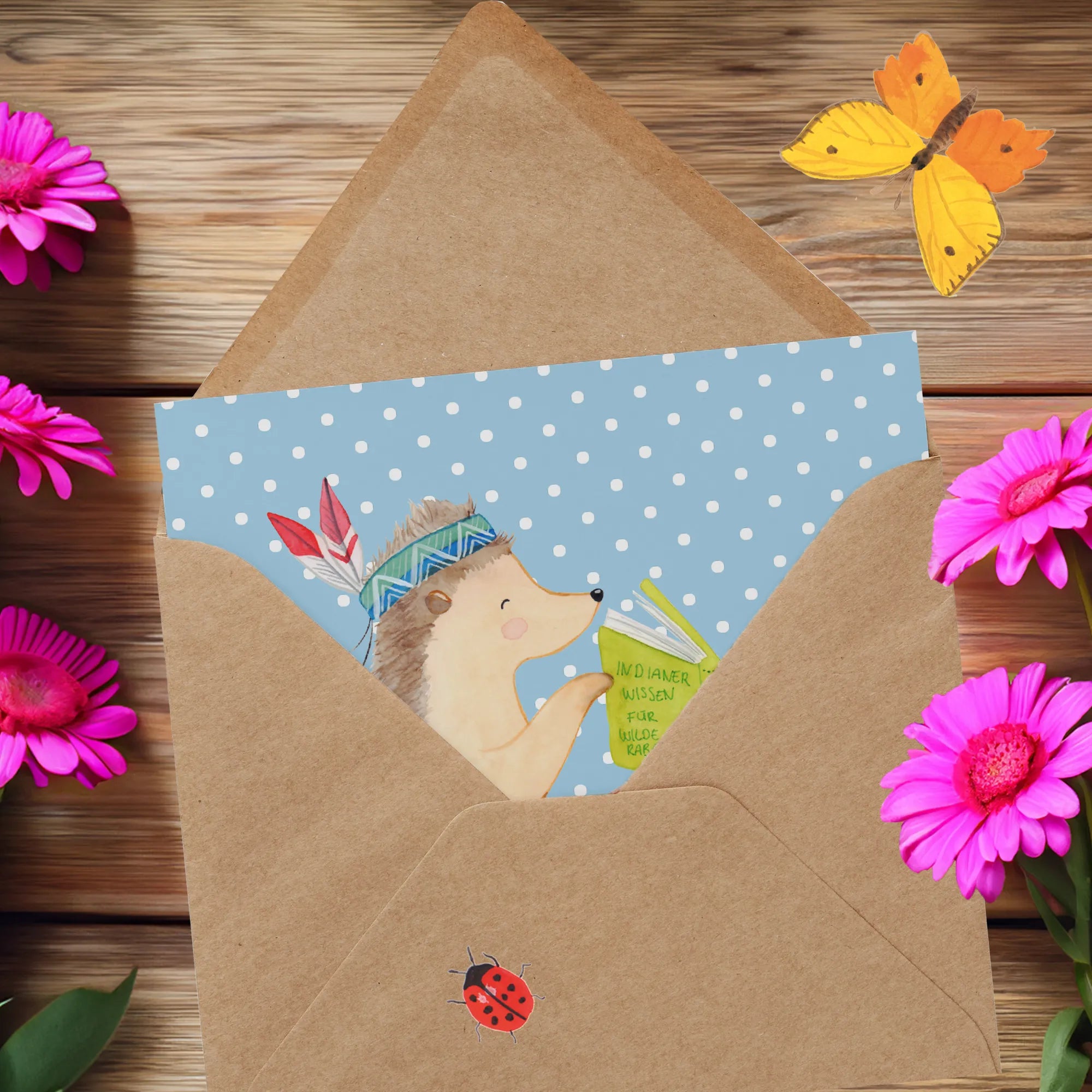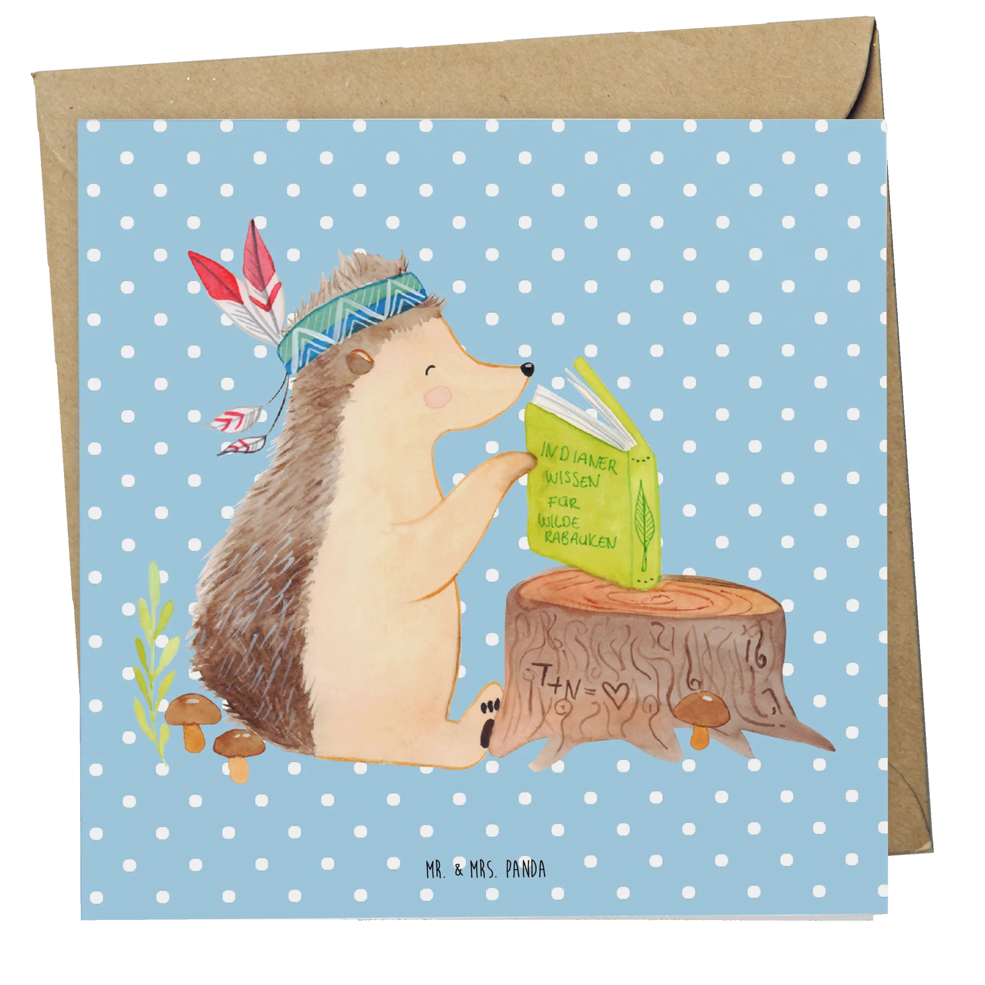 Karta Deluxe jeż Ozdoba z piór - z napisem - Pastelowy niebieski