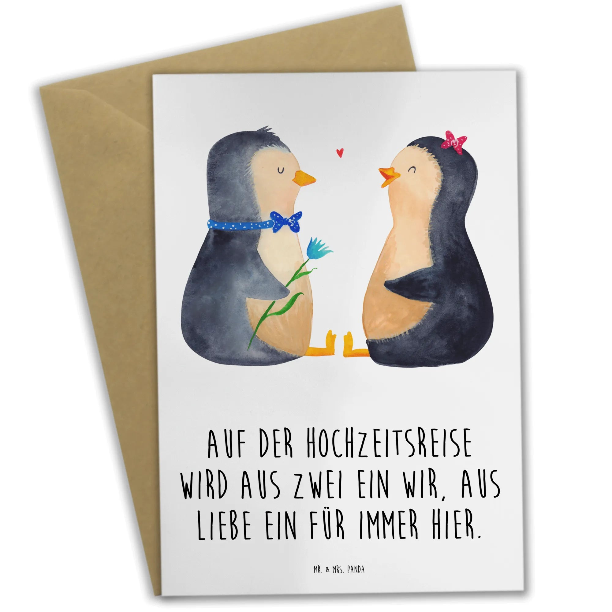 Bereite dem Brautpaar mit unserer liebevollen Grußkarte besondere Freude und mache ihre Hochzeitsreise unvergesslich. Egal, ob du sie direkt überreichst oder mit anderen Geschenken kombinierst, diese Karte ist ein wahres Highlight und wird mit Sicherheit Platz in jedem Herzen finden! Lass dich von unserer Hochzeitskollektion inspirieren, wo du die schönsten Ideen für Geschenke zur Hochzeit oder Verlobung findest. Mit Mr. & Mrs. Panda wird jeder Hochzeitsmoment zu etwas ganz Besonderem.