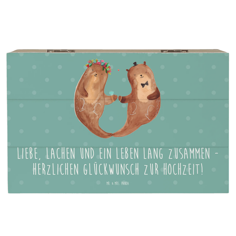 Details, die Freude machen: Die Kiste ist mit einem liebevollen Motiv und dem Hochzeits-Spruch bedruckt. Sie ist nicht personalisierbar, dafür hochwertig gestaltet und pflegeleicht mit einem feuchten Tuch zu reinigen. Entdecke die komplette Hochzeitskollektion von Mr. & Mrs. Panda für noch mehr romantische Ideen.