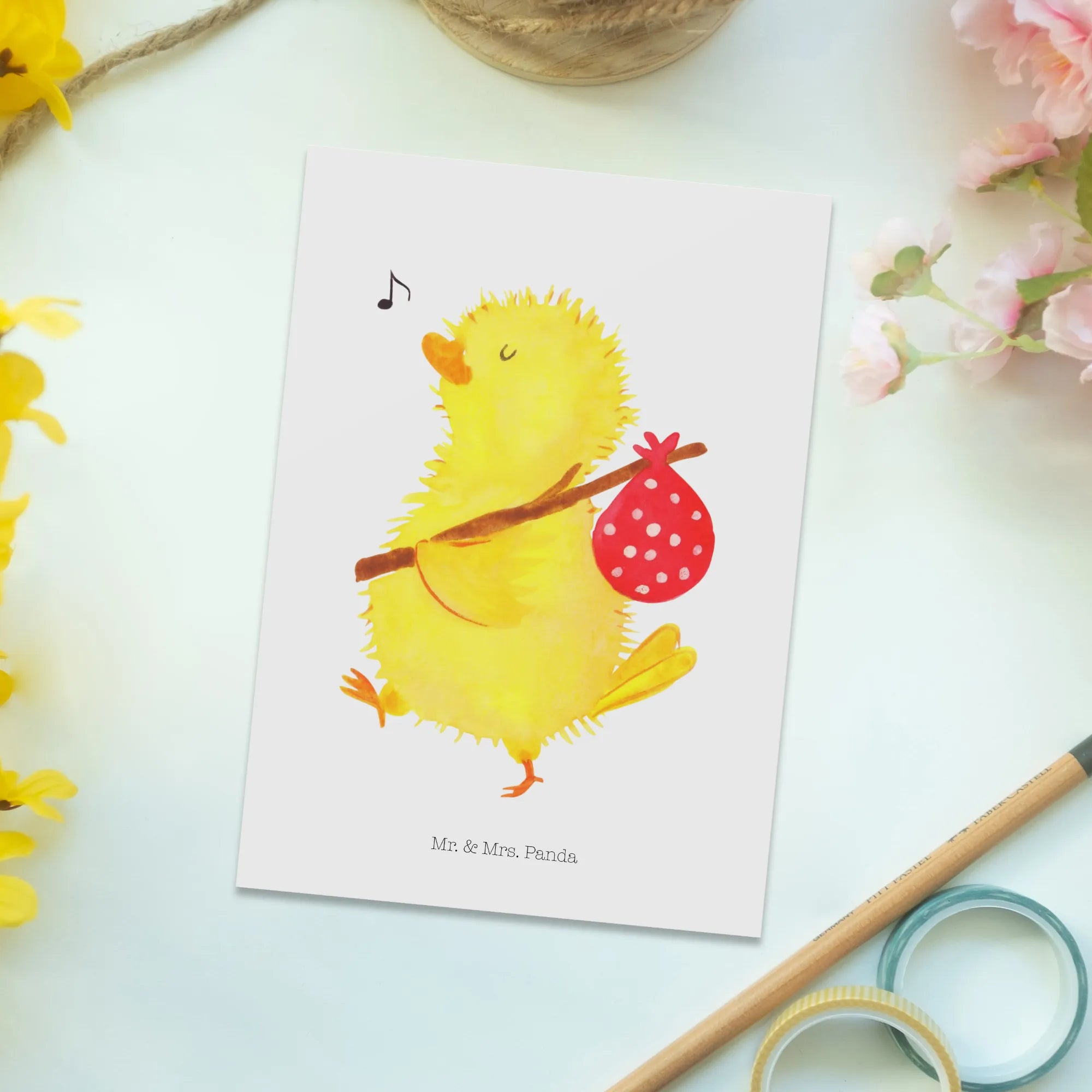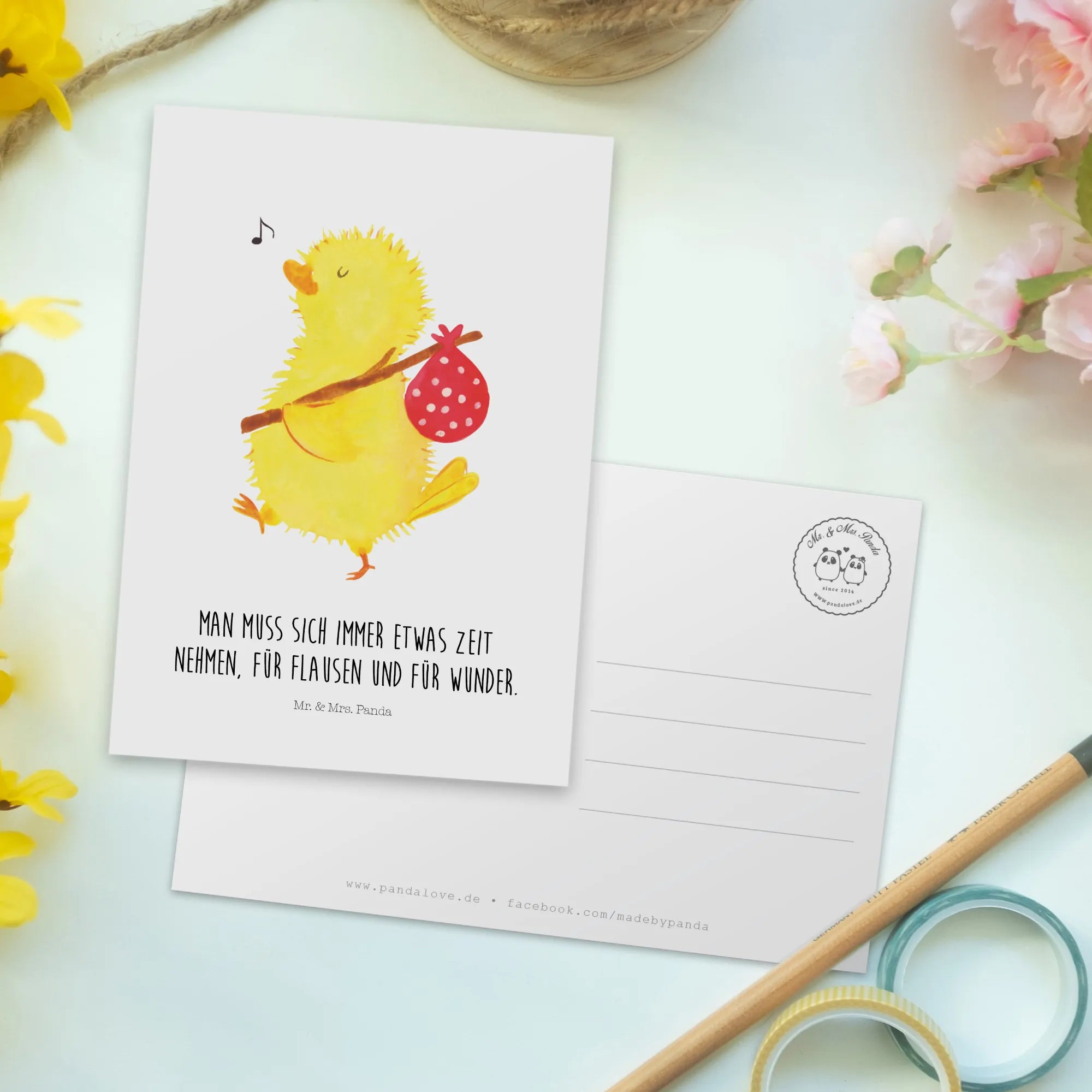 Pocztówka pisklę Wędrówka - z napisem
