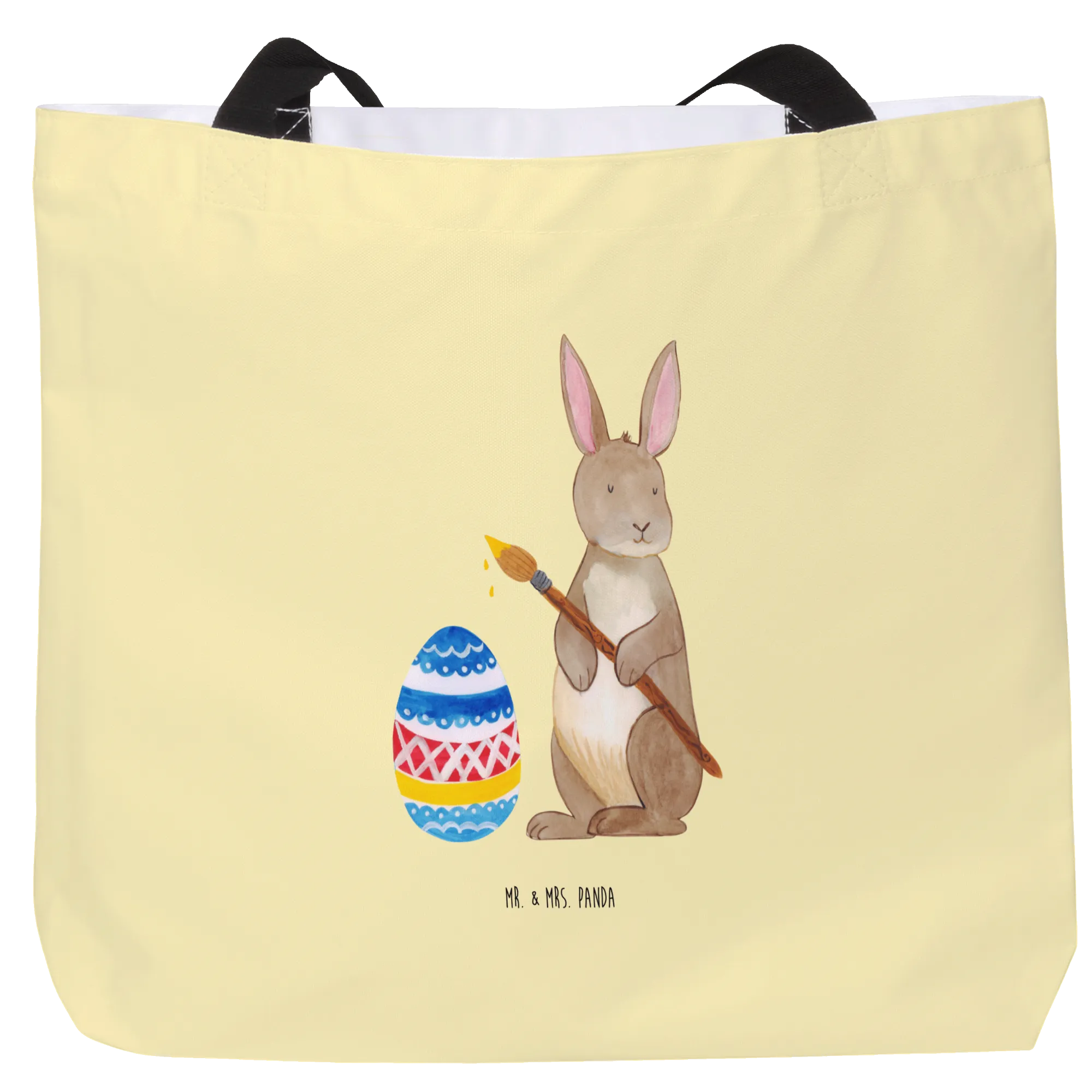 Shopper Zając Malowanie jajek - z napisem - Pastelowy żółty