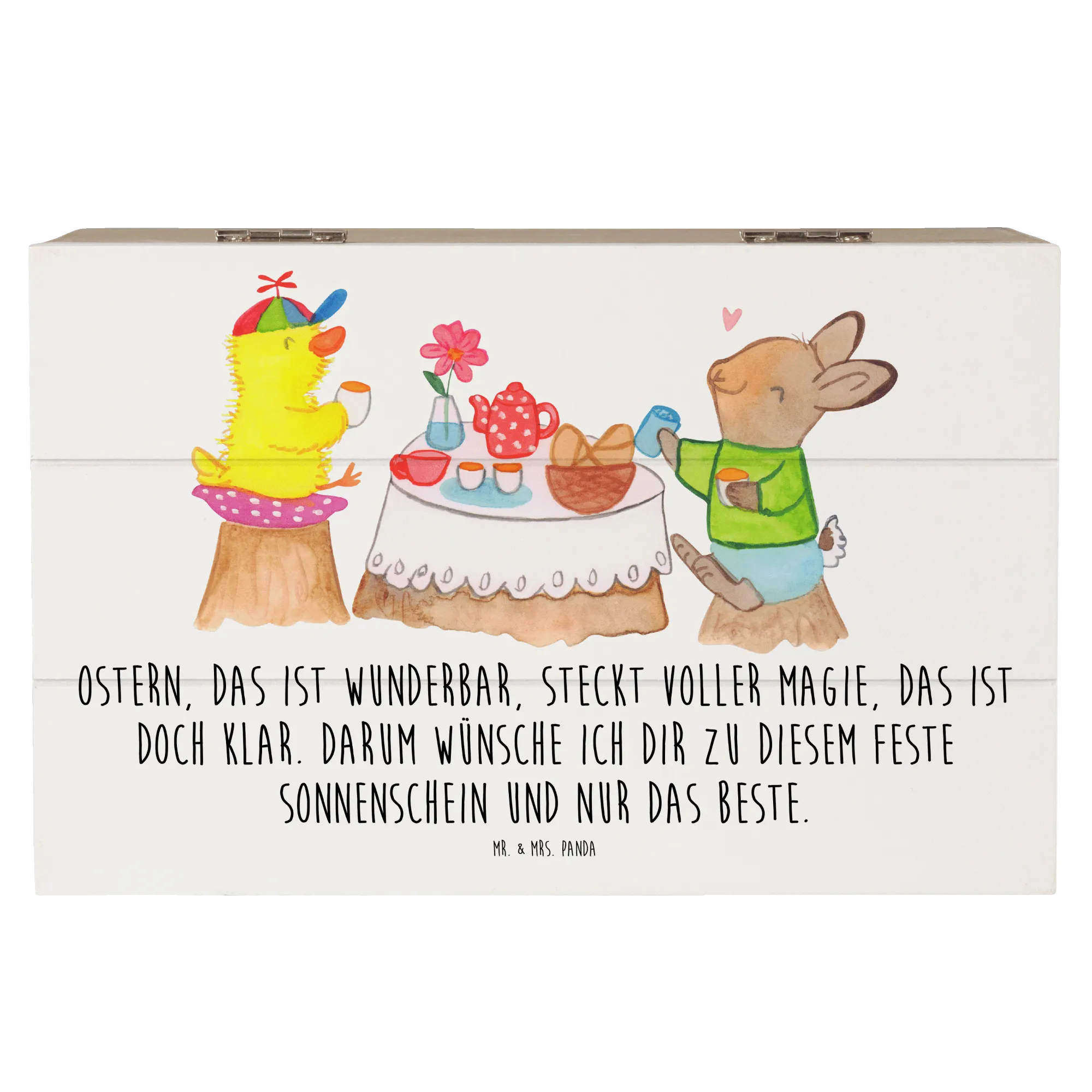 Skrzynia drewniana Wielkanoc śniadanie - 19 x 12 cm - biały