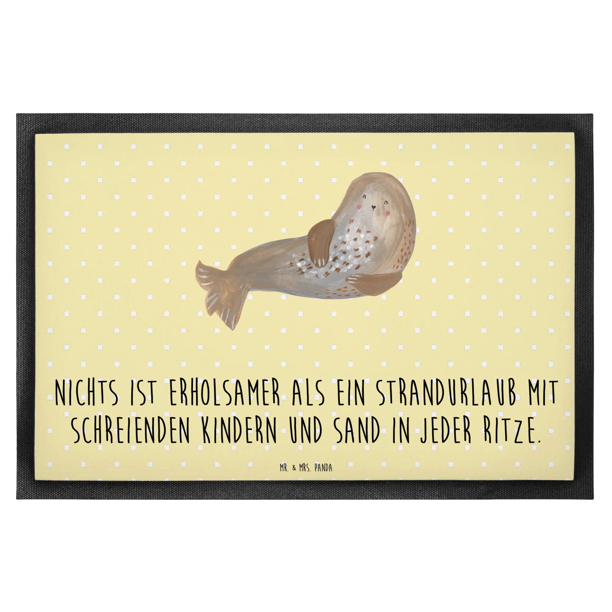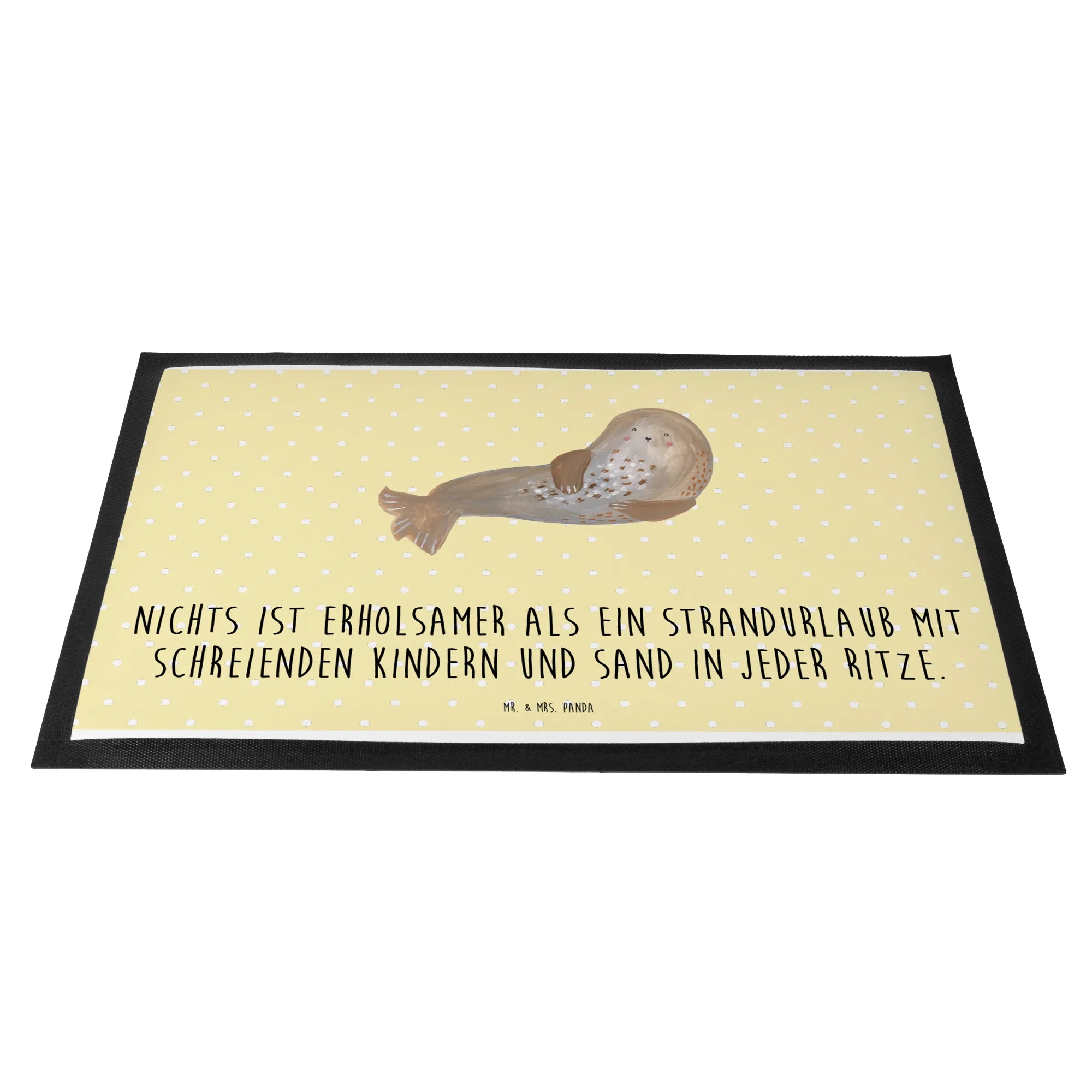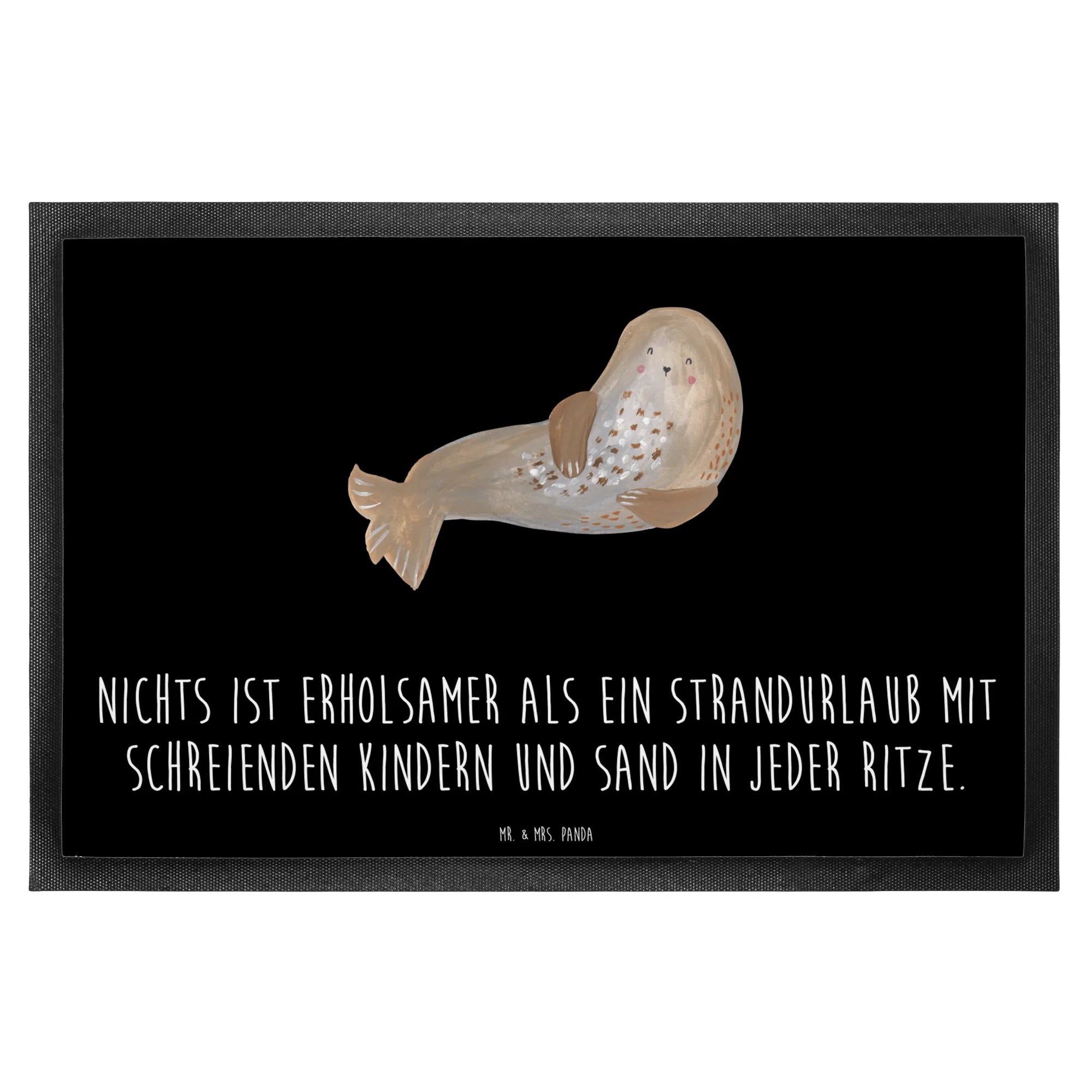 Entdecke die perfekte Fußmatte für den Sommer von Mr. & Mrs. Panda! Diese wunderschöne und hochfunktionale Fußmatte bringt die Sonne direkt vor Deine Haustür. Mit einem fröhlichen Sommermotiv und dem spritzigen Slogan "Nichts ist erholsamer als ein Strandurlaub mit schreienden Kindern und Sand in jeder Ritze" zaubert sie Dir ein Lächeln ins Gesicht, während sie gleichzeitig Deine Wohnung schützt.