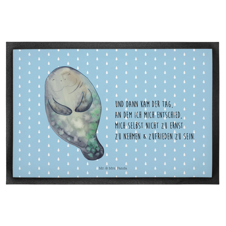 wycieraczka morska krowa Szczęśliwy - 40 x 60 cm - z napisem - Pastelowy niebieski