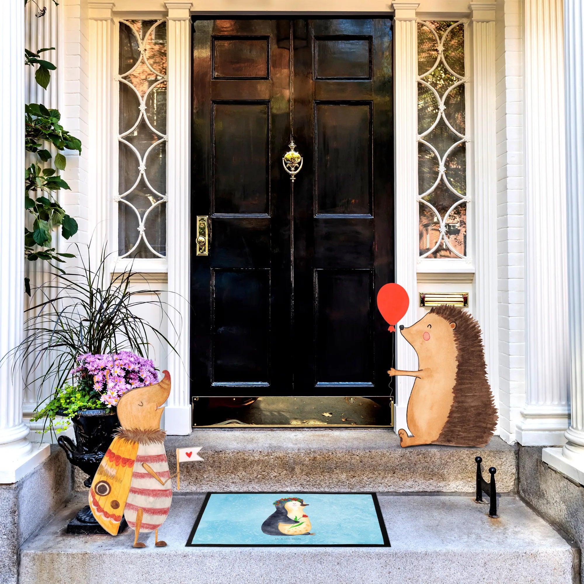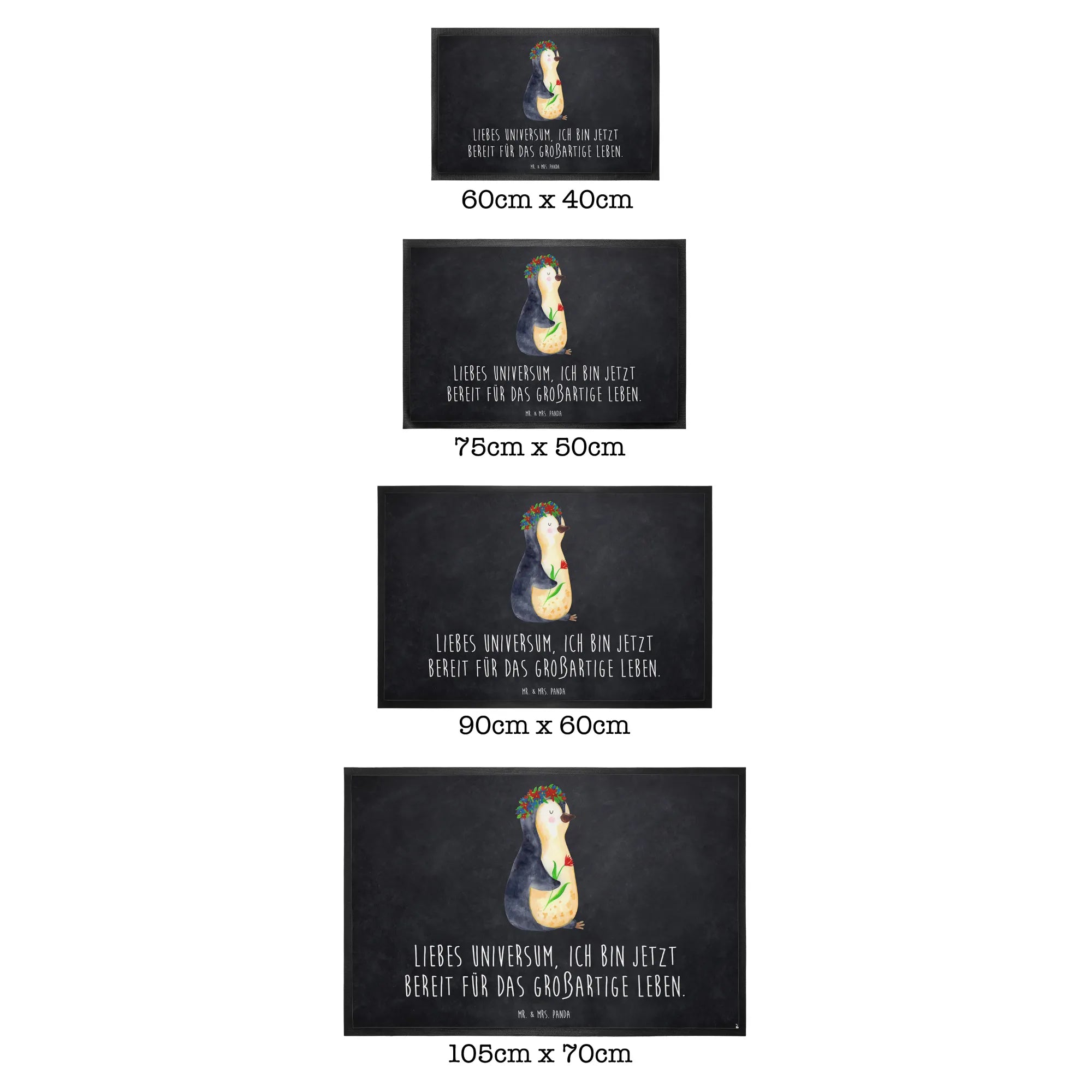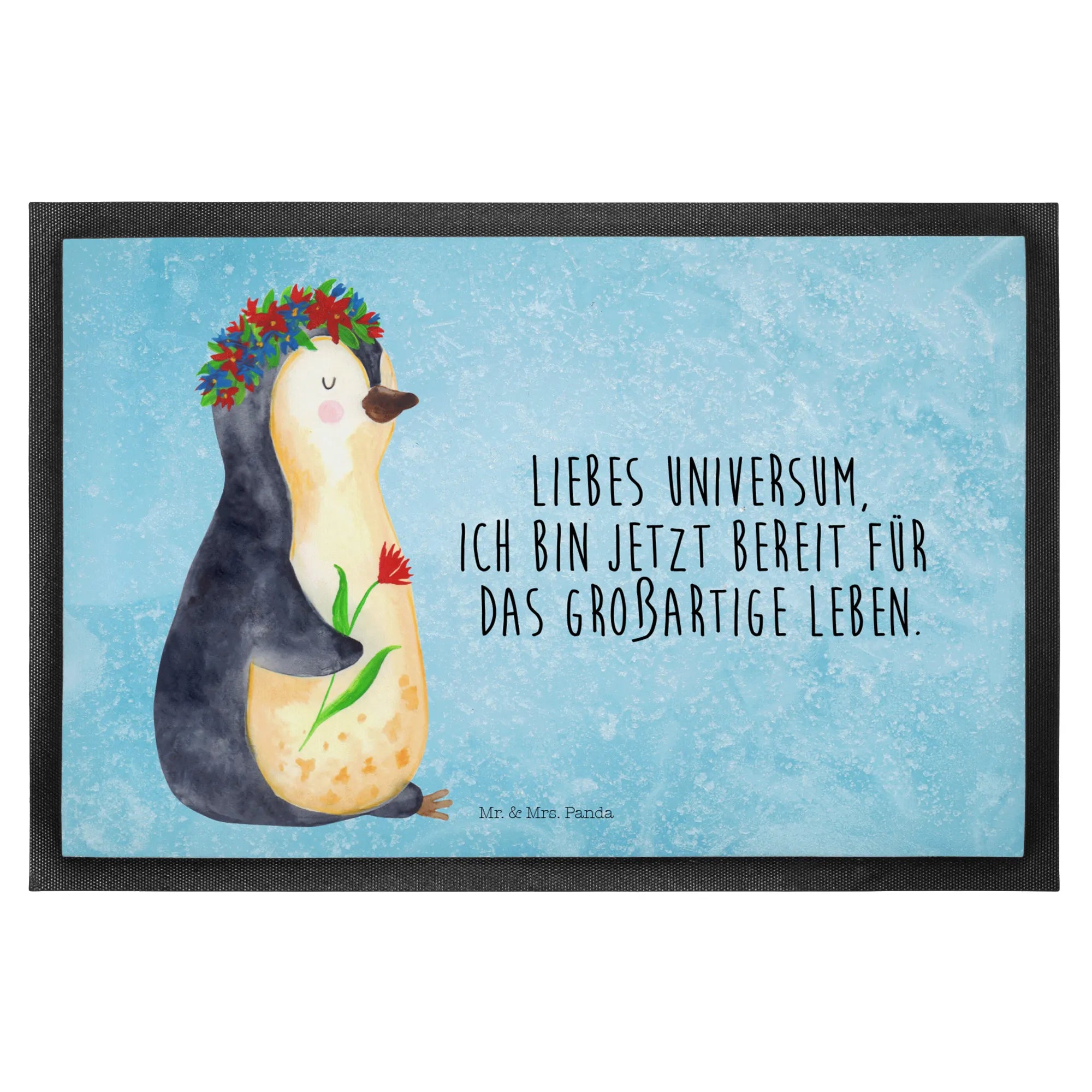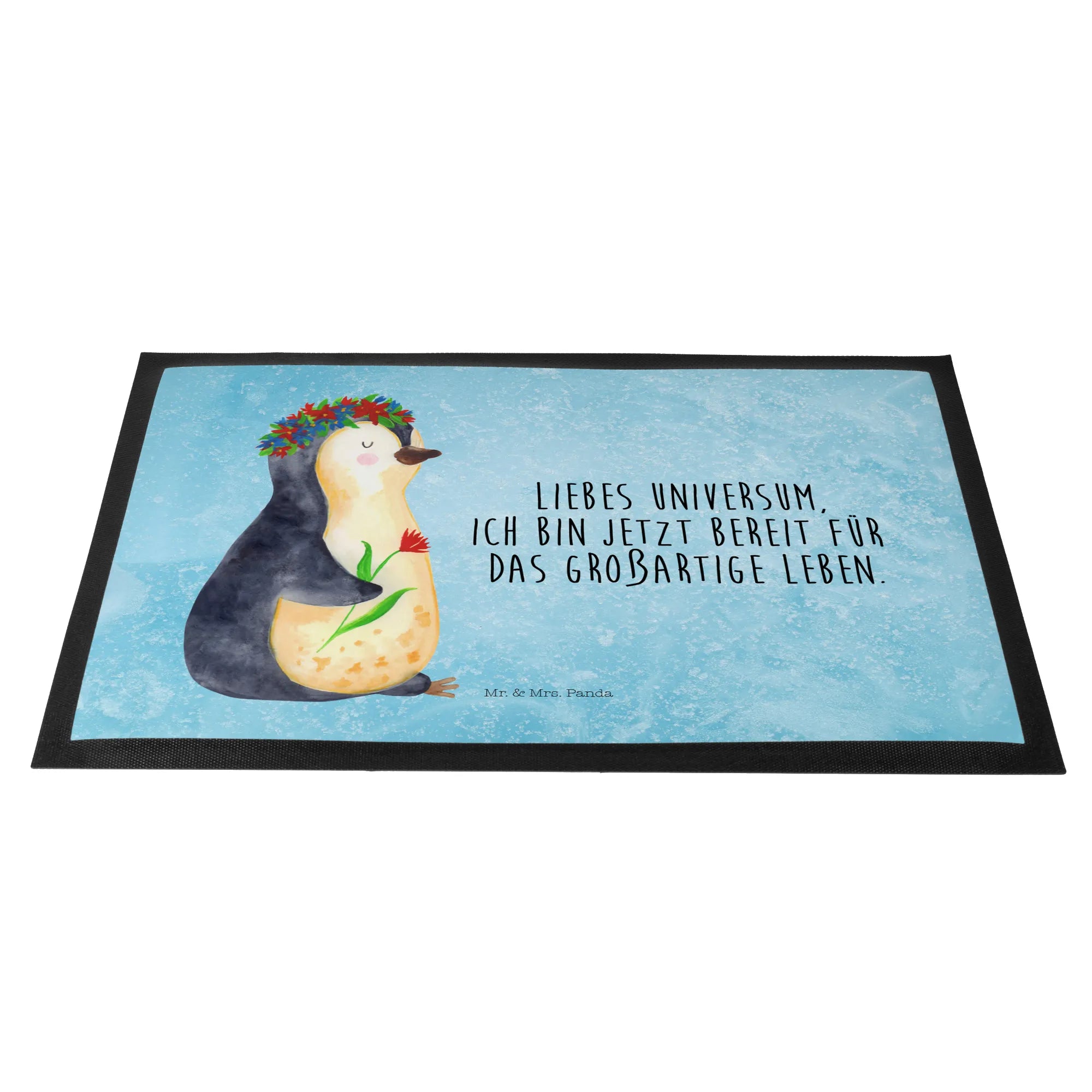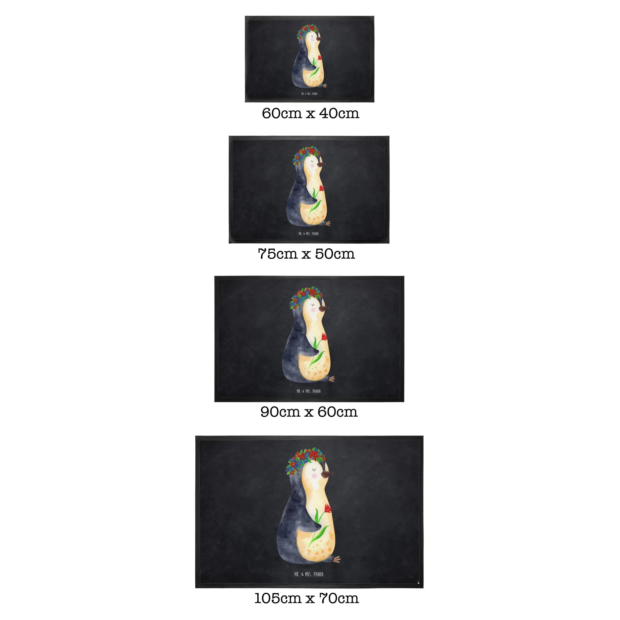 wycieraczka pingwin kwiaty - 40 x 60 cm - z napisem - Czarny
