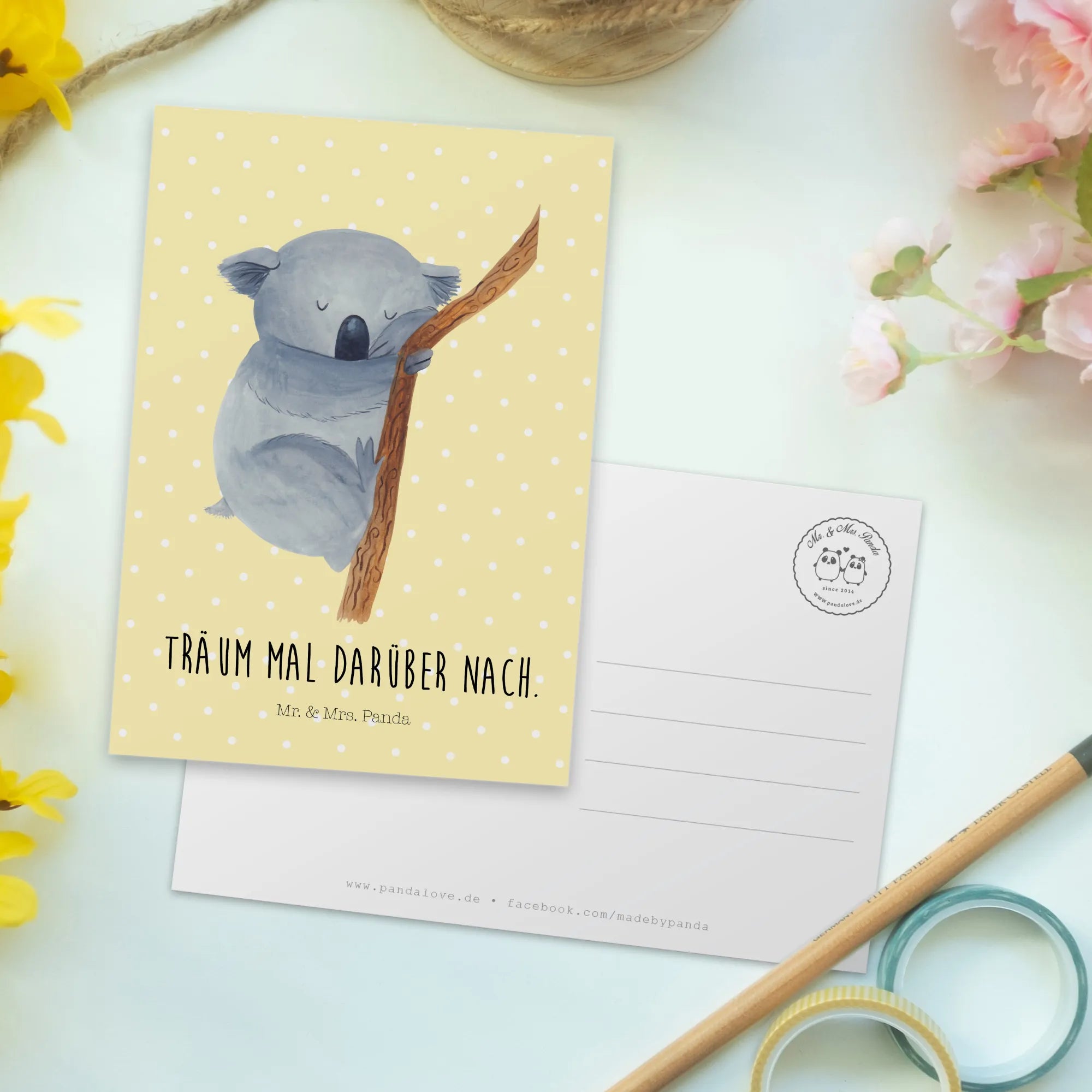 Pocztówka Koala - z napisem - Pastelowy żółty