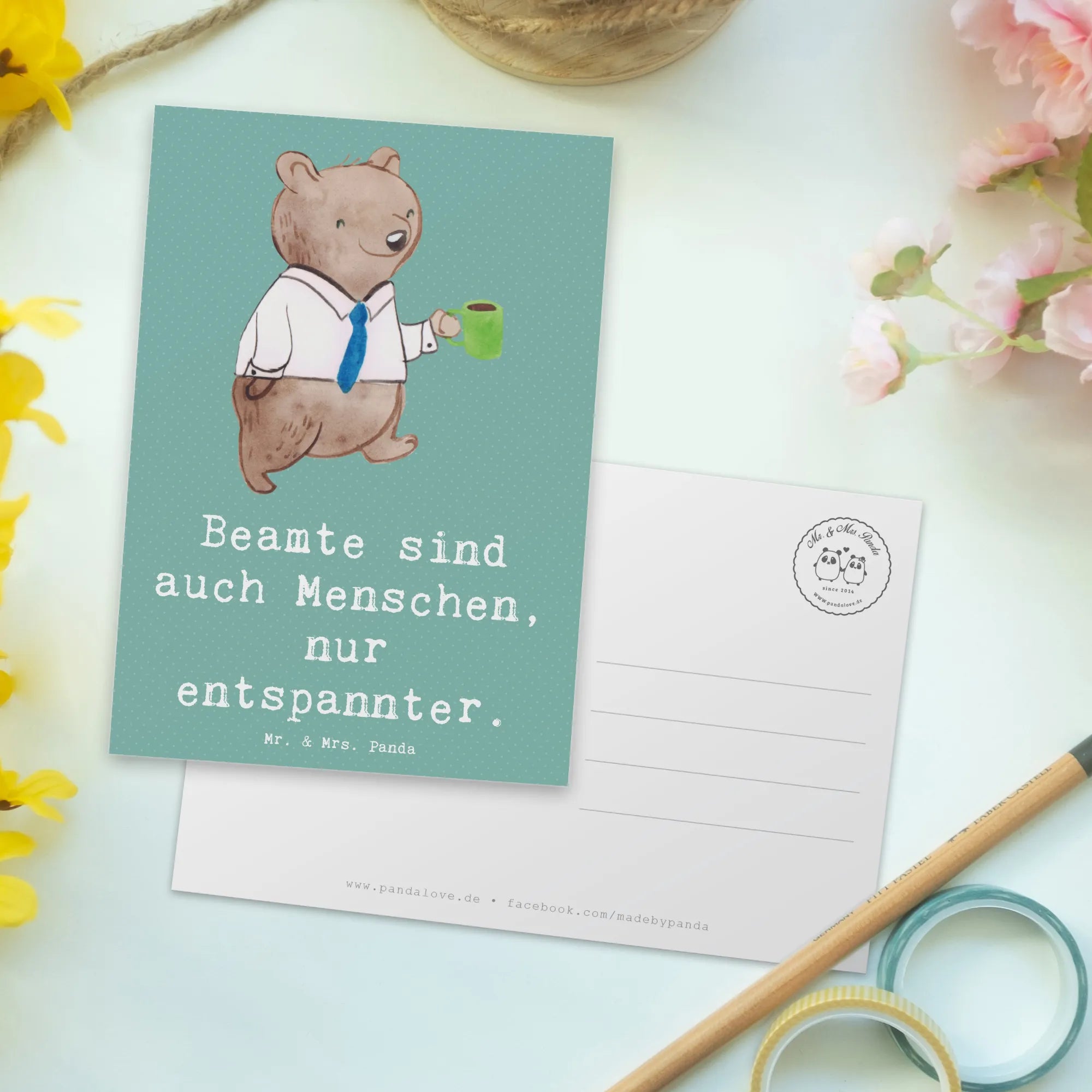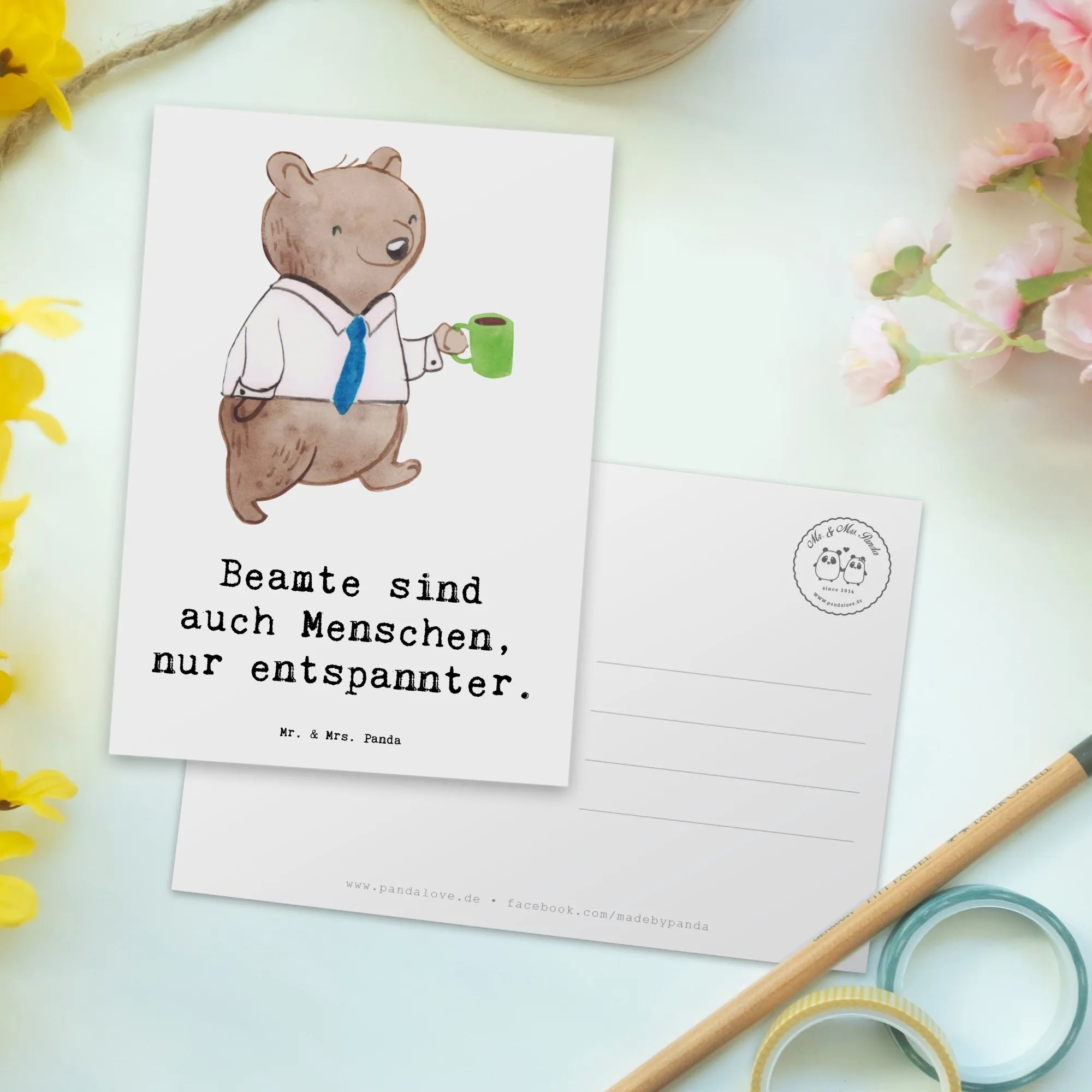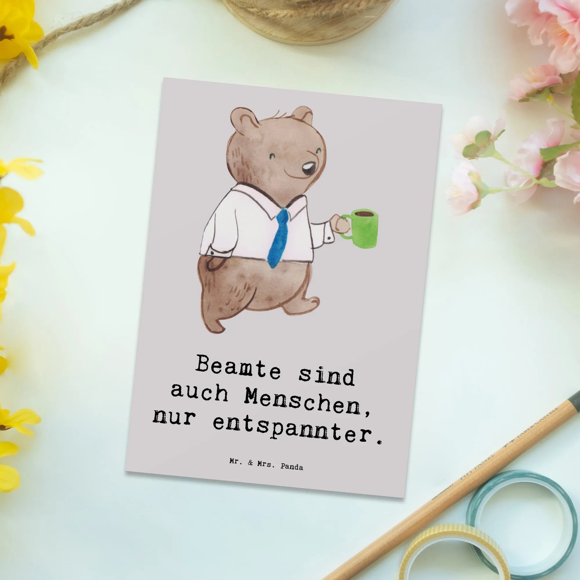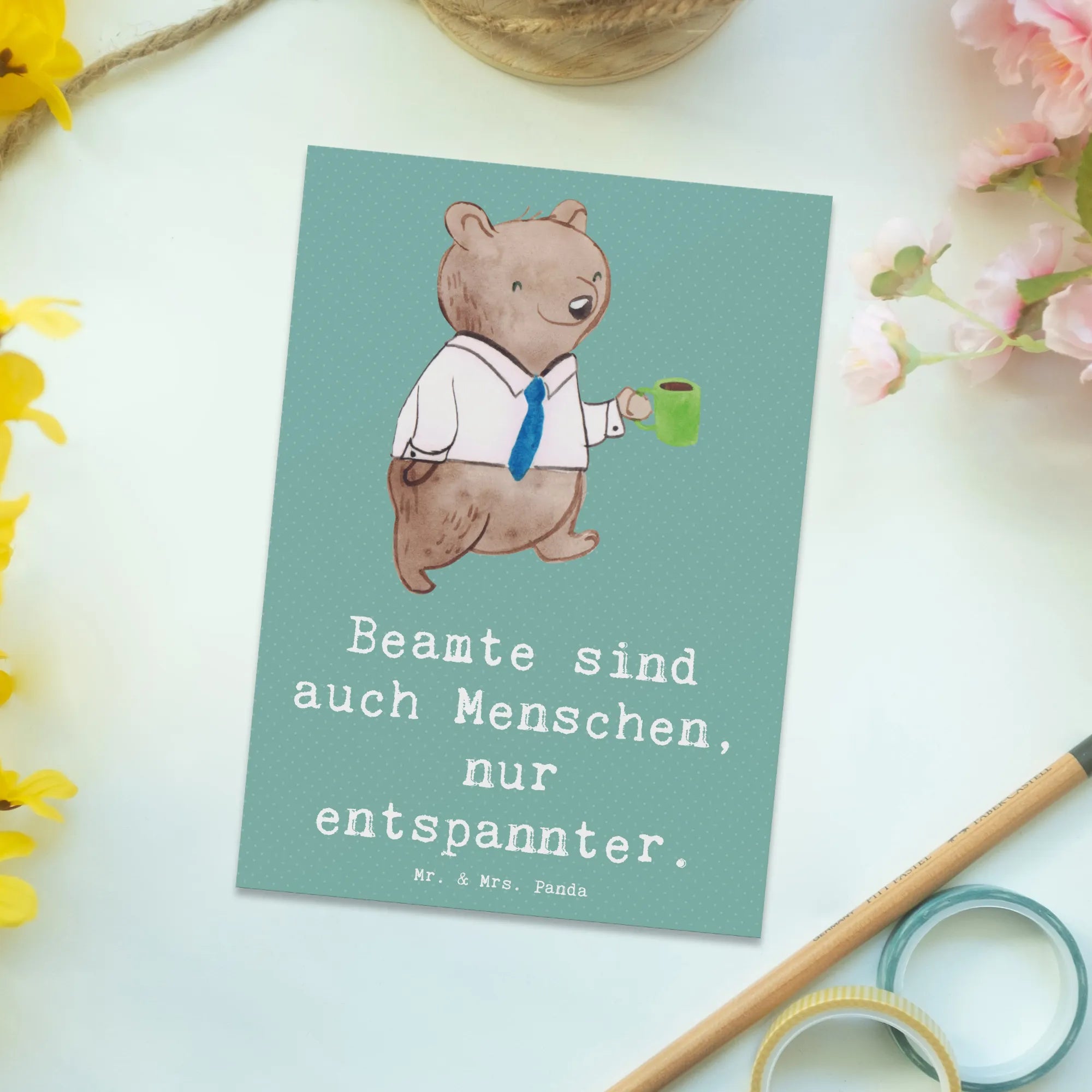 Du suchst nach einem ganz besonderen Geschenk? Die einzigartige Postkarte "Beamtin" aus der zauberhaften Kollektion "Berufe" von Mr. & Mrs. Panda ist die perfekte Wahl! Egal, ob zum Geburtstag, als Dankeskarte oder einfach nur, um Deinen Freunden oder Kollegen eine Freude zu machen, diese Karte zieht alle Blicke auf sich. Mit einem charmanten Spruch "Beamte sind auch Menschen, nur entspannter." zaubert sie jedem ein Lächeln ins Gesicht.