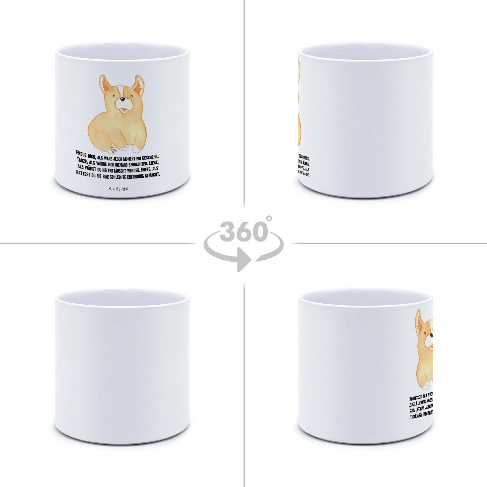 Du suchst nach dem perfekten Geschenk für einen Hundeliebhaber oder vielleicht für dich selbst? Der XL Blumentopf mit dem niedlichen Corgi-Motiv aus der Hunde Kollektion von Mr. & Mrs. Panda ist nicht nur ein echter Blickfang, sondern auch äußerst praktisch! Der liebevoll gestaltete Keramiktopf bietet Platz für alle möglichen Pflanzen – sei es ein frischer Kräutertopf für die Küche oder ein blühender Pflanzkübel für deinen Balkon oder die Terrasse.