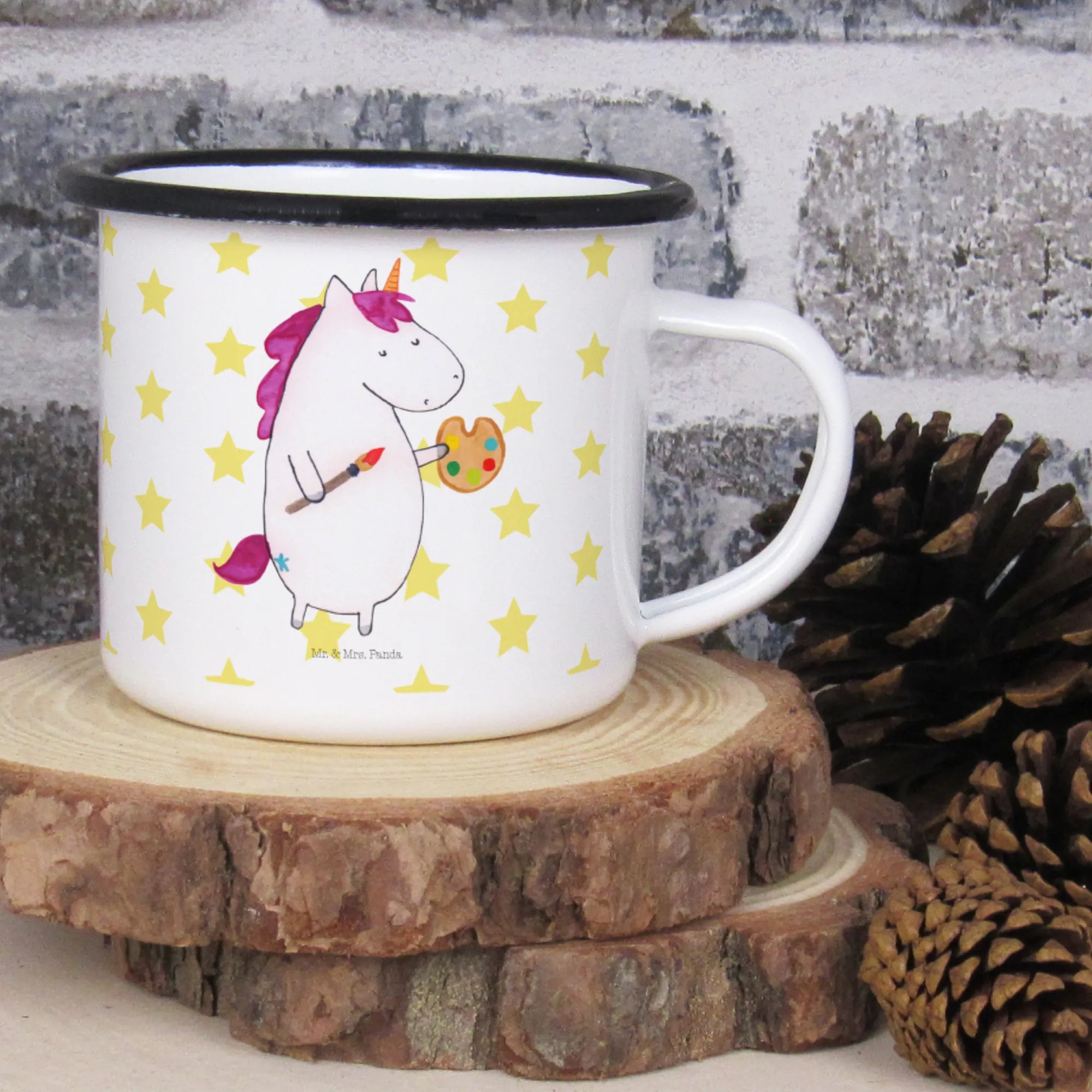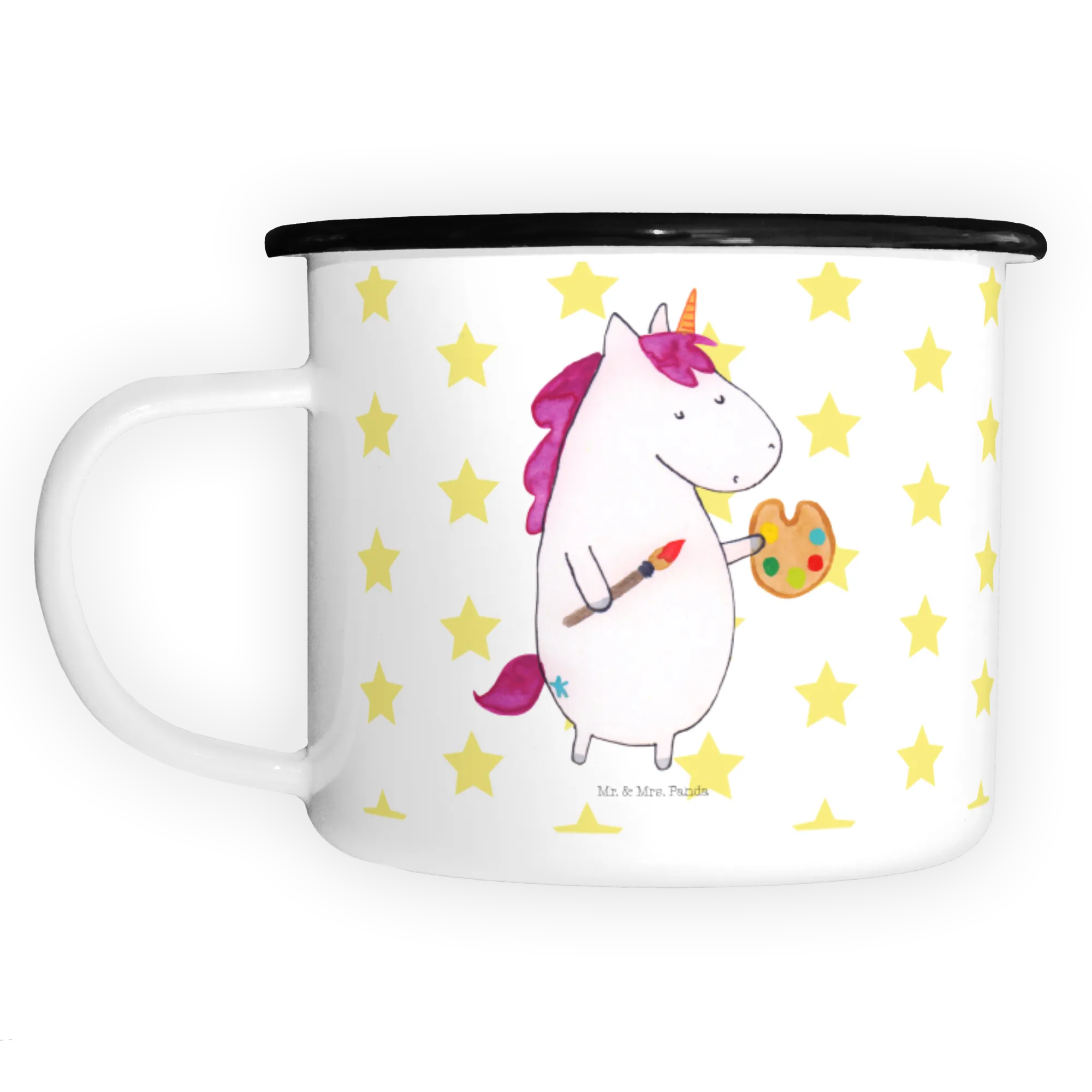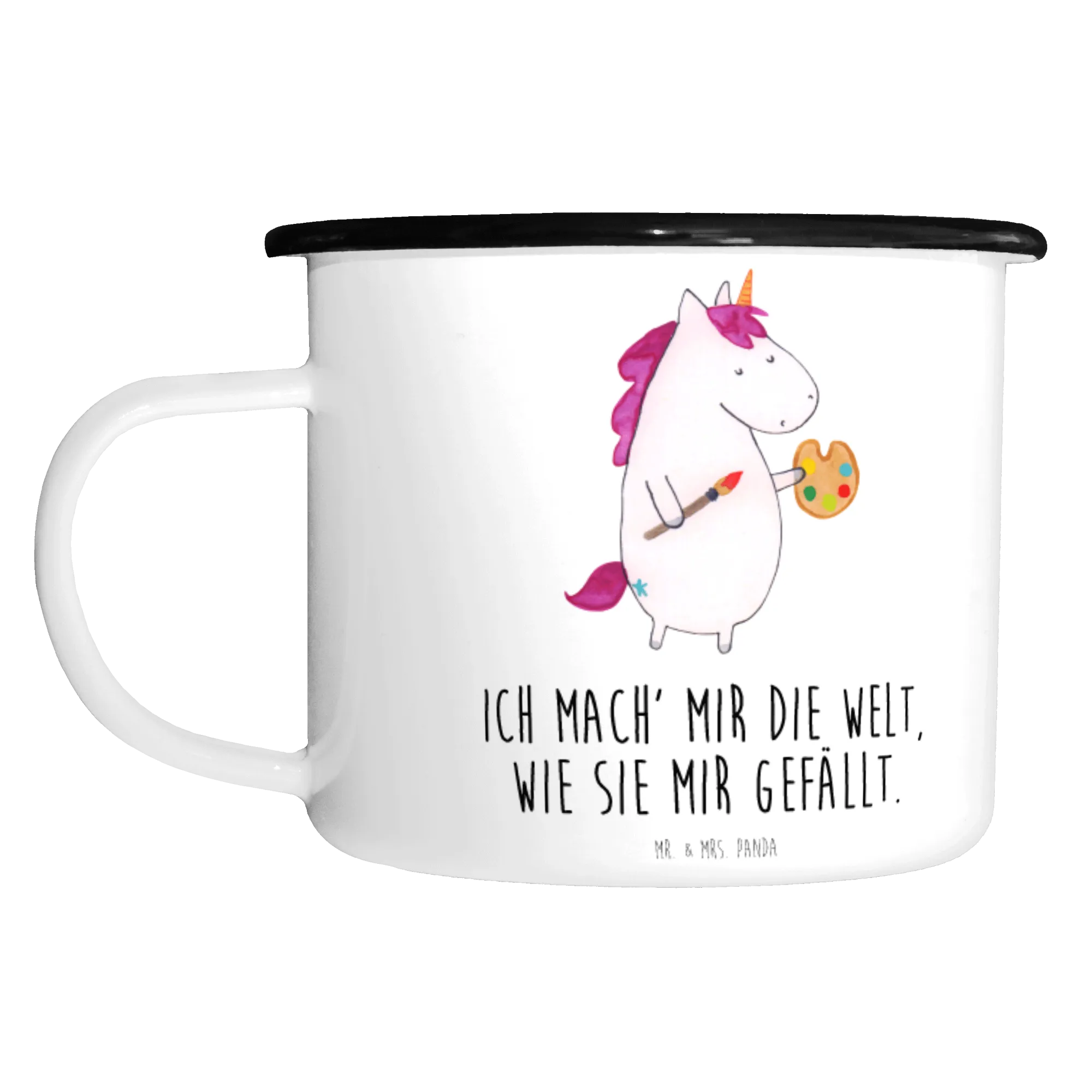 XL emaliowany kubek Jednorożec Artysta - z napisem