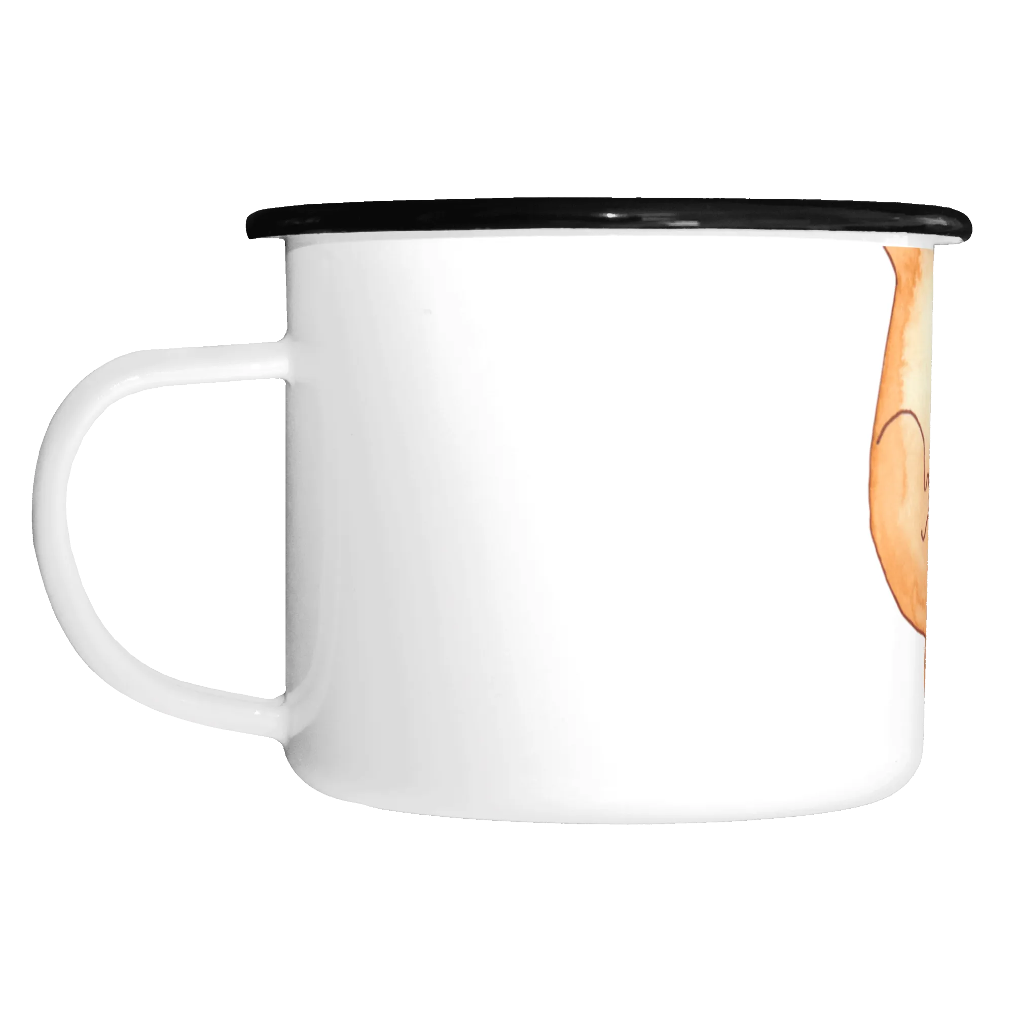 XL emaliowany kubek kotka Przytulić - z napisem - biały