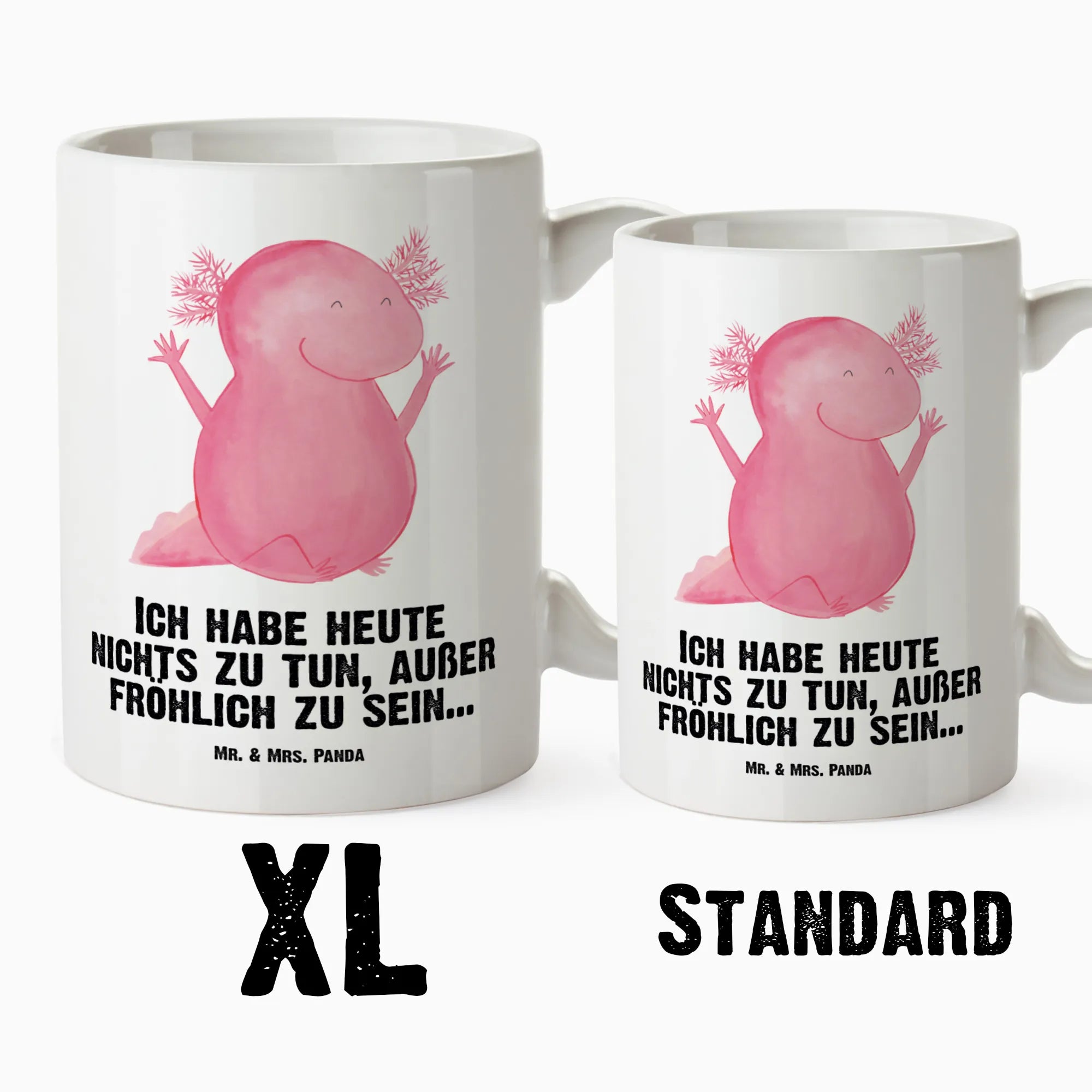 Die XL Tasse Axolotl Hurra von Mr. & Mrs. Panda ist das perfekte Geschenk für alle Tierliebhaber und Axolotl-Fans! Mit ihrem fröhlichen Design und dem spritzigen Spruch "Ich habe heute nichts zu tun, außer fröhlich zu sein..." zaubert sie jedem ein Lächeln ins Gesicht. Diese große Kaffeetasse hat mit einem Füllvolumen von 500 ml genügend Platz für Deinen morgendlichen Kaffee oder Tee und wird so zum perfekten Begleiter durch den Alltag.