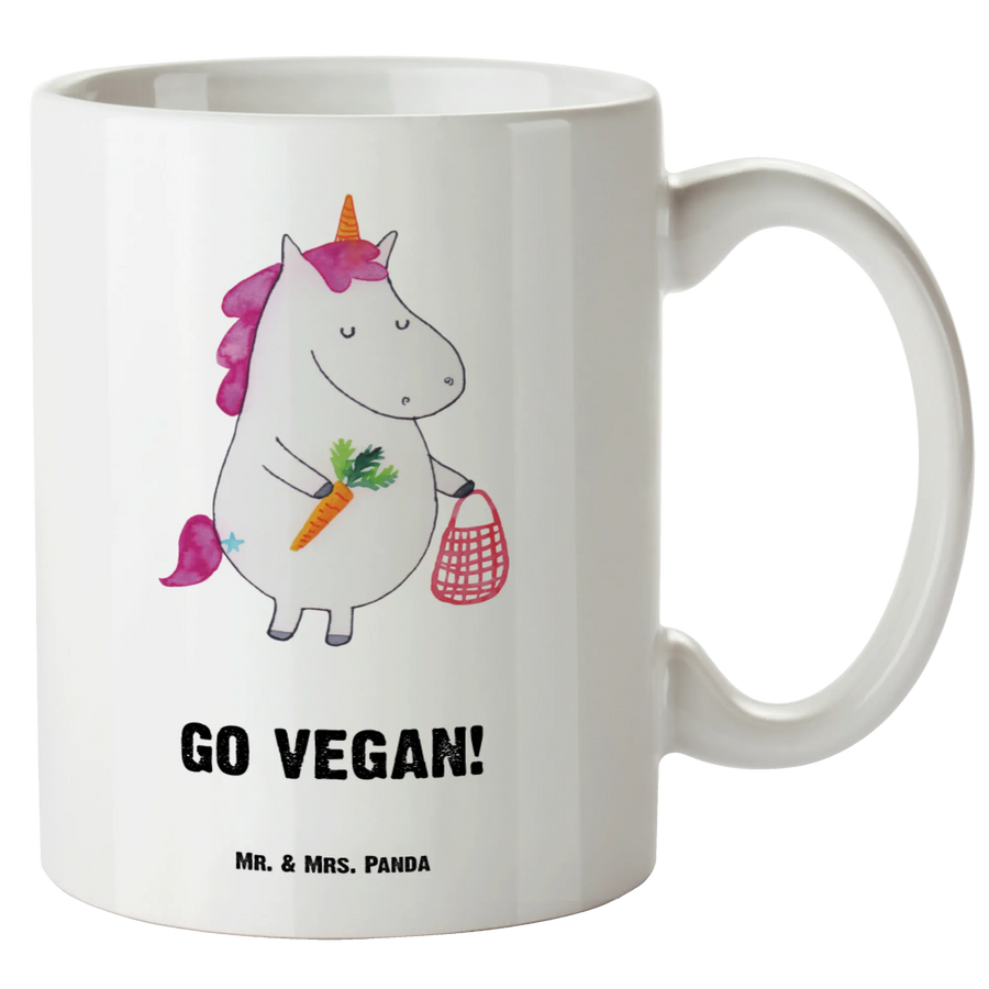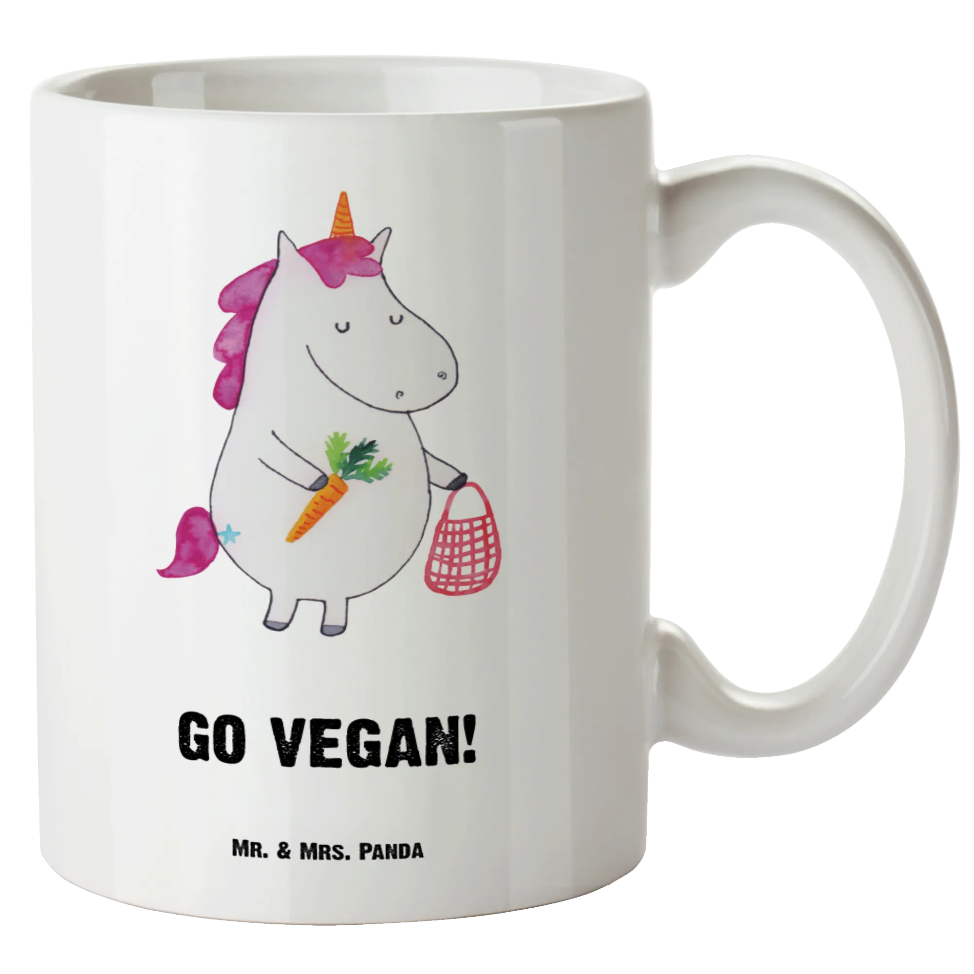 Mit dem zauberhaften Motiv eines niedlichen Einhorns, das fröhlich seine Einkaufstasche mit veganen Lebensmitteln füllt, ist diese Tasse nicht nur ein praktisches Produkt, sondern auch ein ganz persönliches Statement: "GO VEGAN!". Die liebevoll handgezeichneten Designs von Mrs. Panda bringen Farbe in deinen Alltag und sind das perfekte Geschenk für Freunde und Familie, die gesund leben und den veganen Lebensstil lieben. Ob zum Geburtstag, zu Weihnachten oder einfach nur so – diese XL Becher sind immer eine tolle Wahl.