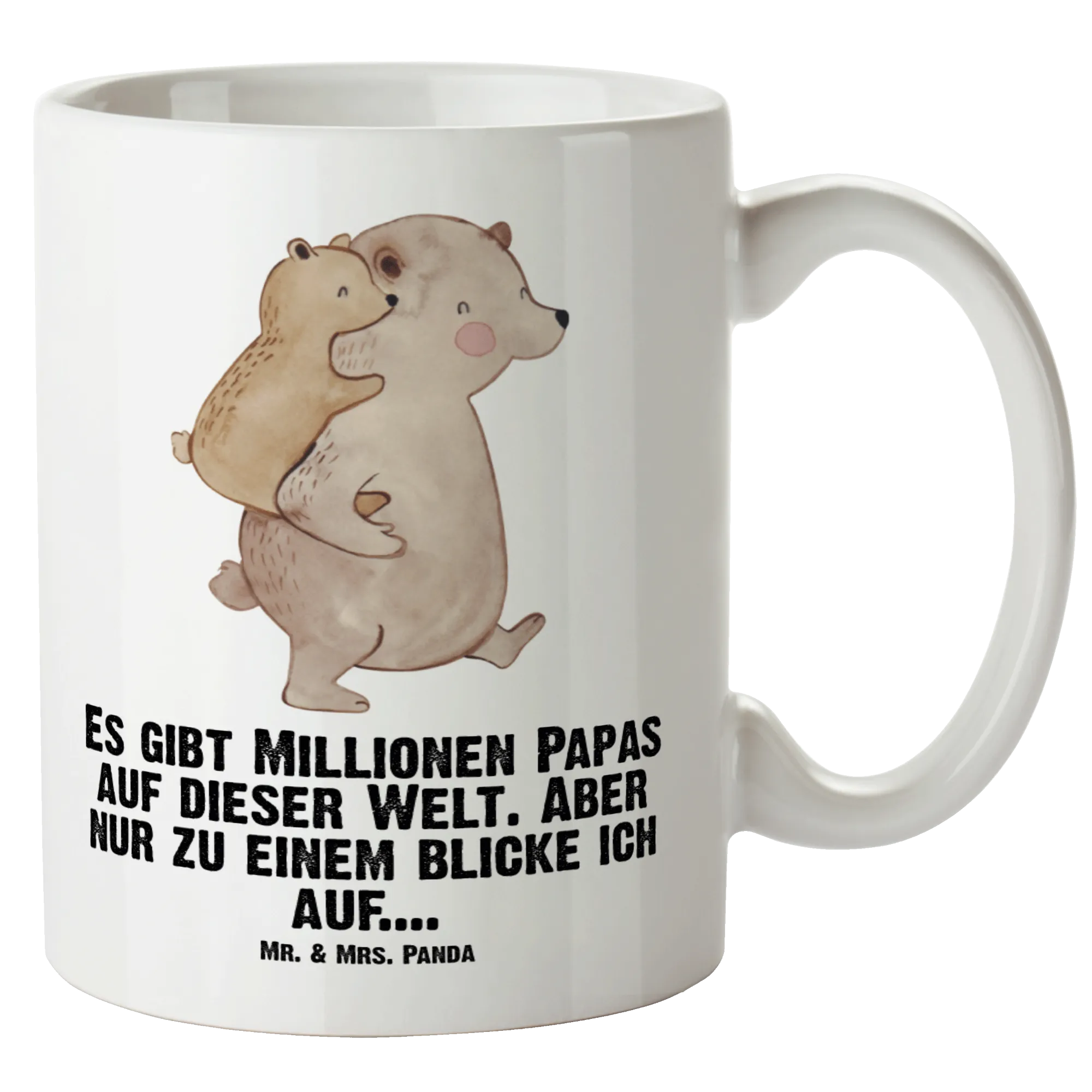 Das wunderschöne Design zeigt einen großen Bären, der liebevoll einen kleinen Bären auf seinem Rücken trägt – ein eindrucksvolles Motiv, das Wärme und Geborgenheit ausstrahlt. Die Botschaft „Es gibt Millionen Papas auf dieser Welt. Aber nur zu einem blicke ich auf…“ spricht aus, was viele für ihren Vater, Papa oder Onkel empfinden: eine unersetzliche Verbundenheit, die man mit einem solch sorgfältig ausgewählten Geschenk perfekt zum Ausdruck bringen kann.