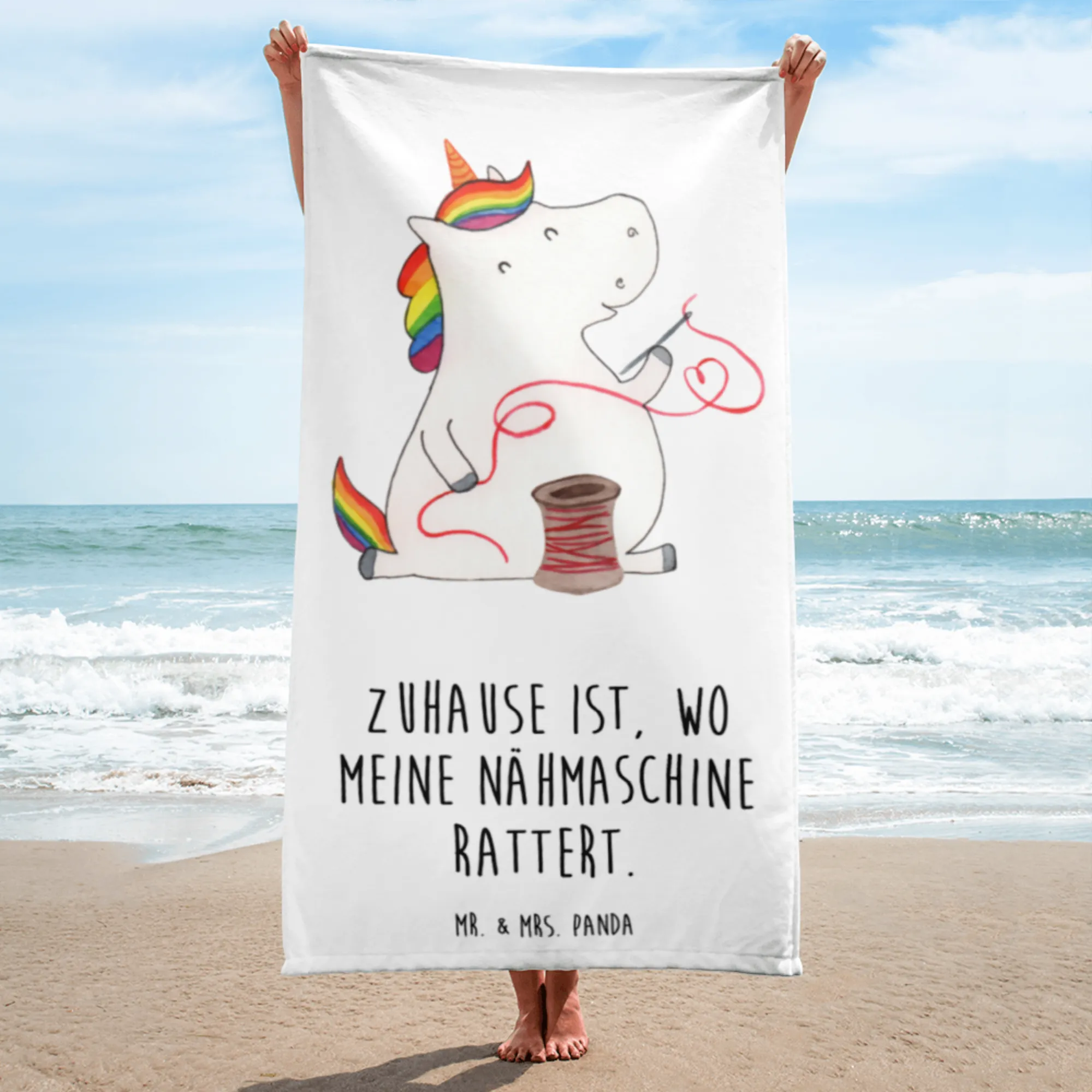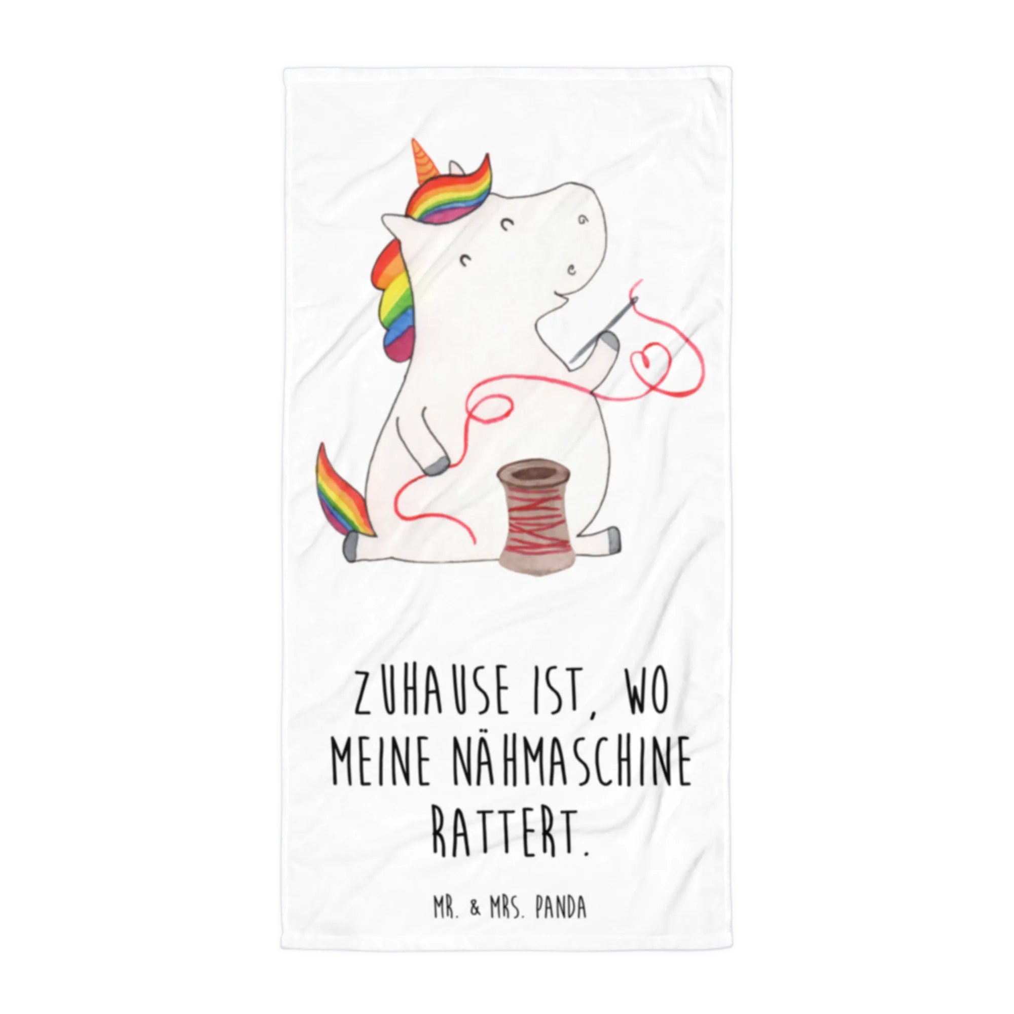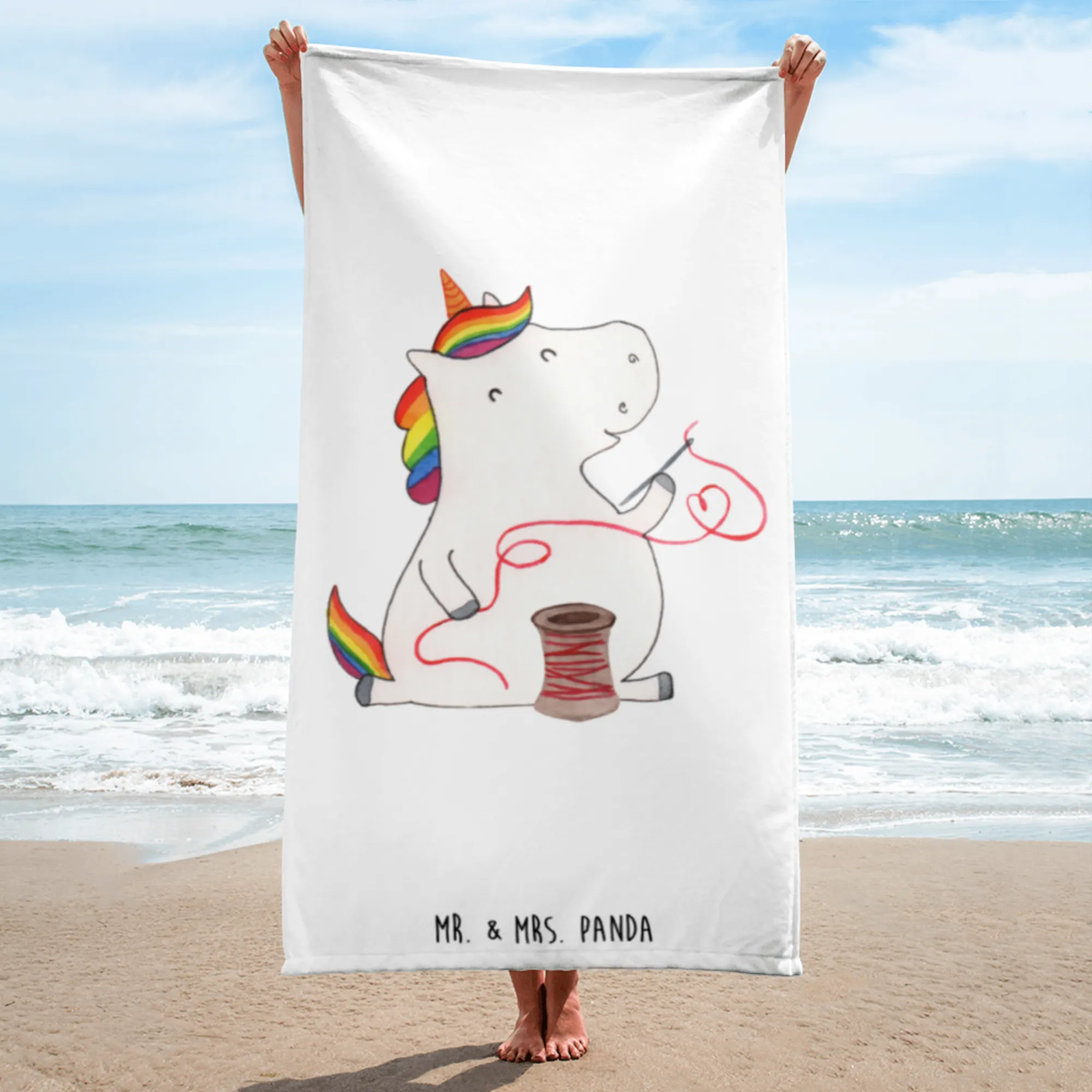 Das XL Badehandtuch Einhorn Näherin aus der wunderbaren Einhorn - Kollektion von Mr. & Mrs. Panda ist das perfekte Geschenk für alle kreativen Seelen und Einhorn-Liebhaber! Mit seinen großzügigen Maßen von 1520 mm x 760 mm bietet es genug Platz zum Entspannen, ob am Strand, im Schwimmbad oder in der Sauna. Das zauberhafte Motiv eines Einhorns, das fröhlich näht, bringt nicht nur Freude, sondern auch eine Portion Kreativität in den Alltag.