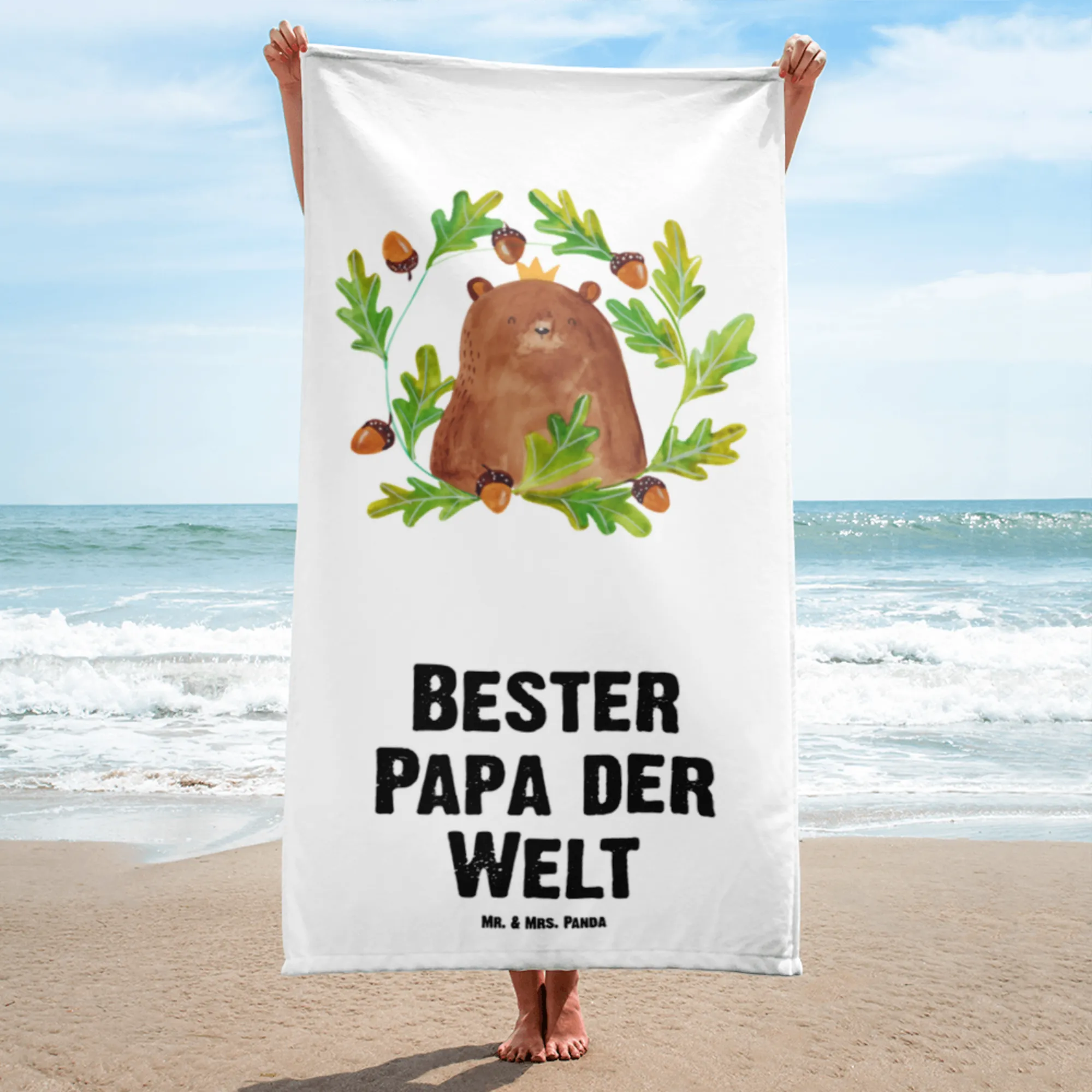 XL ręcznik kąpielowy Niedźwiedź król - z napisem - Biały
