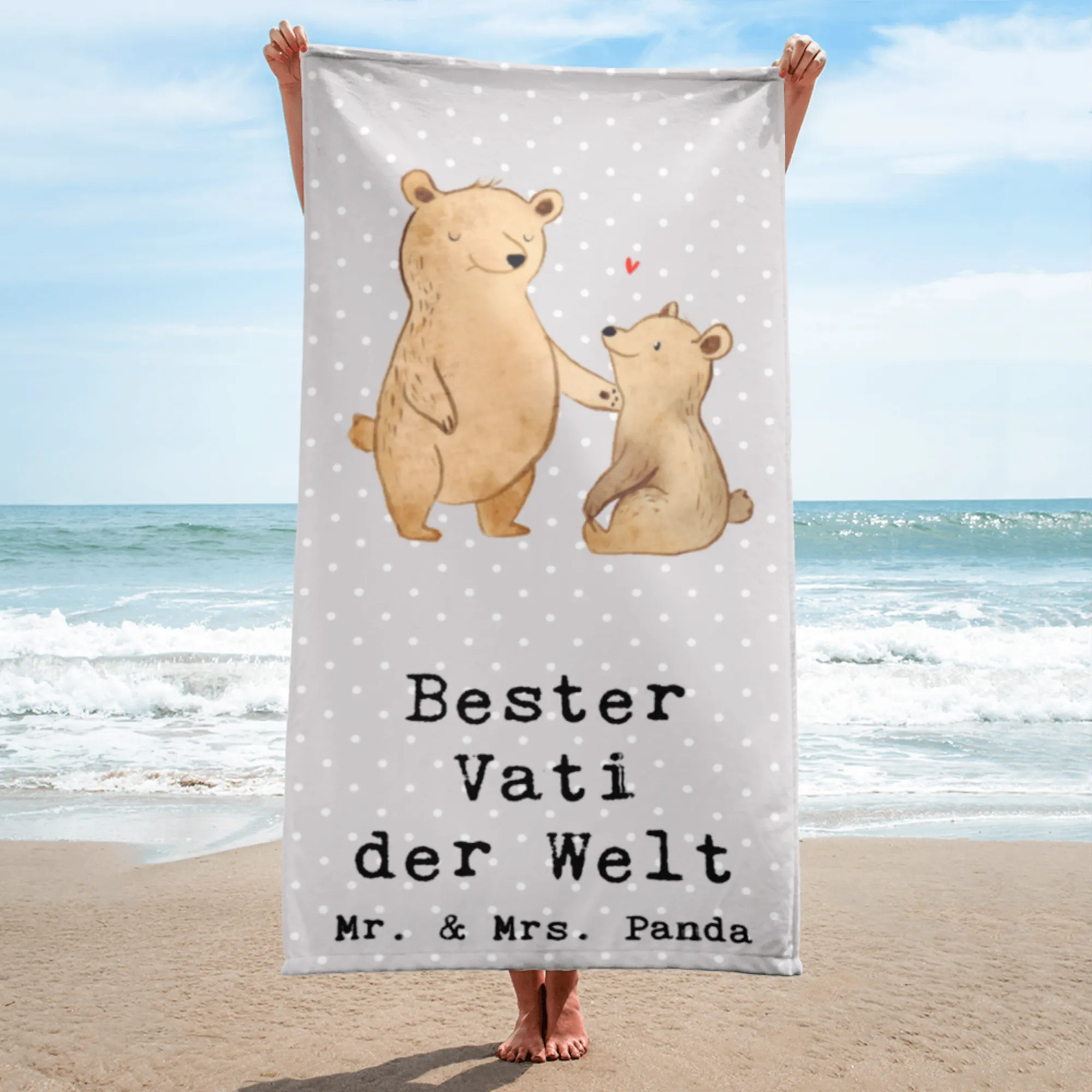 XL ręcznik kąpielowy Niedźwiedź Najlepszy tata na świecie - biały
