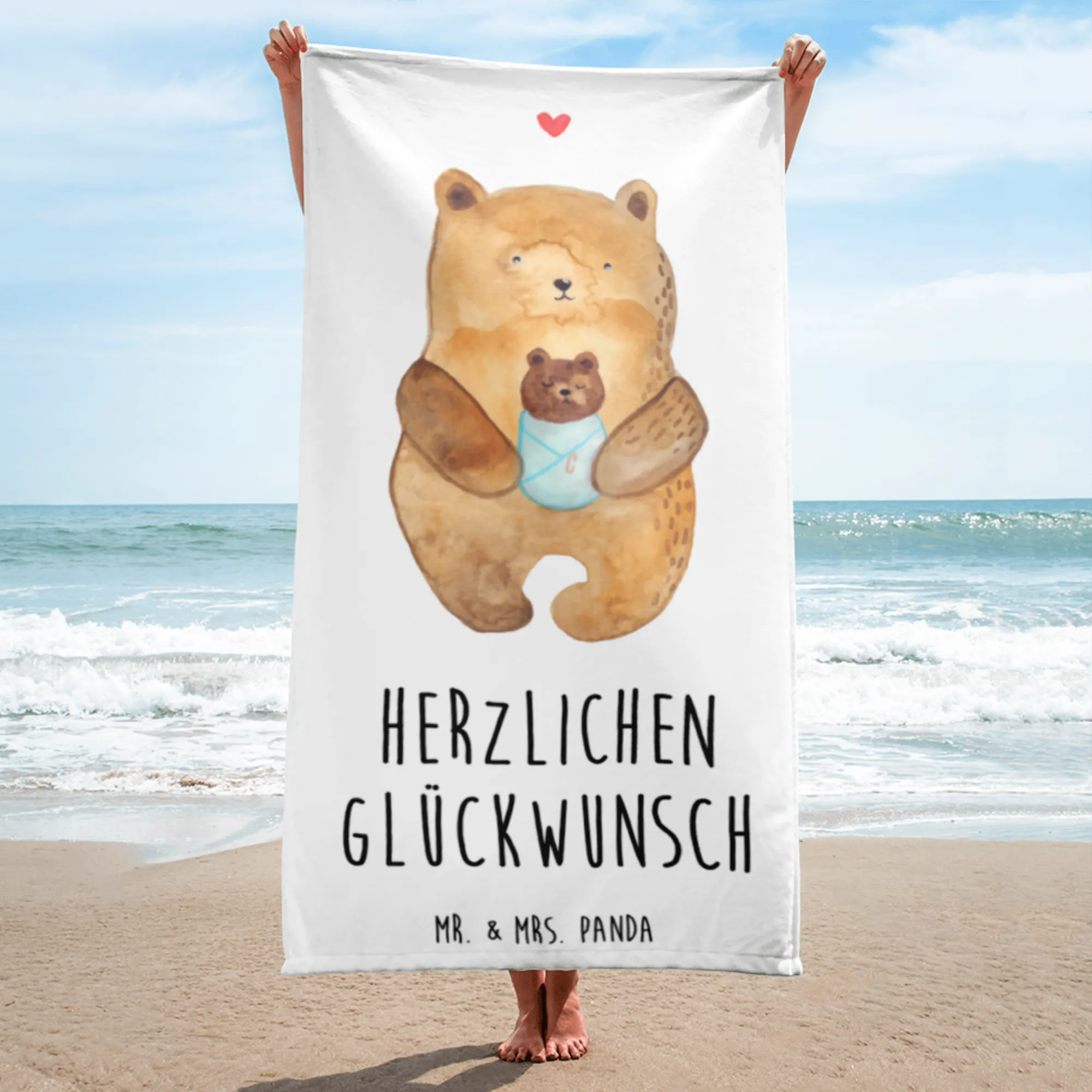 XL ręcznik kąpielowy Niedźwiedź Niemowlę - z napisem - biały