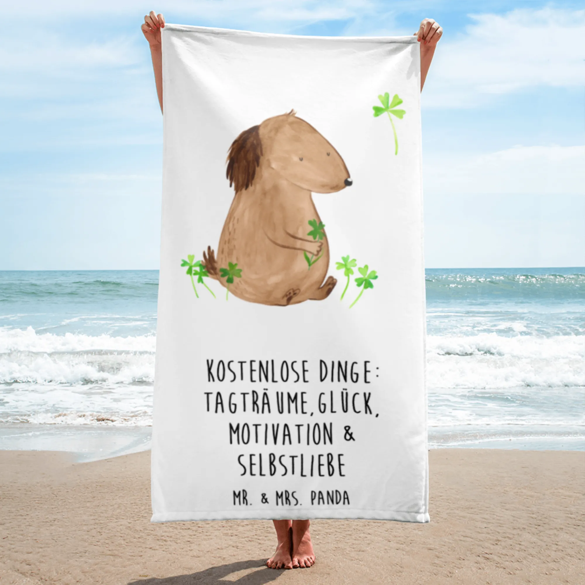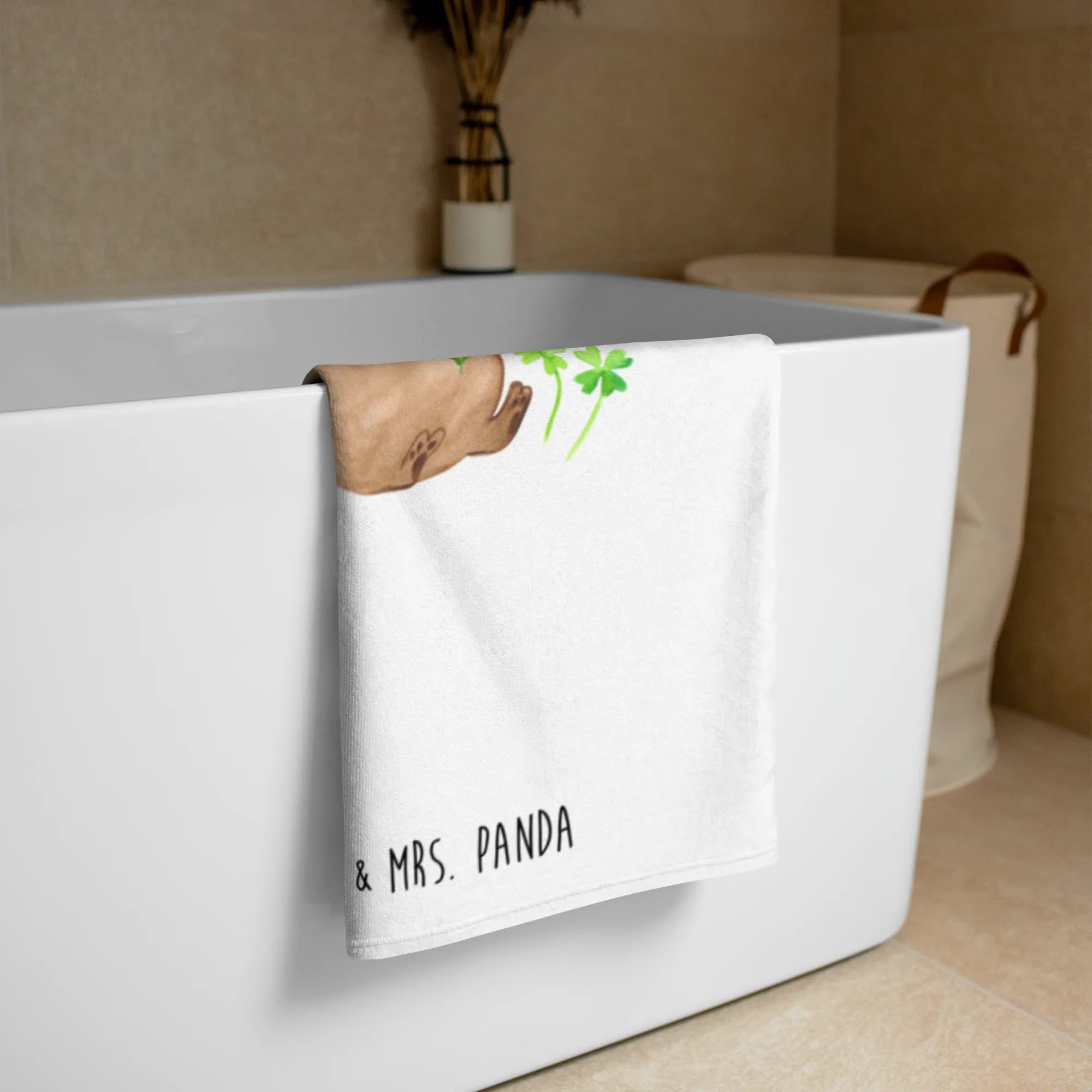 XL ręcznik kąpielowy pies koniczyna - z napisem - biały