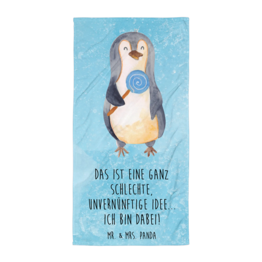 XL ręcznik kąpielowy pingwin lizak - z napisem - lodowoniebieski