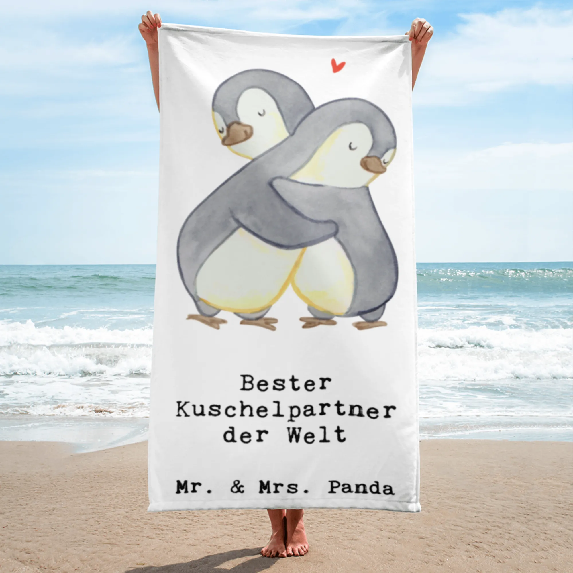 XL ręcznik kąpielowy pingwin Najlepszy partner do przytulania na świec – Mr. & Mrs. Panda