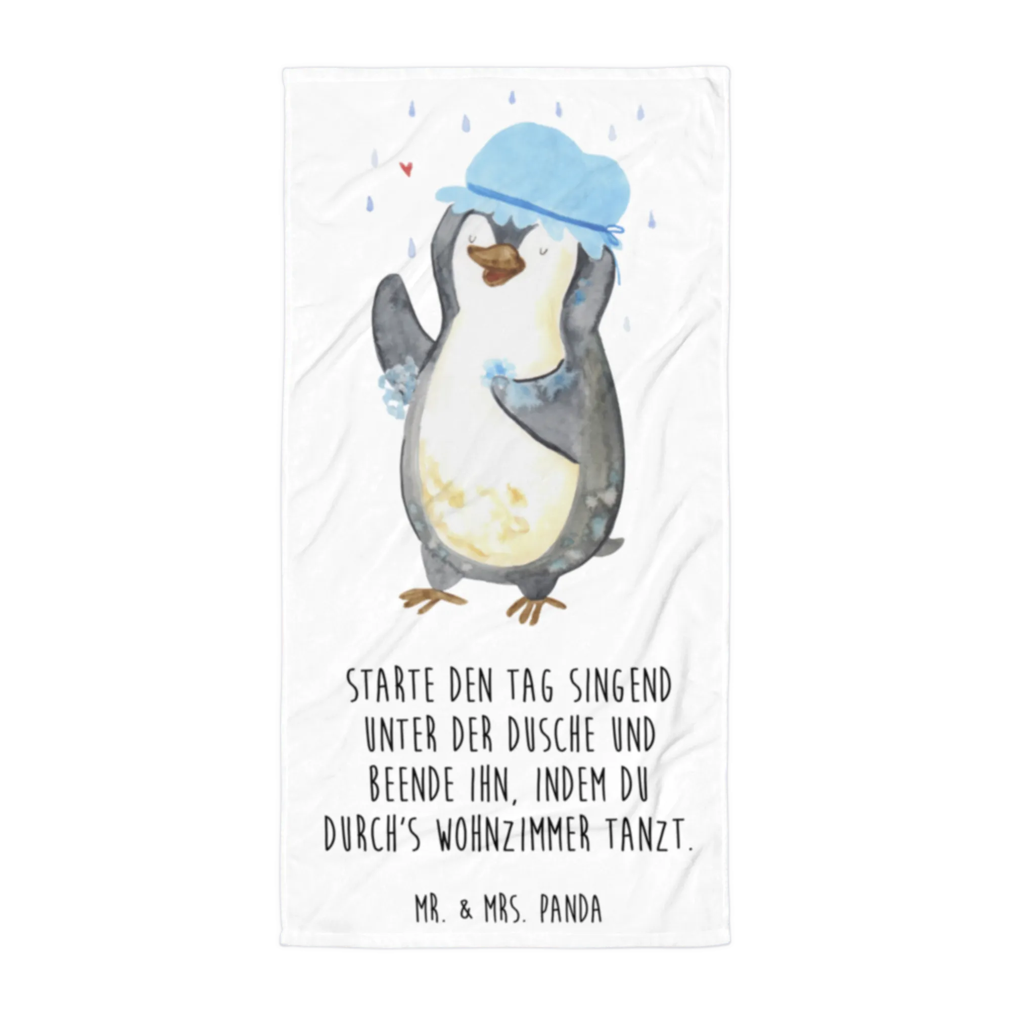 XL ręcznik kąpielowy Pingwin Prysznic - z napisem - biały
