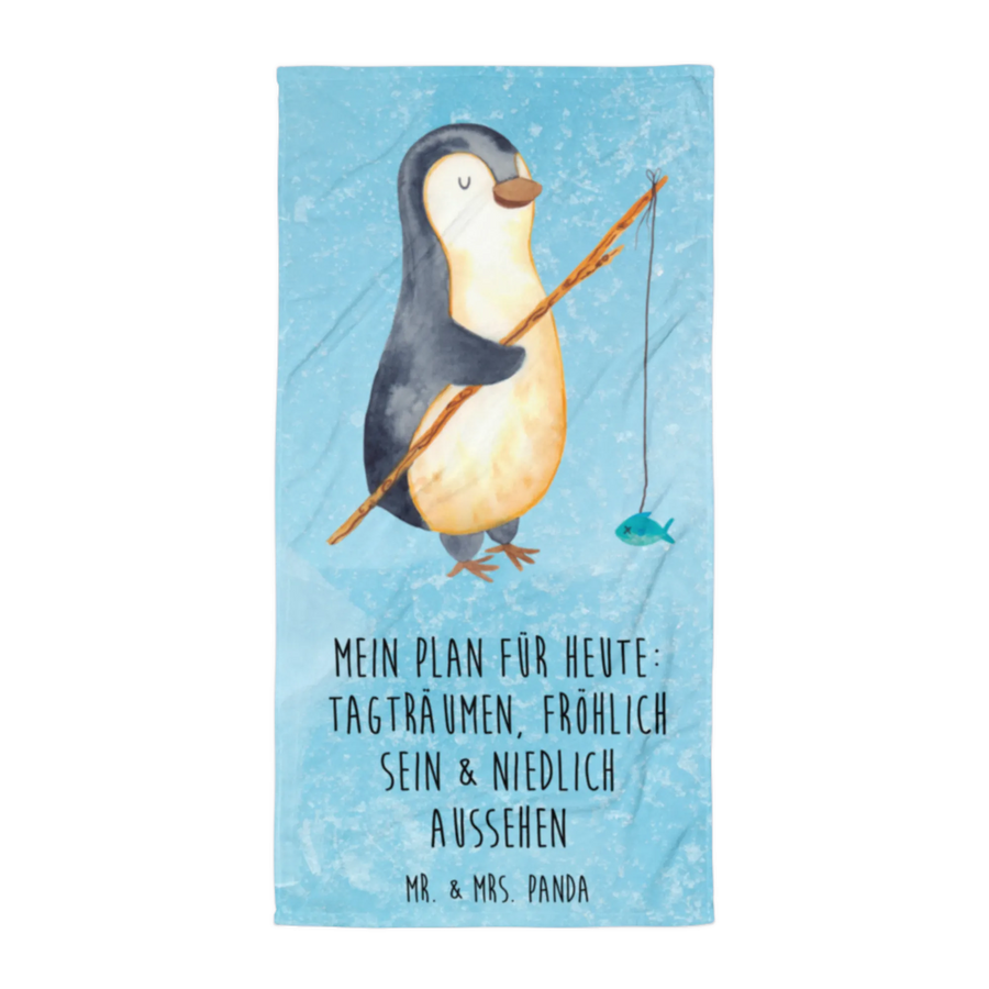 XL ręcznik kąpielowy Pingwin Wędkarz - z napisem - lodowoniebieski