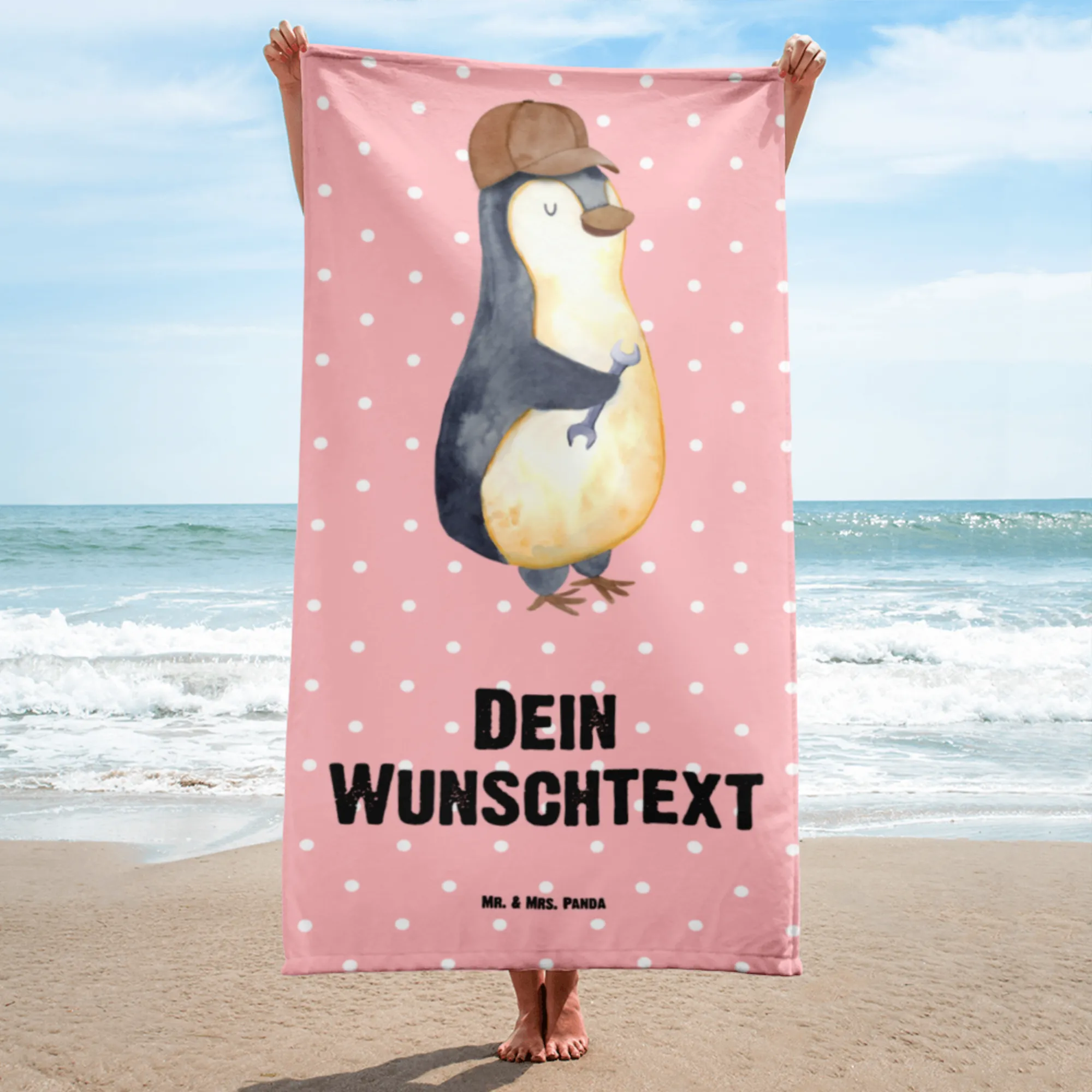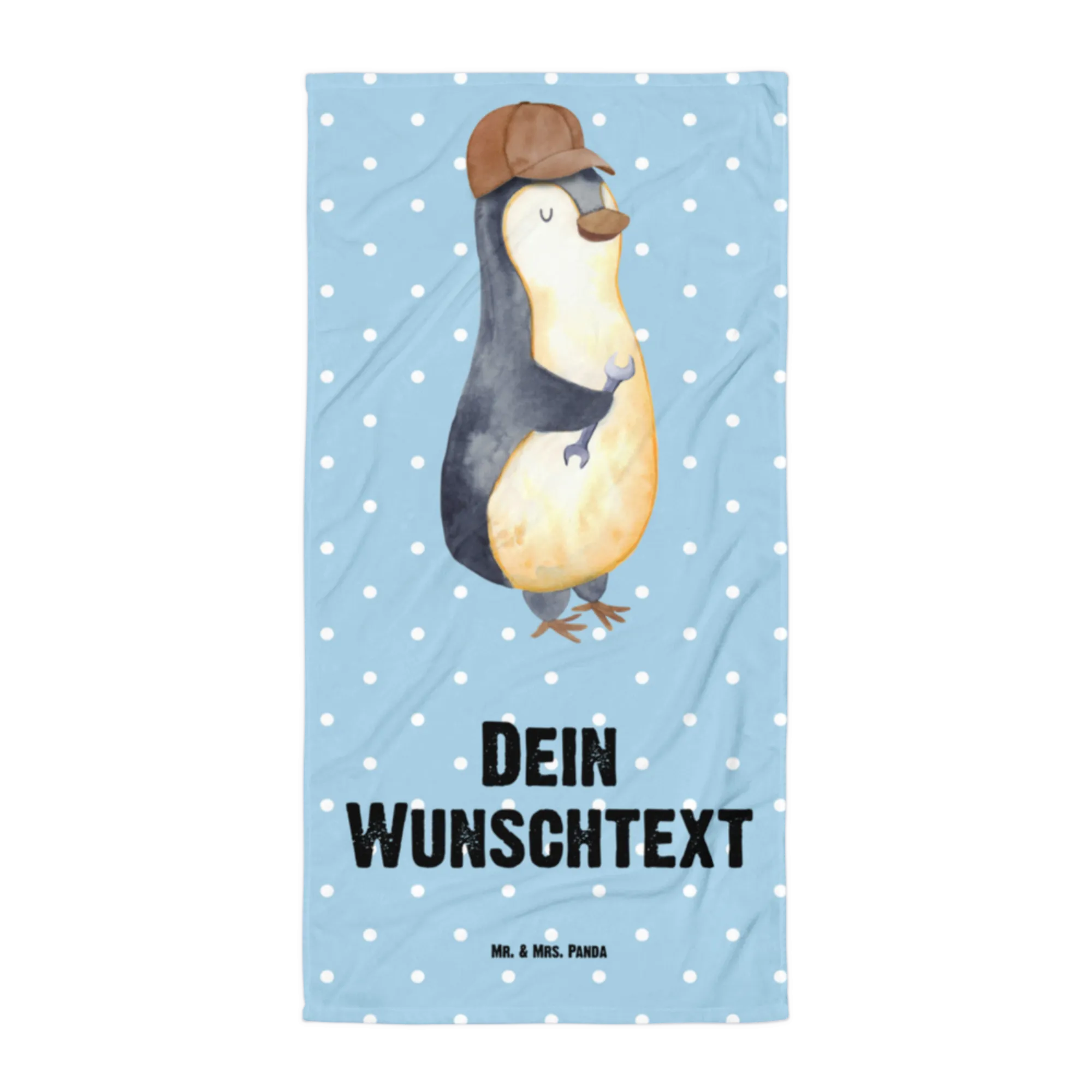 Größe: 1520 mm x 760 mm, hergestellt aus kuscheligem Baumwollfrottee, ultra saugfähig und extra weich. Der süße Pinguin mit dem Schraubenschlüssel hebt die humorvolle Botschaft hervor, die jede Verwendung des Handtuchs zu einem Schmunzeln anregen wird.