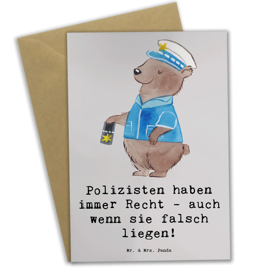 Die Grußkarte "Polizist" aus der zauberhaften Berufe-Kollektion von Mr. & Mrs. Panda ist das perfekte Geschenk für alle, die einen besonderen Job haben! Ob zum Geburtstag, zum Dienstjubiläum oder einfach nur als nette Geste, um Dankbarkeit auszudrücken - diese Karte bringt Freude und ein Lächeln auf das Gesicht jeder Polizistin und jedes Polizisten. Mit dem liebevollen Spruch "Polizisten haben immer Recht - auch wenn sie falsch liegen!" eignet sich die Karte sowohl für Kollegen als auch für Freunde und Familie. Sie ist ein wahrer Hingucker und spricht die Herzen der Menschen an.