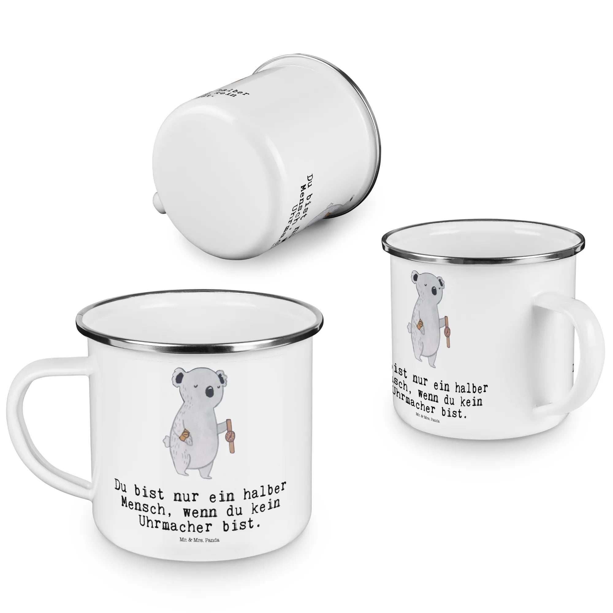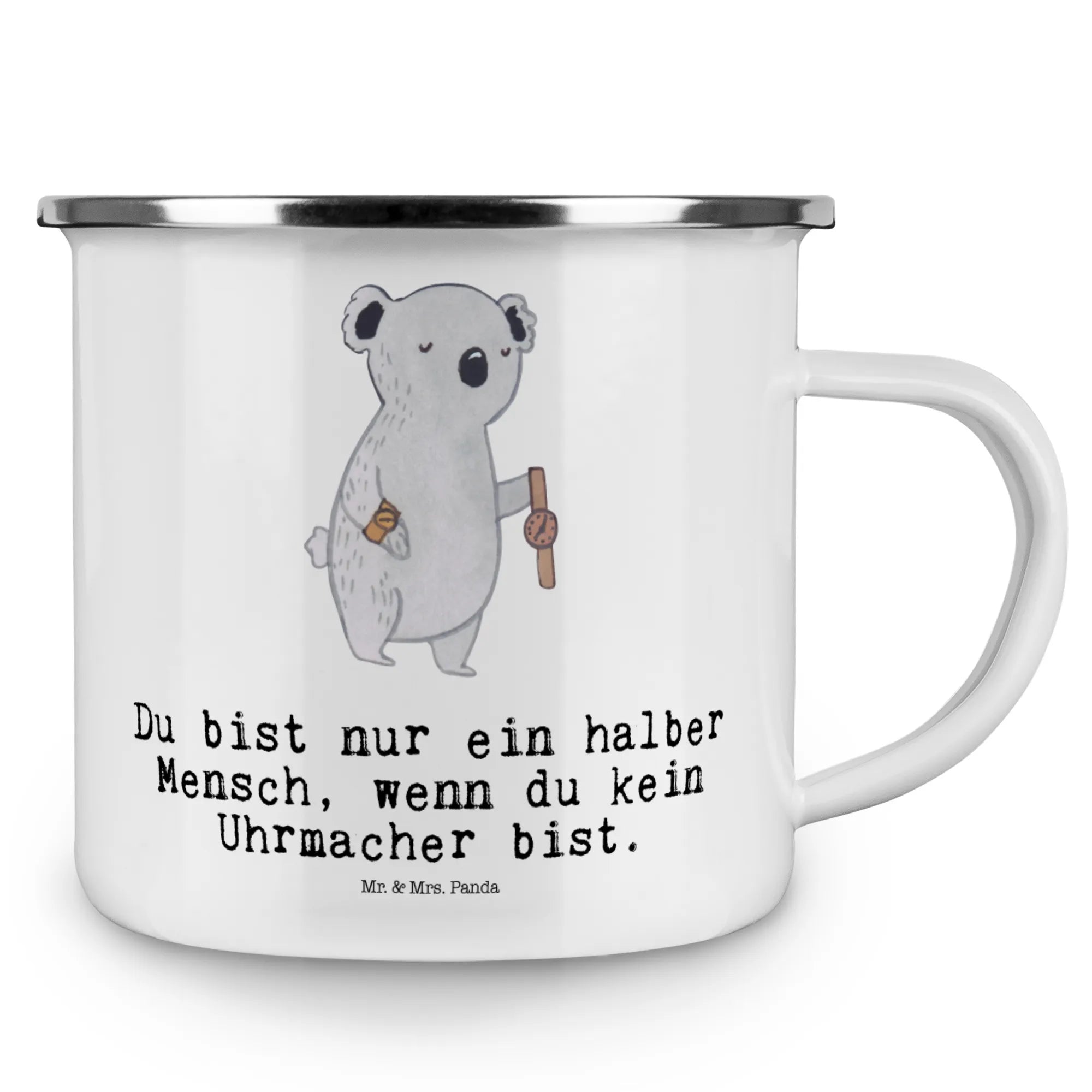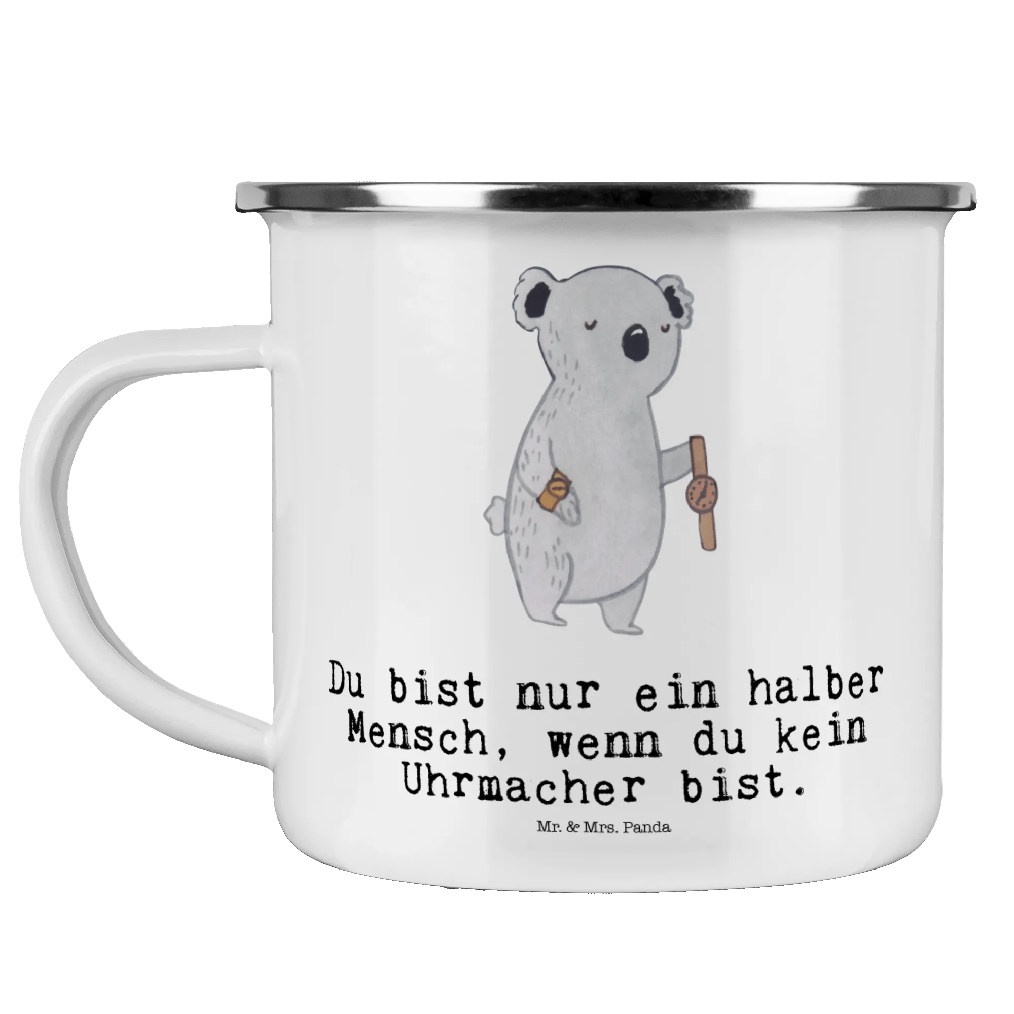 Kempingowy kubek emaliowany Zegarmistrz serce – Mr. & Mrs. Panda