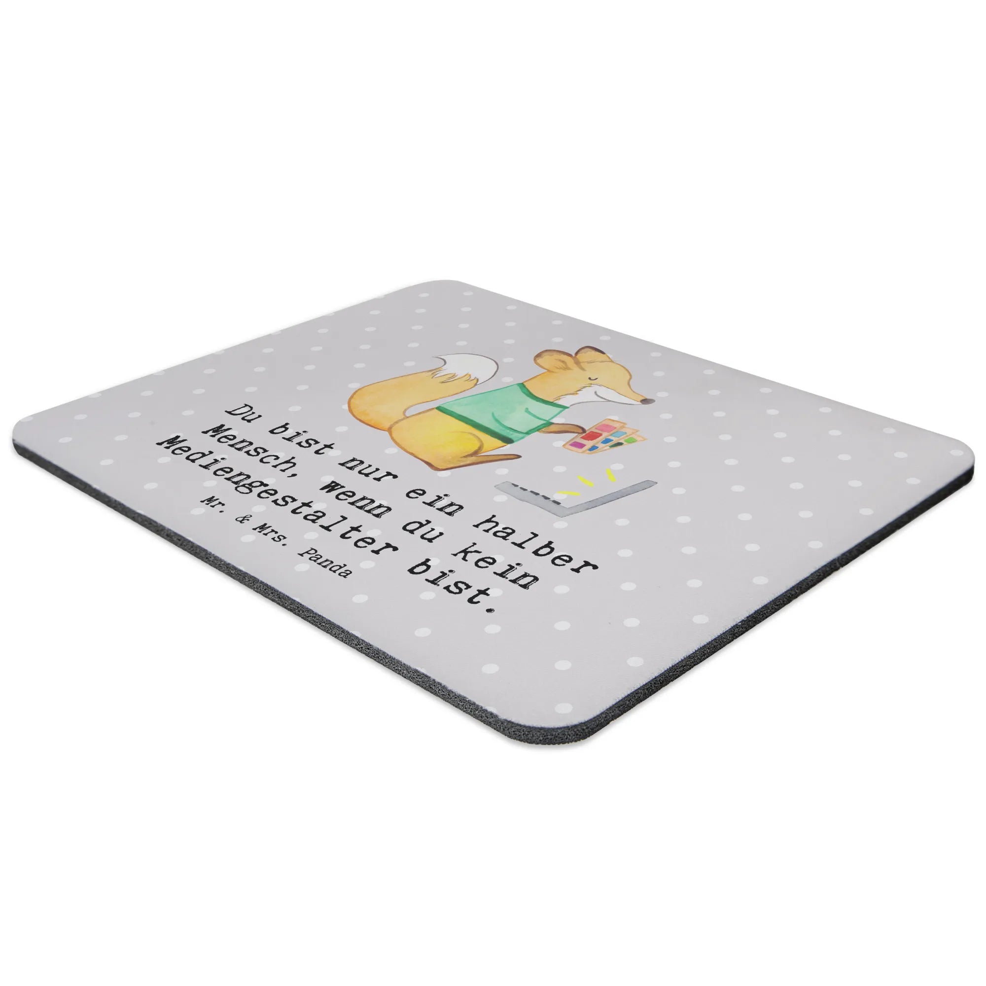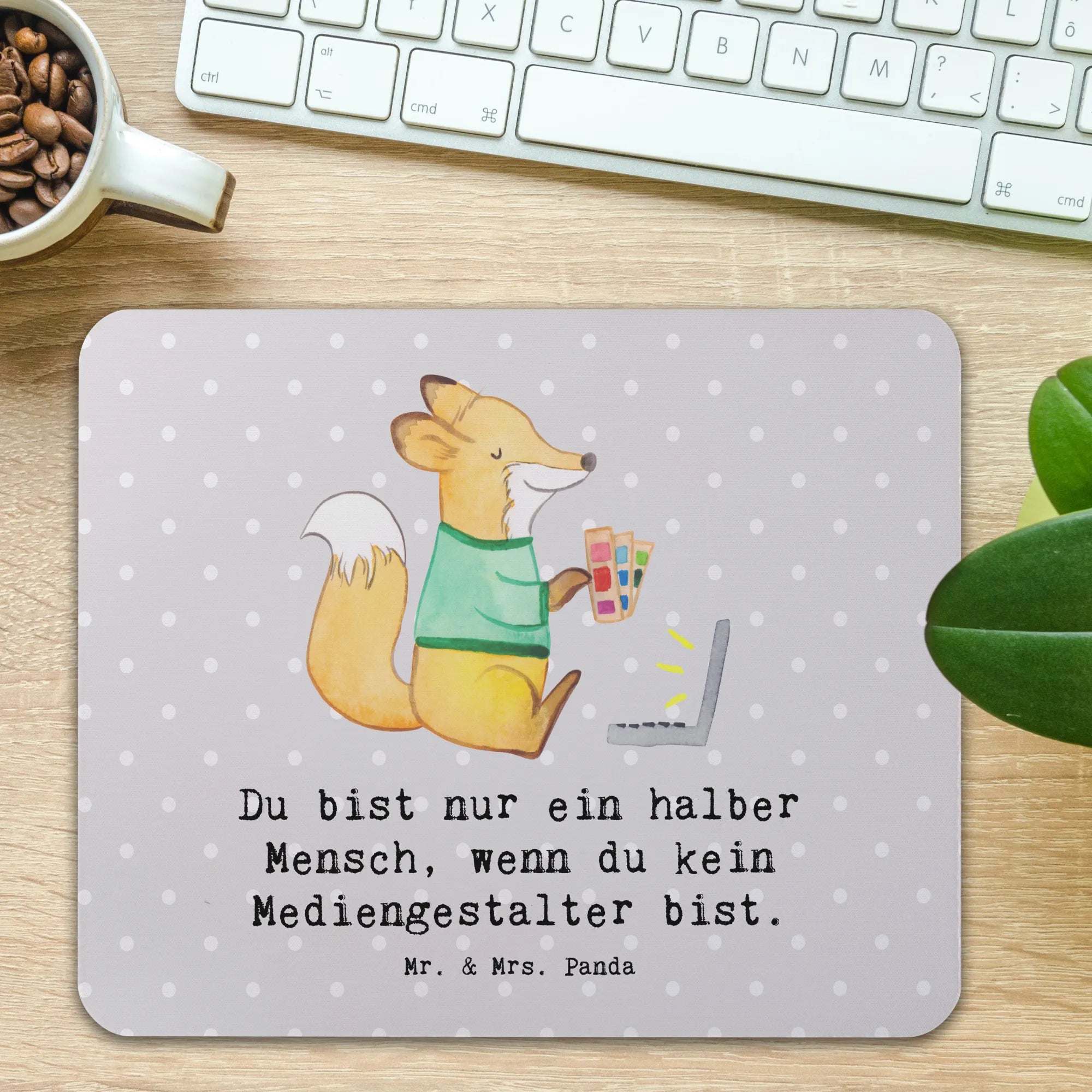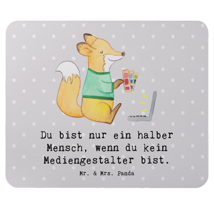 Das Mauspad 'Mediengestalter mit Herz' von Mr. & Mrs. Panda ist nicht nur ein hübsches Accessoire für deinen Arbeitsplatz, sondern auch eine kreative Hommage an alle Mediengestalter und Grafikdesigner! Mit seinem charmanten Motiv eines süßen Fuchses, der vor einem Laptop sitzt und einen Farbfächer in der Hand hält, bringt es Freude in jedes Arbeitszimmer.