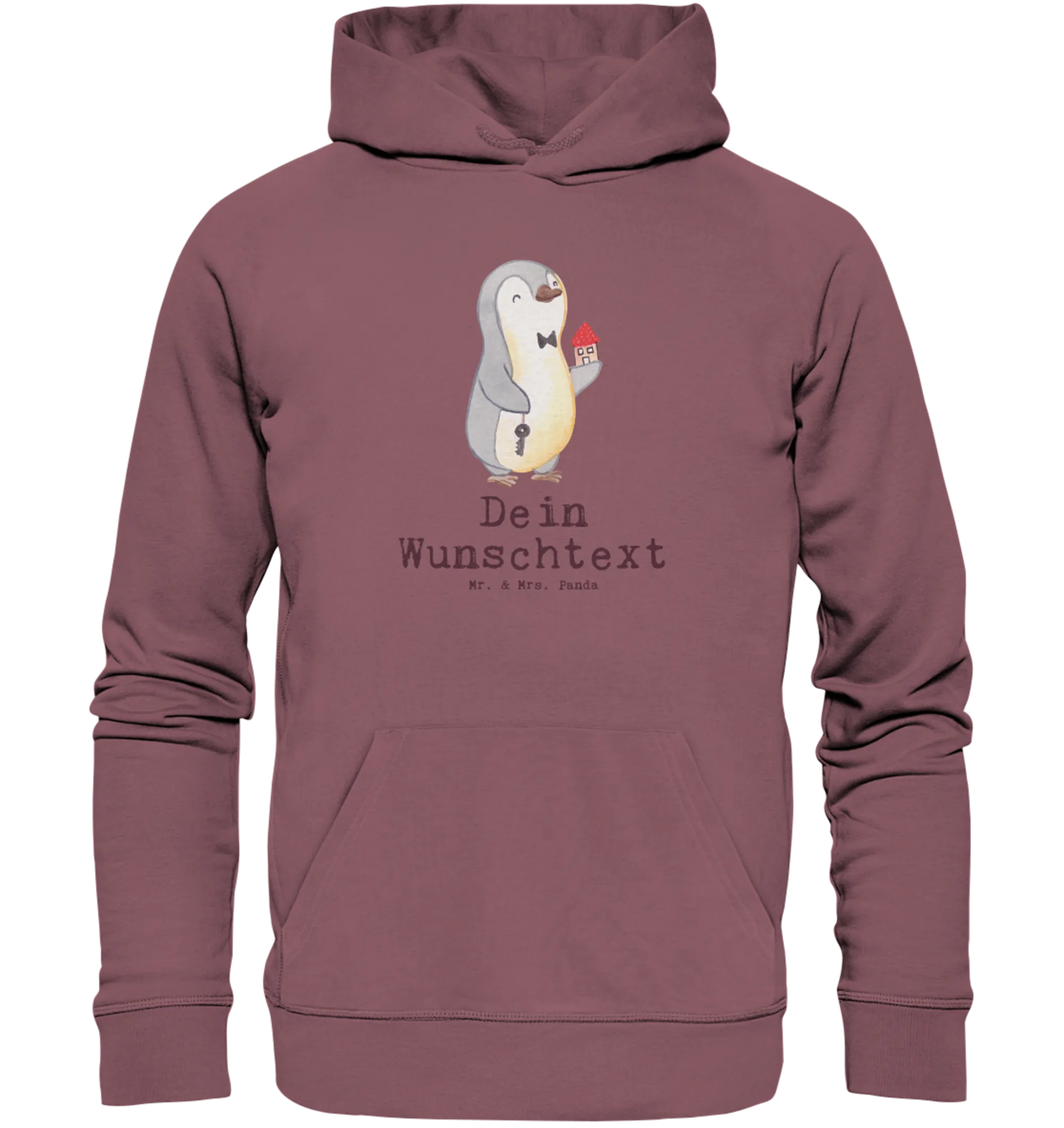 Mit seinem coolen Motiv eines Pinguins, der ein Haus in der einen und einen Schlüssel in der anderen Hand hält, bringt er nicht nur Freude, sondern zeigt auch die Leidenschaft für den Beruf. Der Hoodie ist voll personalisierbar und kann mit einem Wunschtext oder Namen versehen werden, um ihn noch individueller zu gestalten.