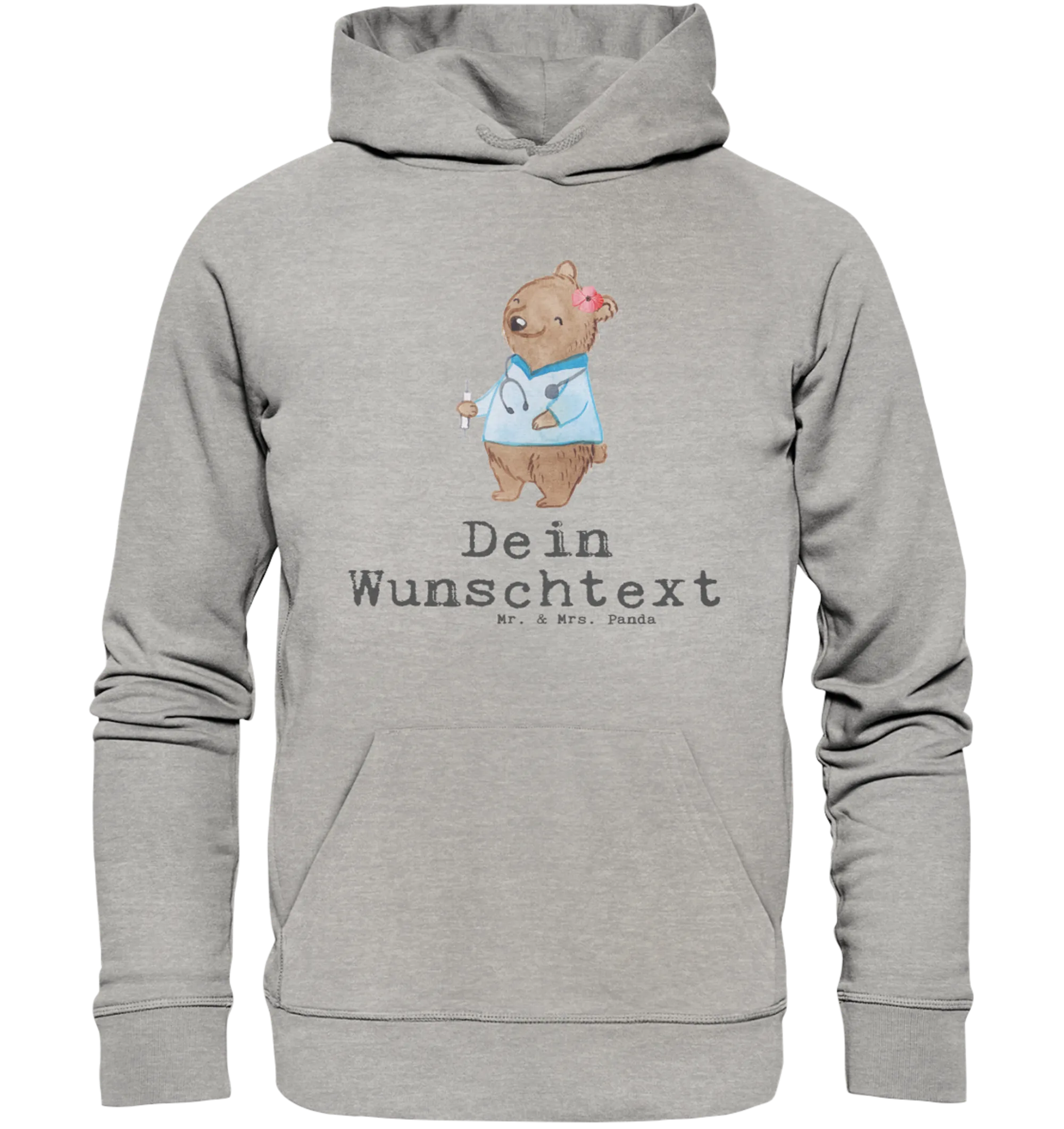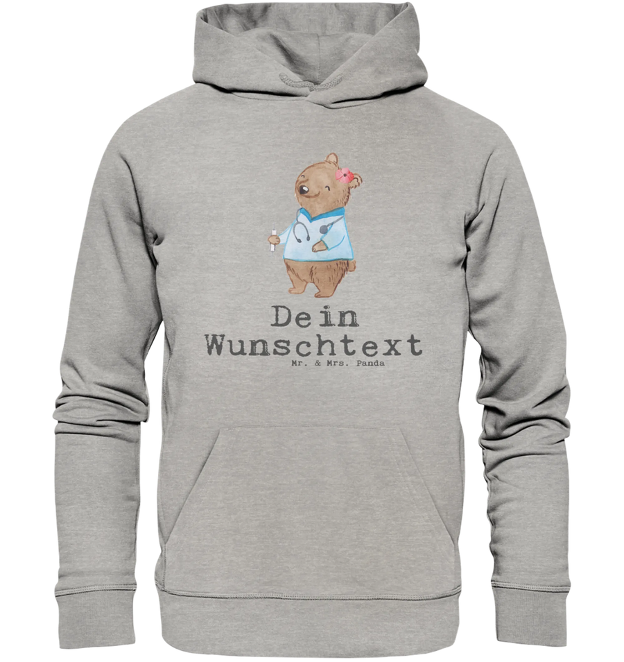 Dieser Hoodie ist nicht nur weich und flauschig, sondern auch personalisierbar mit deinem Wunschtext oder Namen, was ihn zu einem ganz besonderen Geschenk macht. Mit dem liebevollen Motiv einer süßen Bärendame, die sich um Patienten kümmert, trifft dieser Hoodie garantiert ins Schwarze. Egal, ob zum Jubiläum, als Dankeschön für die tolle Arbeit oder als Abschiedsgeschenk – dieser Hoodie wird jedem ein Lächeln ins Gesicht zaubern.