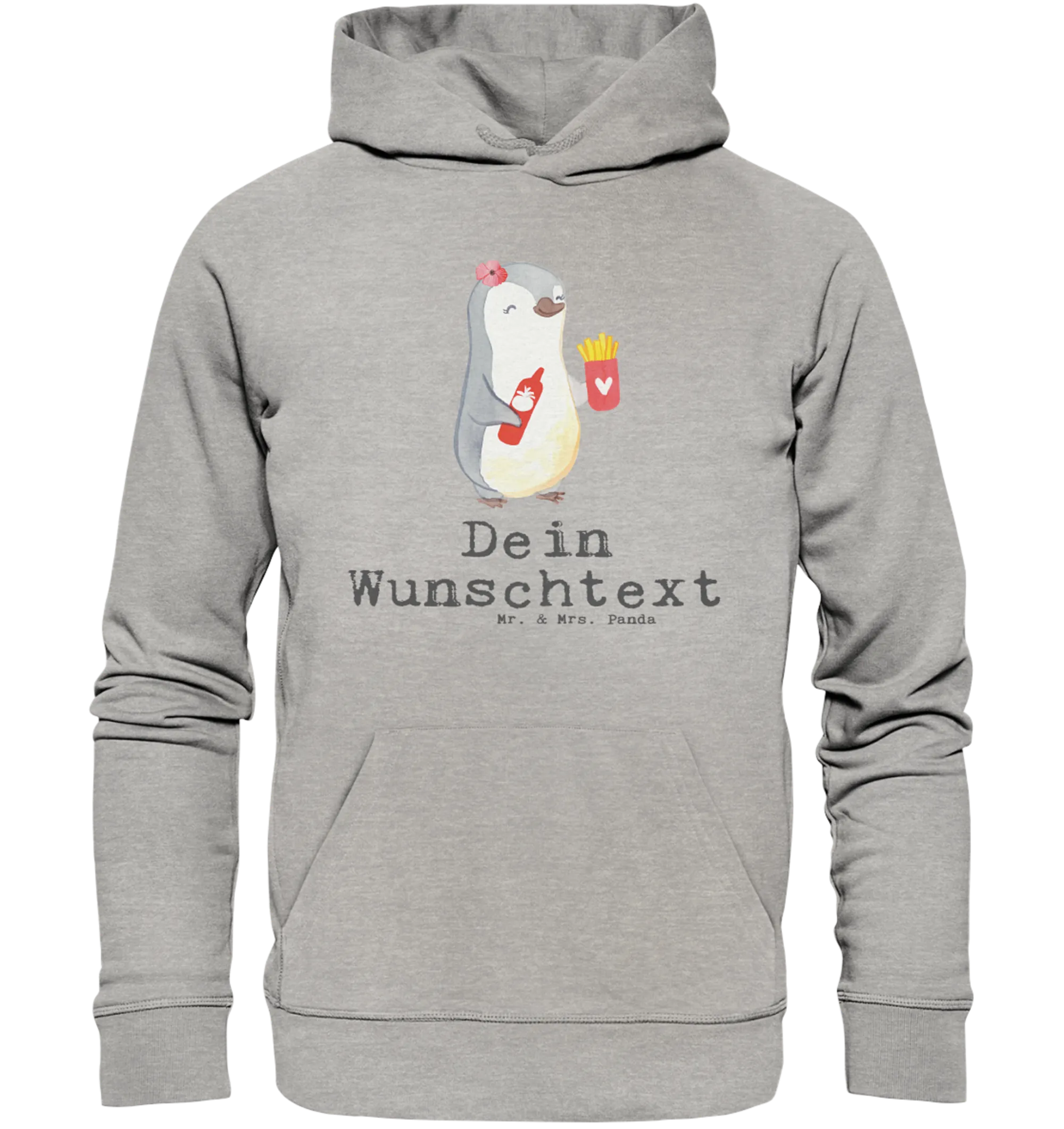 Der personalisierte Hoodie "Imbissverkäuferin mit Herz" von Mr. & Mrs. Panda ist das perfekte Geschenk für all die lieben Imbissverkäuferinnen, die unsere Gaumenfreuden mit ihren köstlichen Pommes und dem herzlichen Lächeln versüßen. Hergestellt aus wundervoller Bio-Baumwolle ist dieser Hoodie nicht nur super weich und flauschig, sondern auch umweltfreundlich.