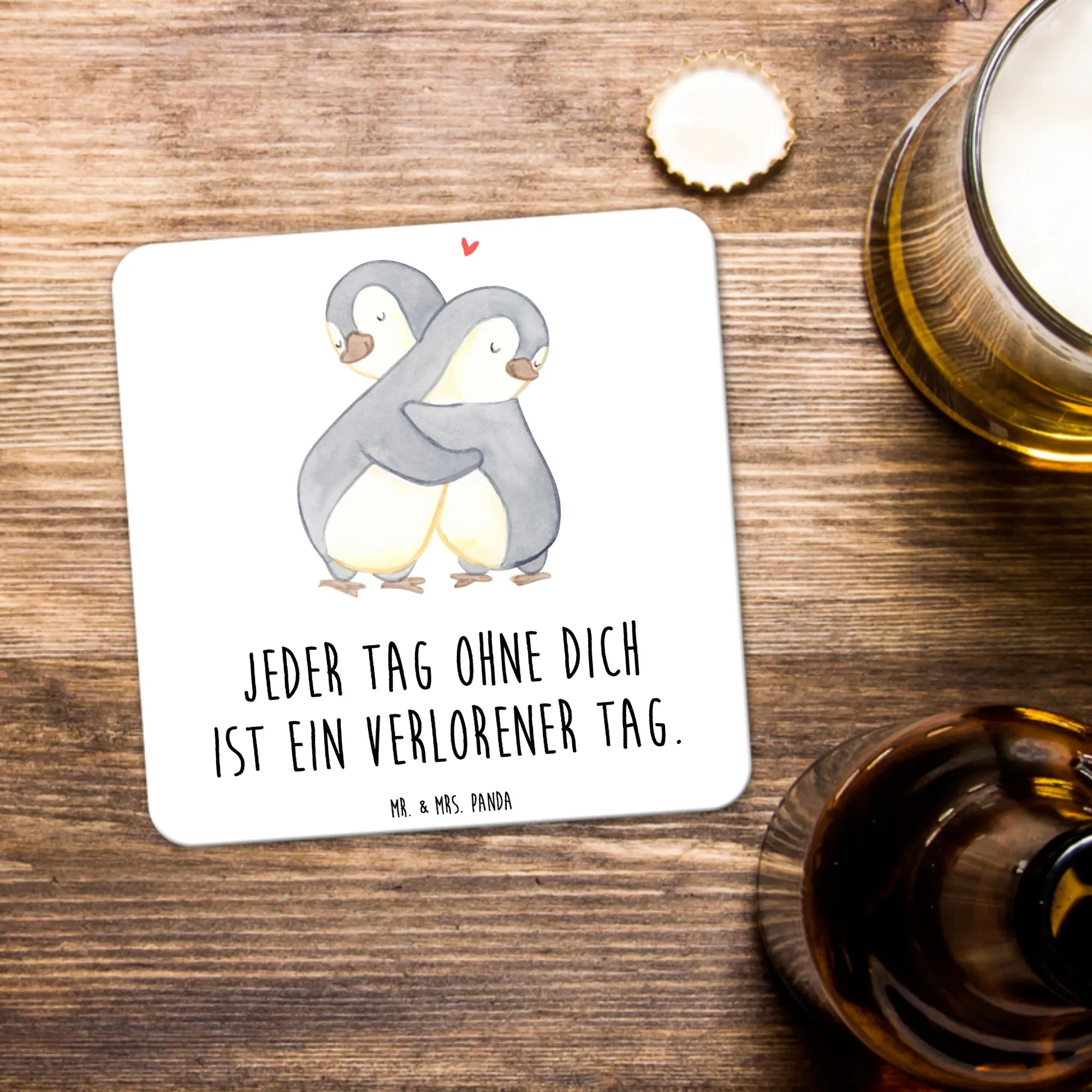 Zestaw podkładek Pingwiny Przytulanie - 6er Set - z napisem