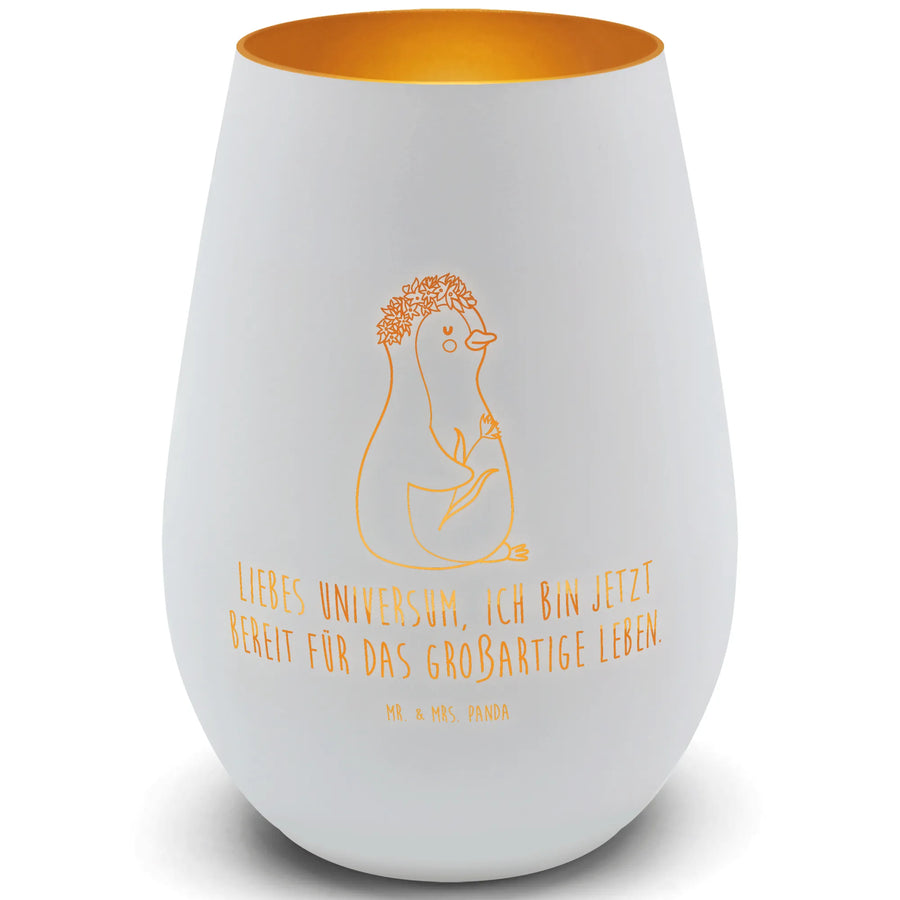Złota latarenka pingwin kwiaty - biały