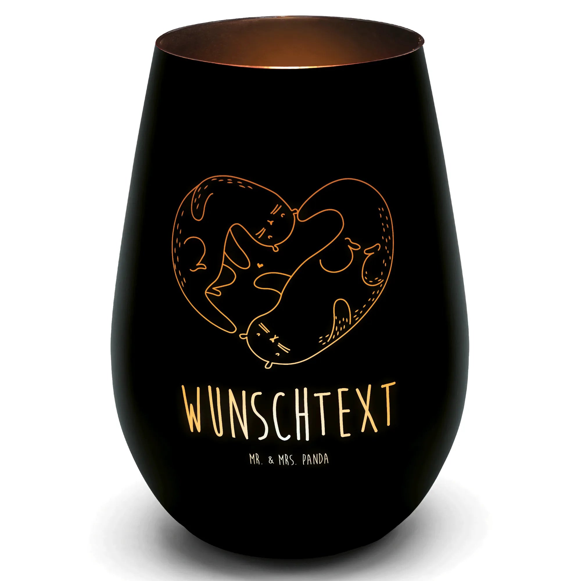 Gold Windlicht Personalisiert Otter Herz - Schwarz