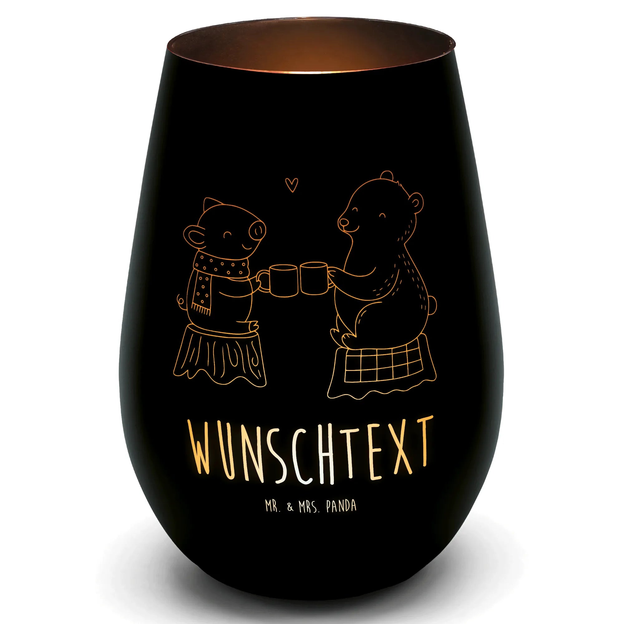 Złoty świecznik spersonalizowany Ciepły prosiaczek Impreza - Czarny